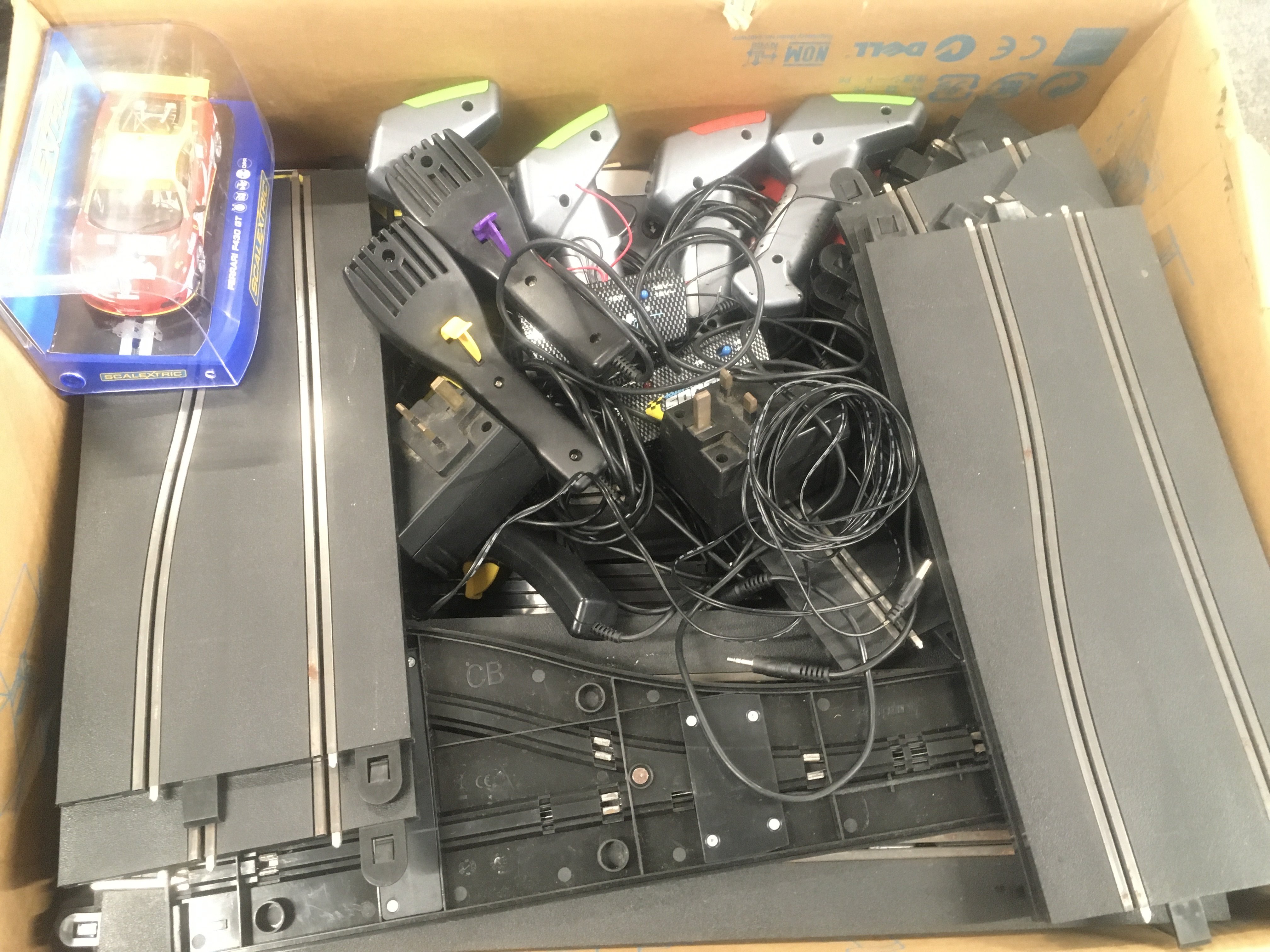 2 Boxes Containing Scalextric Cars. Track. Controllers Etc.(2).