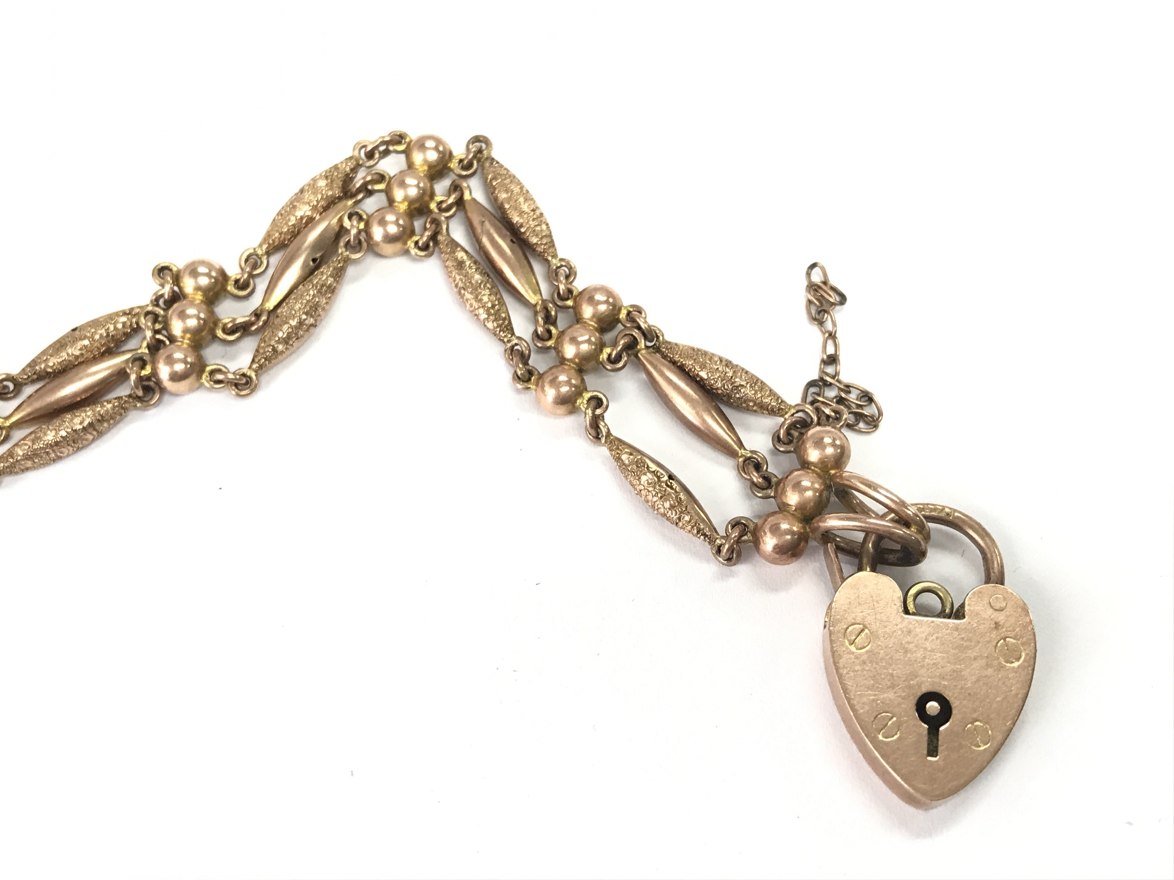 A 9ct gold gate bracelet with heart shaped padlock. Approx 13.70g Postage A
