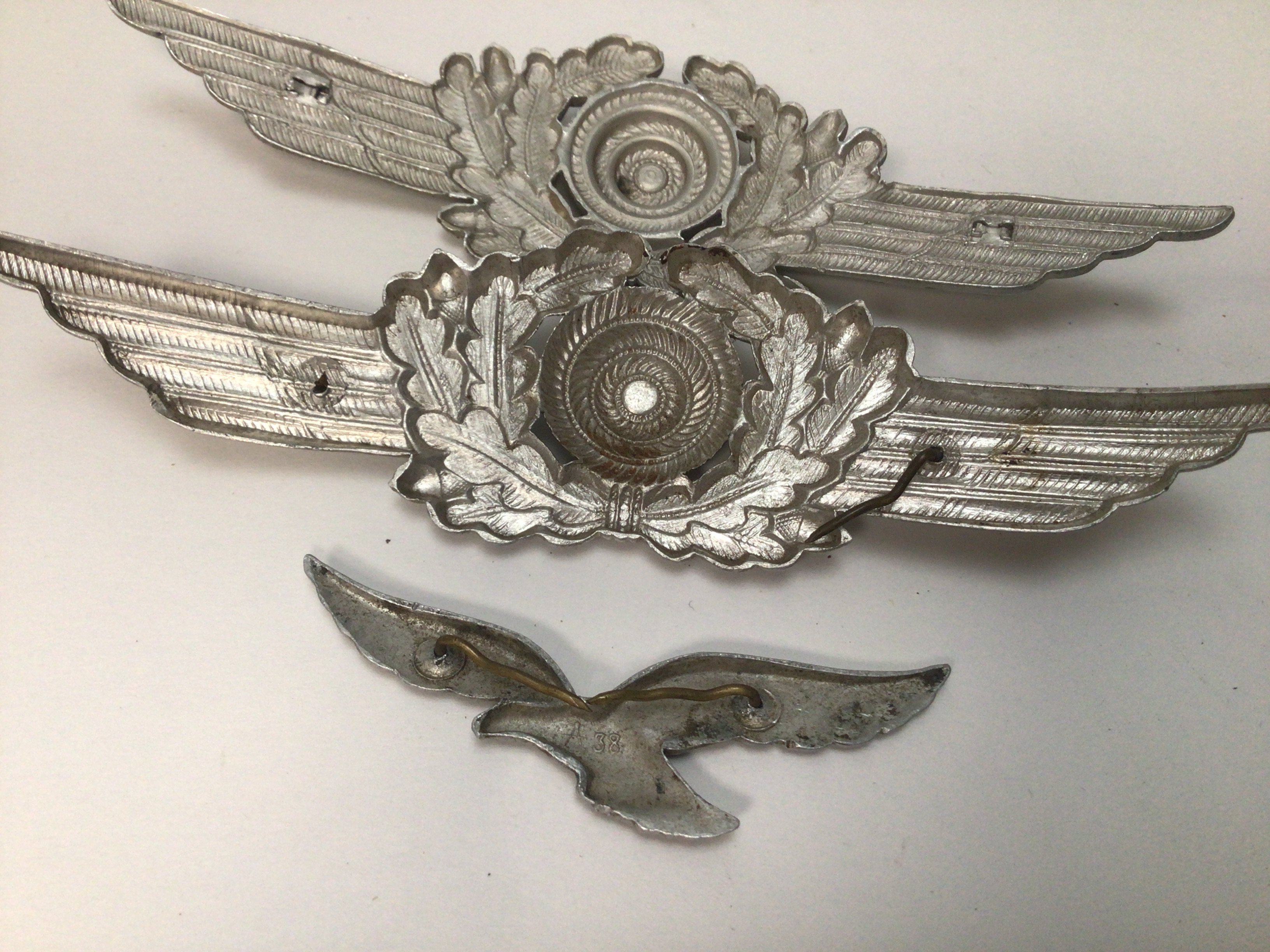 Two German Third Reich Luftwaffe peaked cap officers Insignia one other conforming badge. (3)