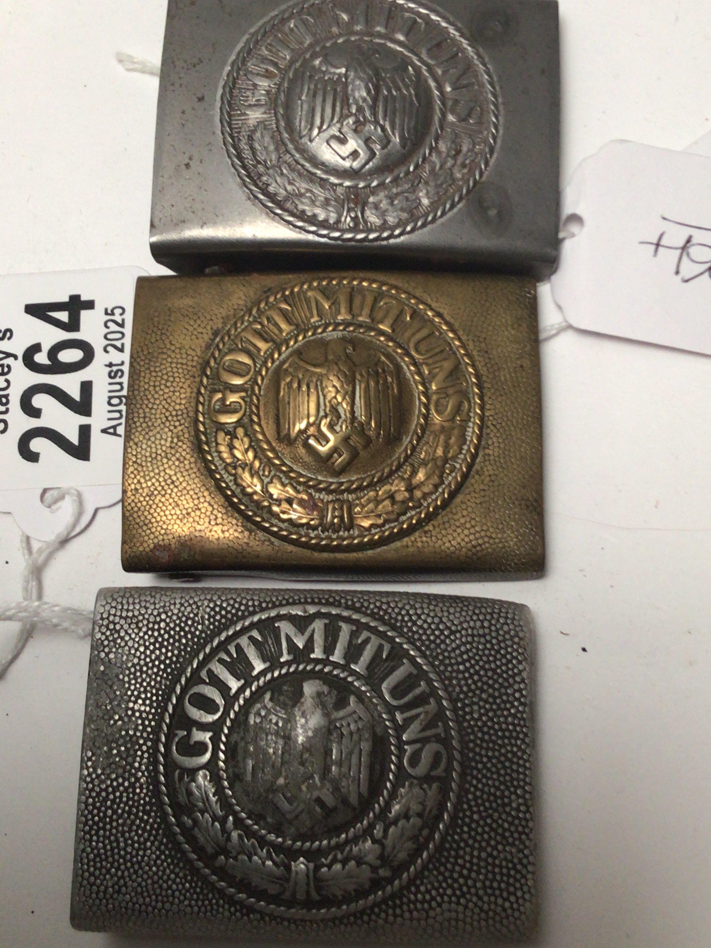 Three German Third Reich Army belt buckles with central Eagle one with a brass finish (3)