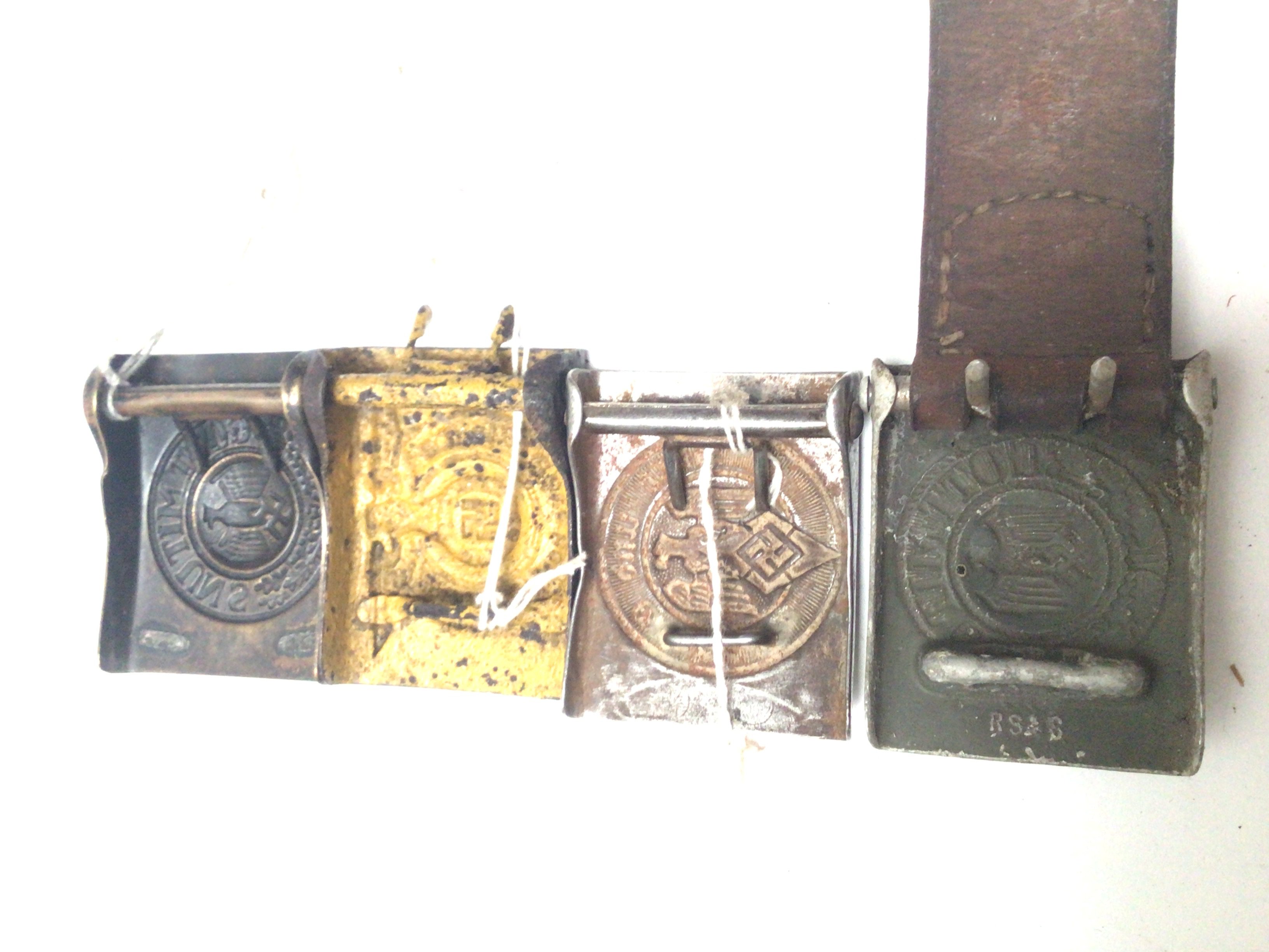 Four German Third Reich belt buckles including Hitler Youth SS and Army buckles. (4)