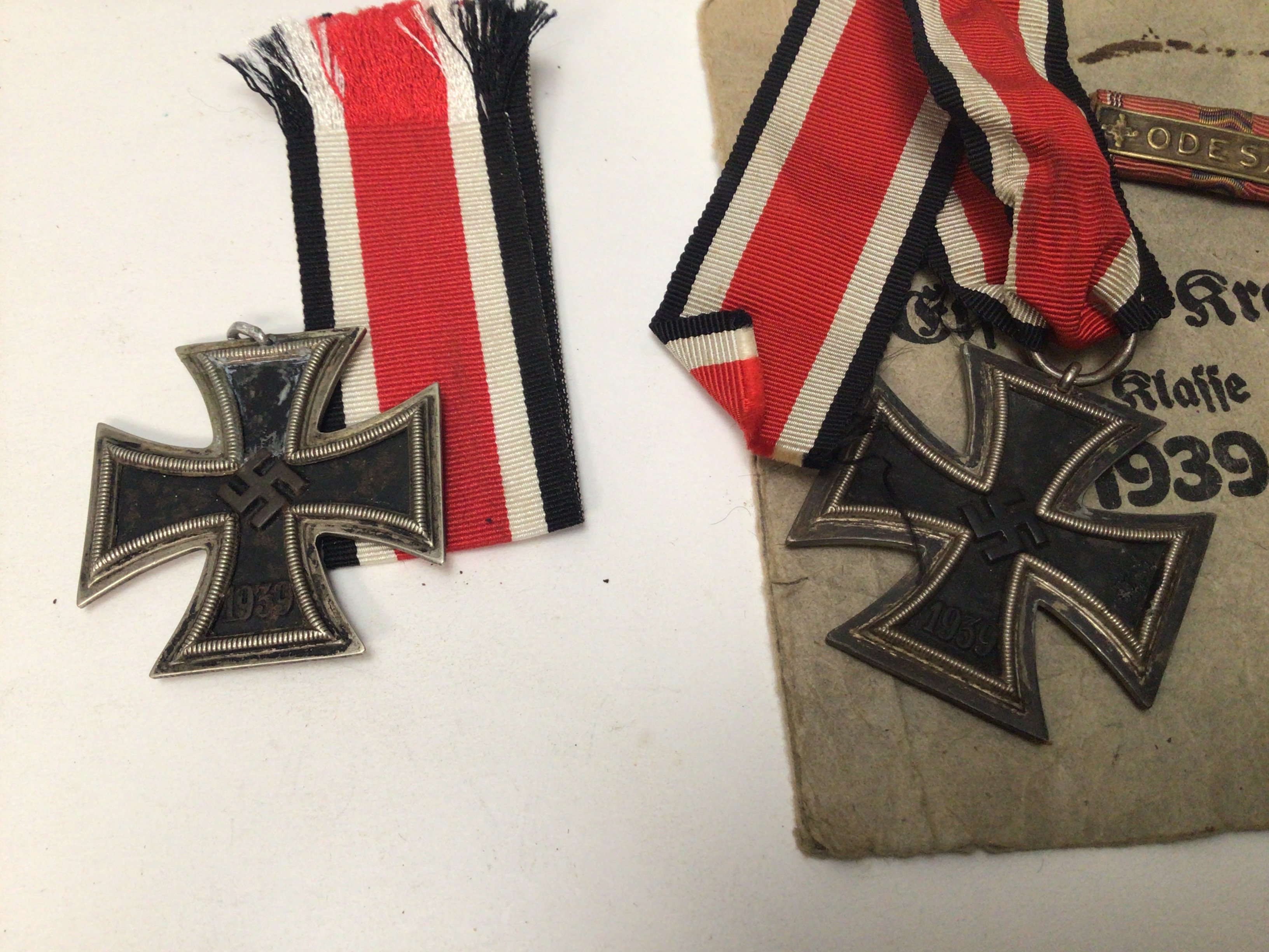 Two German Third Reich iron cross second class one with original envelope and bar for Odesa. (2)