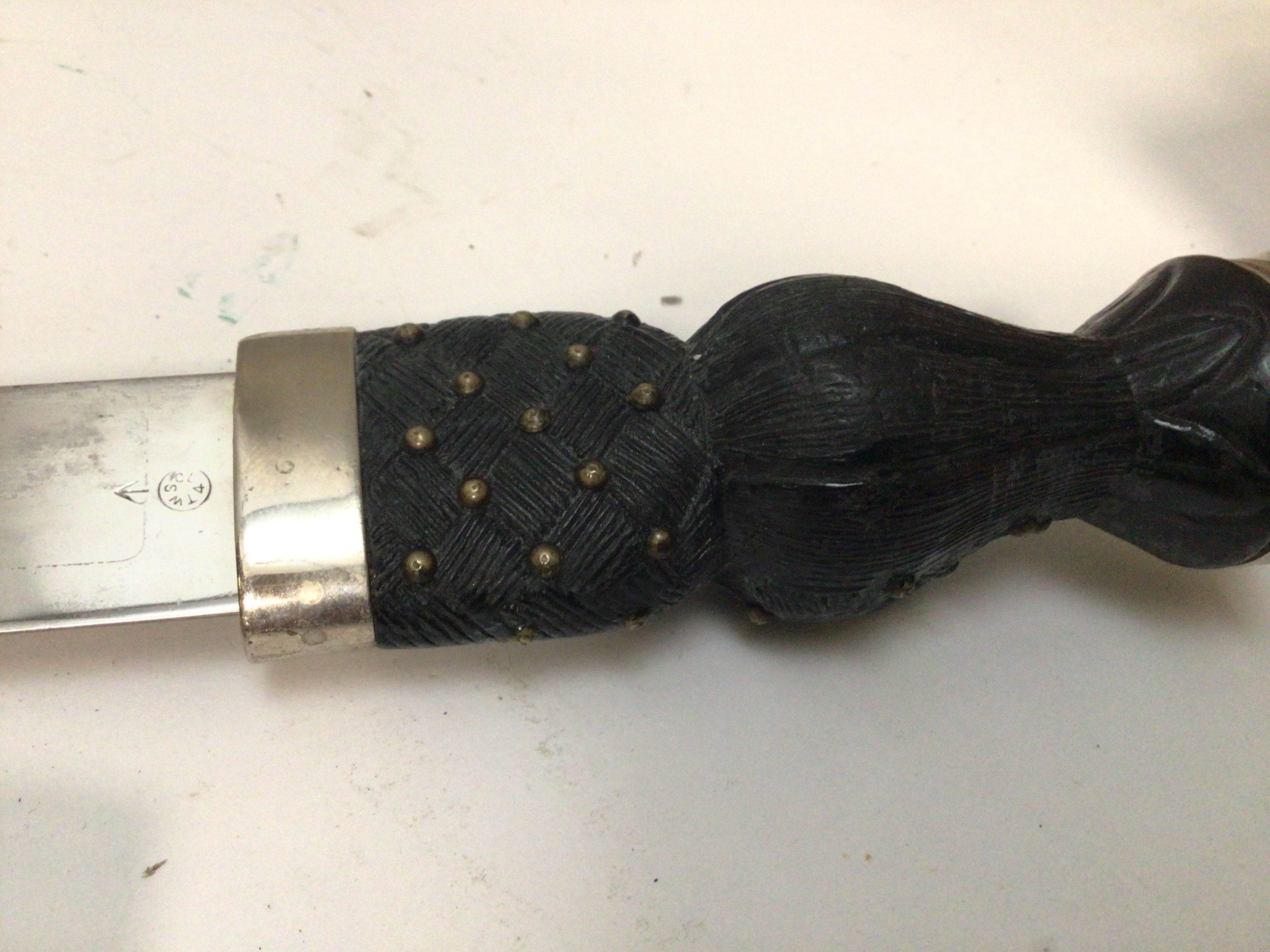 A Scottish Dirk maker Wilkinson Pall Mall the blade with a military symbol. Raised crown pommel.