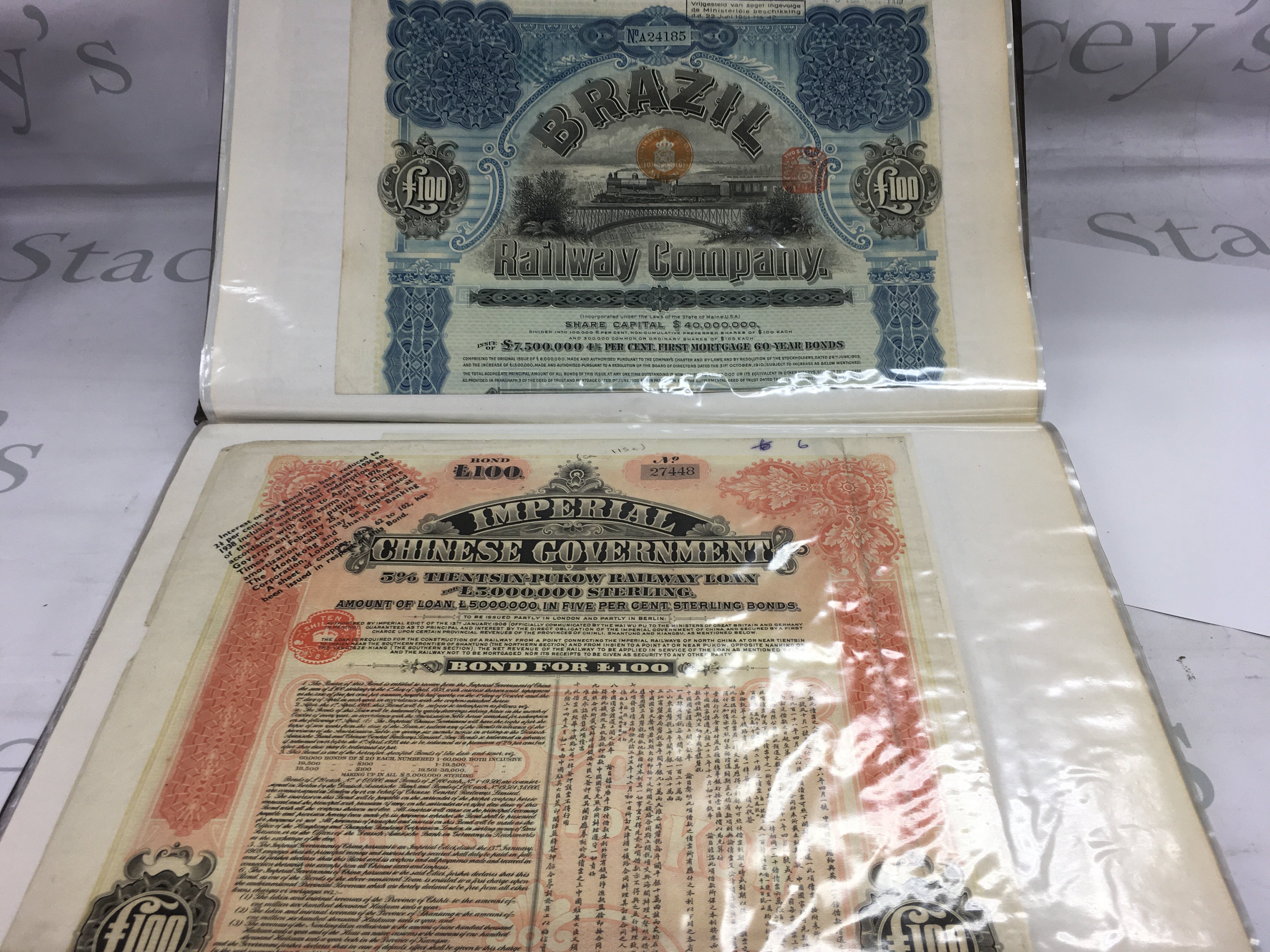 A collection of interesting bonds from various destinations including USA Brazil China Etc. Postage B