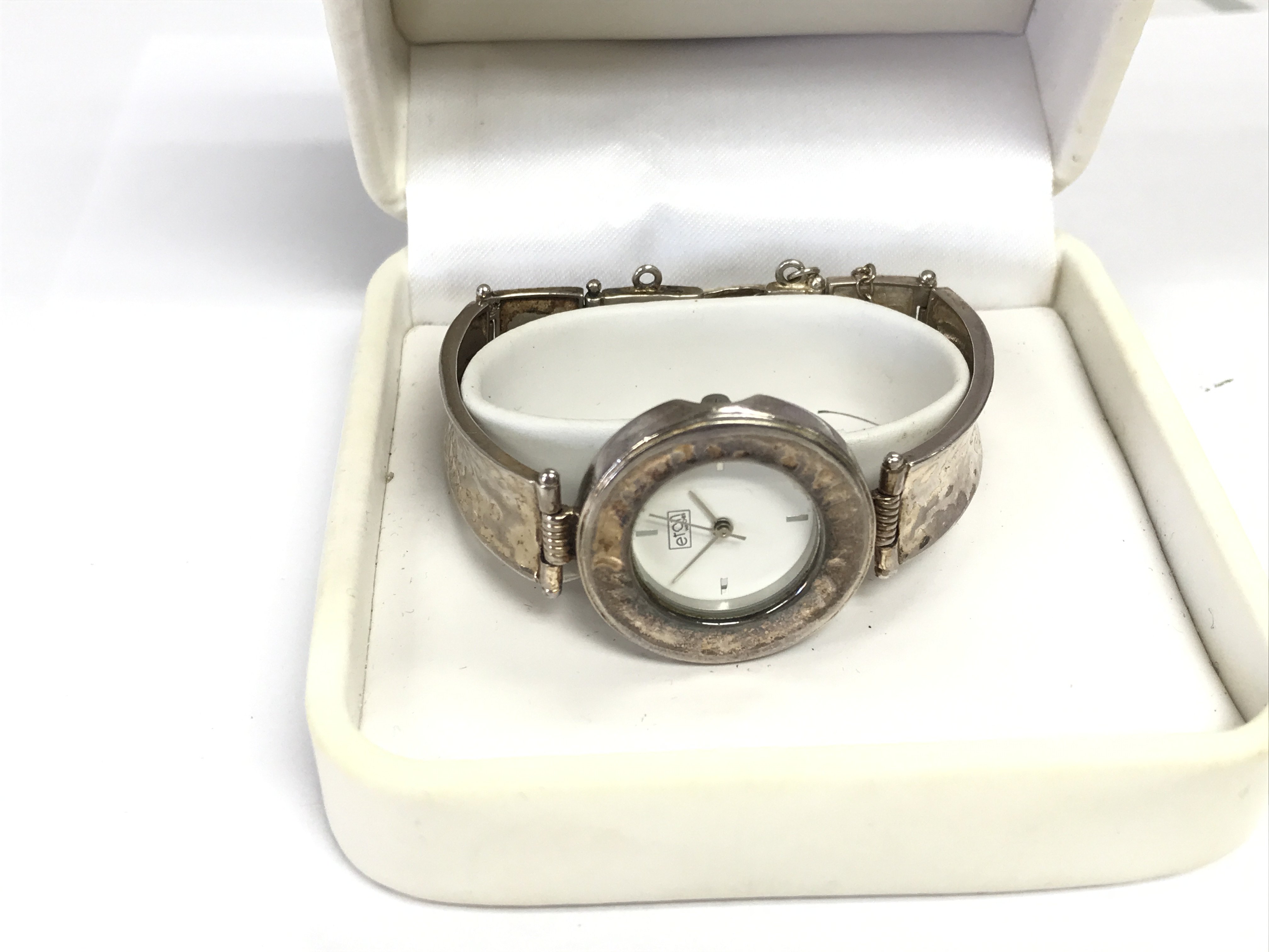 A sterling silver ladies watch by Eton with box. Postage B