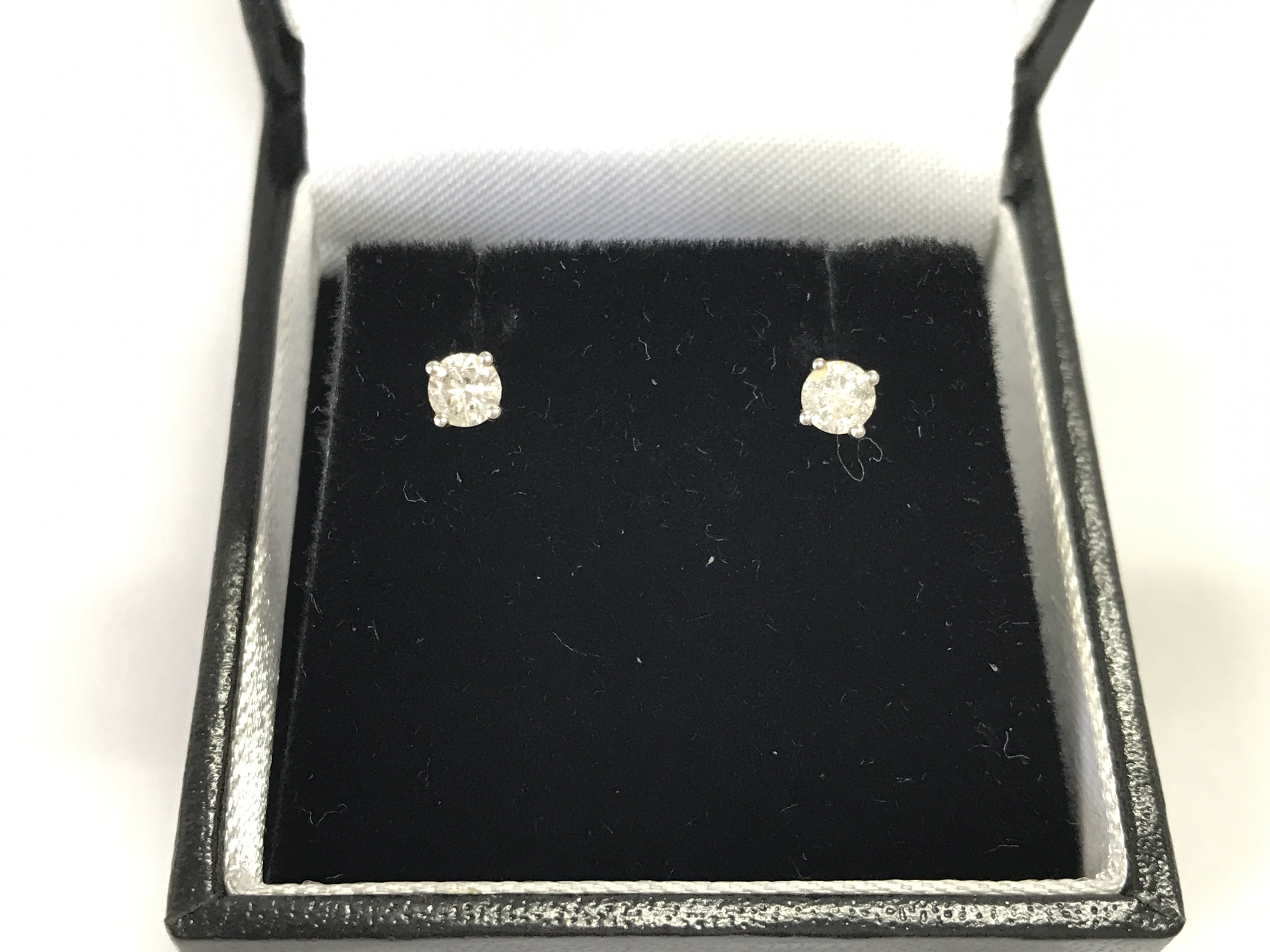 A pair of 9ct white gold diamond studs approximately 0.33ct. Postage A
