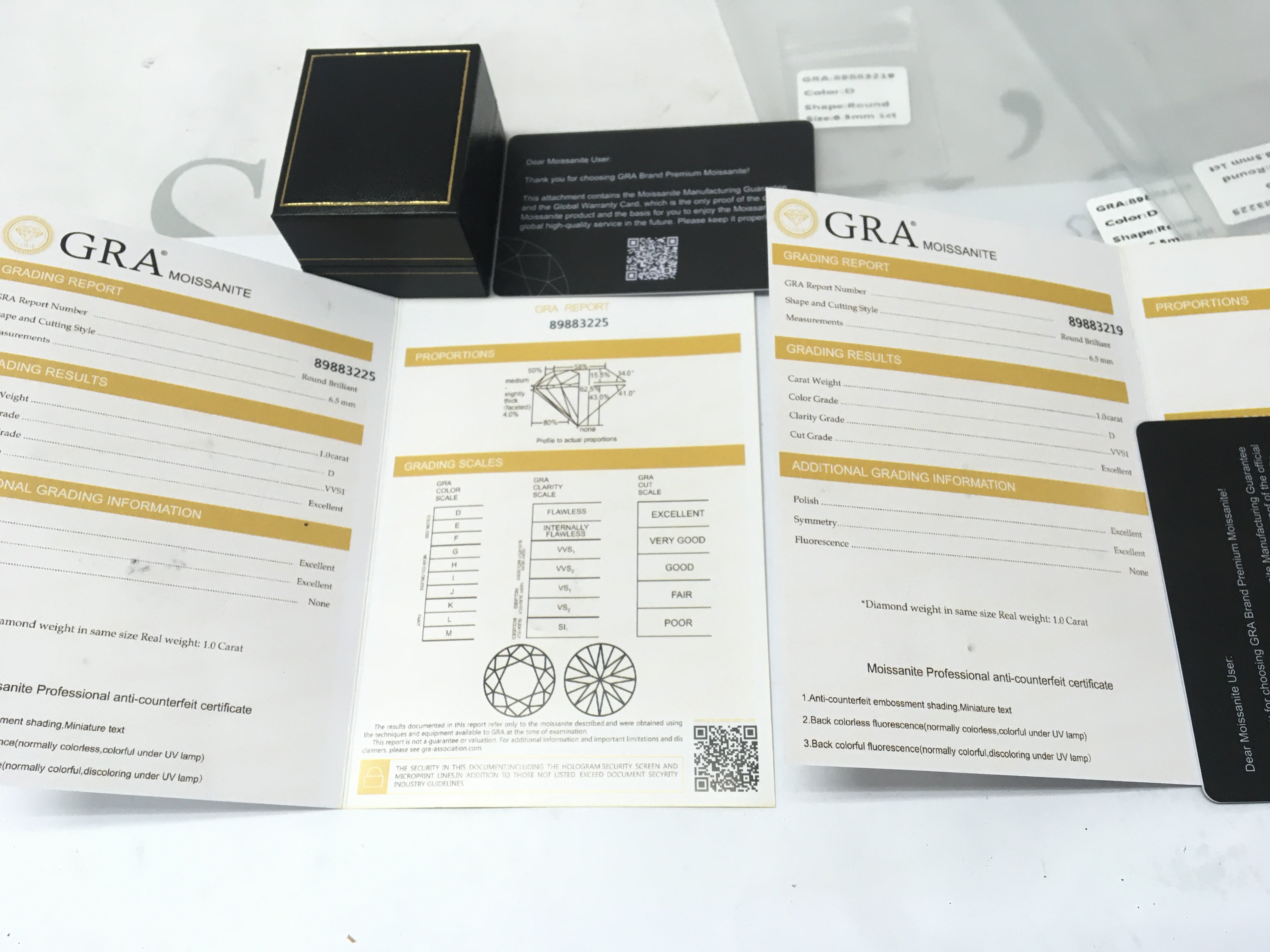 A pair of 1 ct Moissanite solitaire studs. Both with GRA reports. Postage B