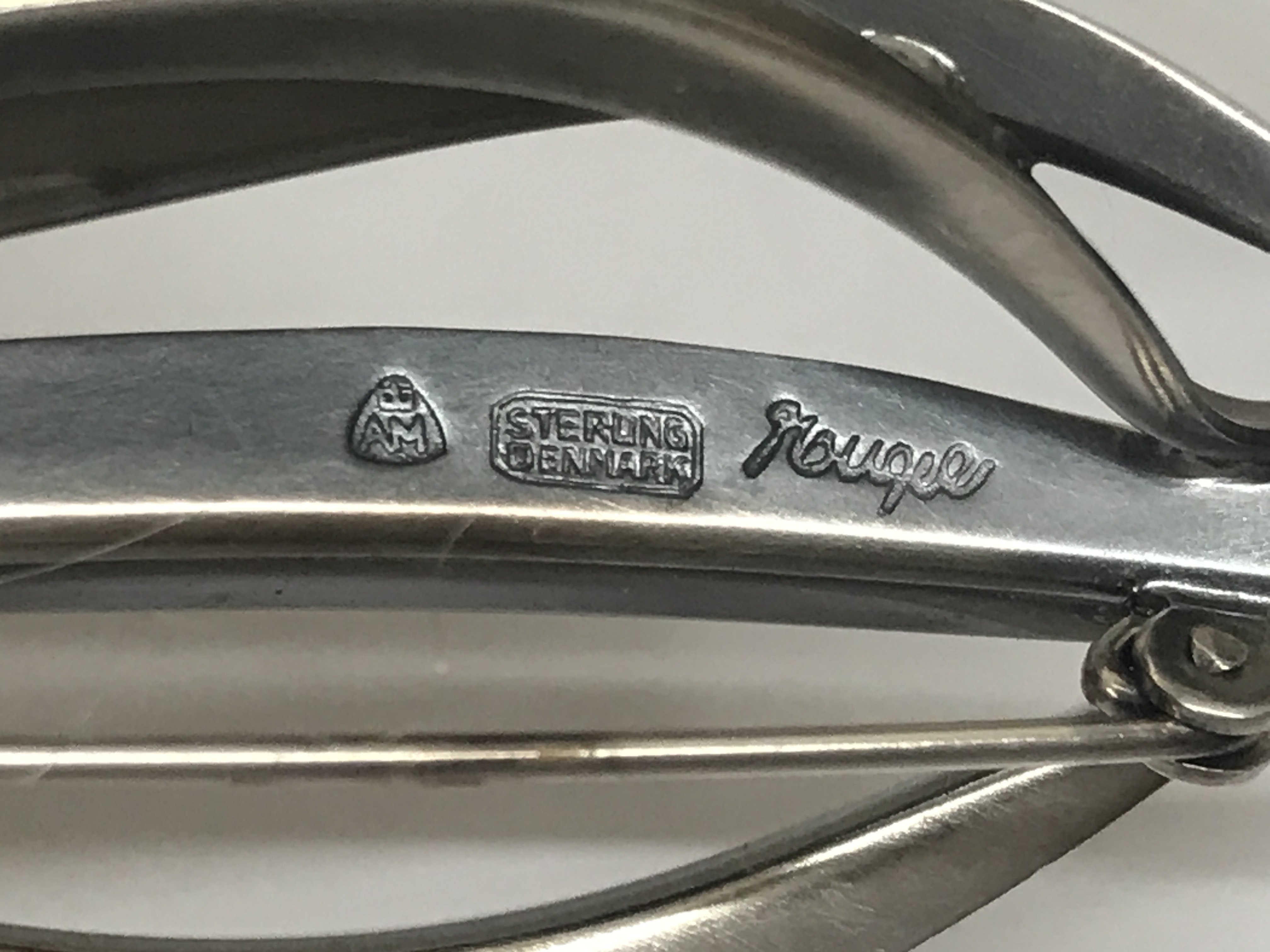 Anton Michelsen Rougie silver brooch, Aarre & Krogh Danish brooch and a silver enamel Viking boat brooch . Postage category B- NO RESERVE