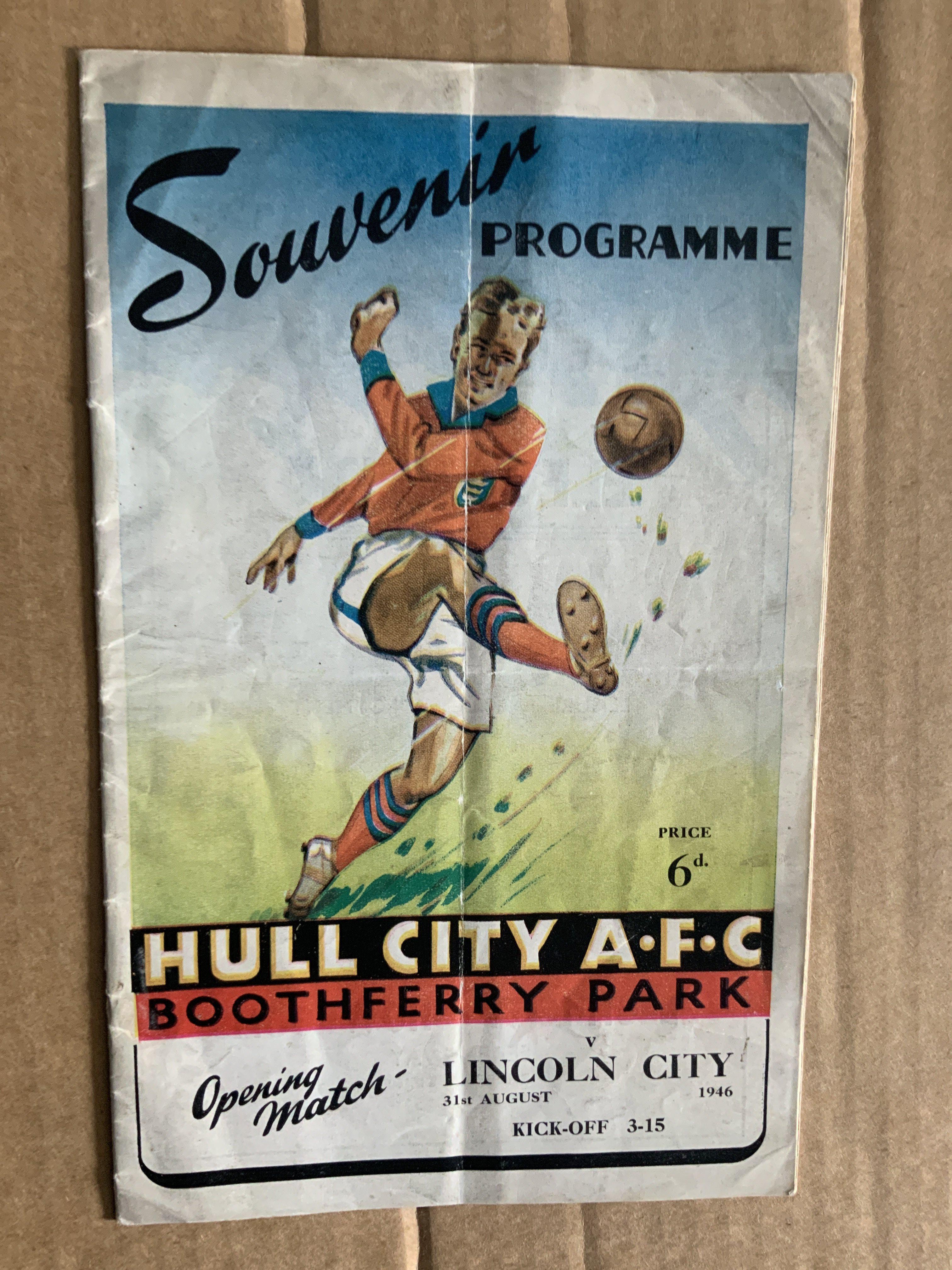 46/47 Hull City Home Football Programmes: Matches v Rotherham, Accrington Stanley, Lincoln reprint and original, Darlington, Doncaster, Wrexham, Southport writing, Bradford City, York and Hartlepool. Mainly good. (11)