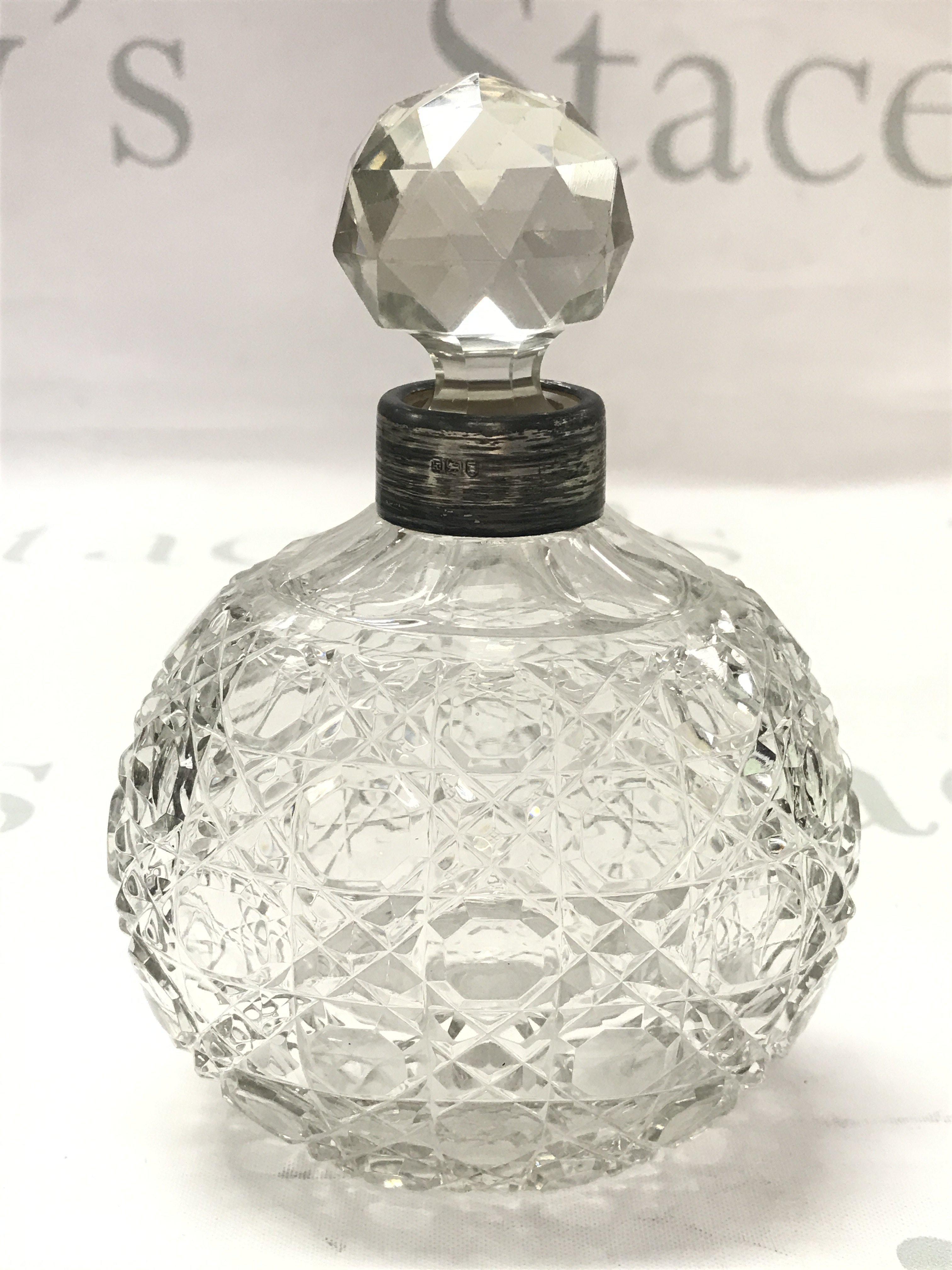 A silver Hallmarked topped cut crystal glass bottle , this lot cannot be posted- NO RESERVE