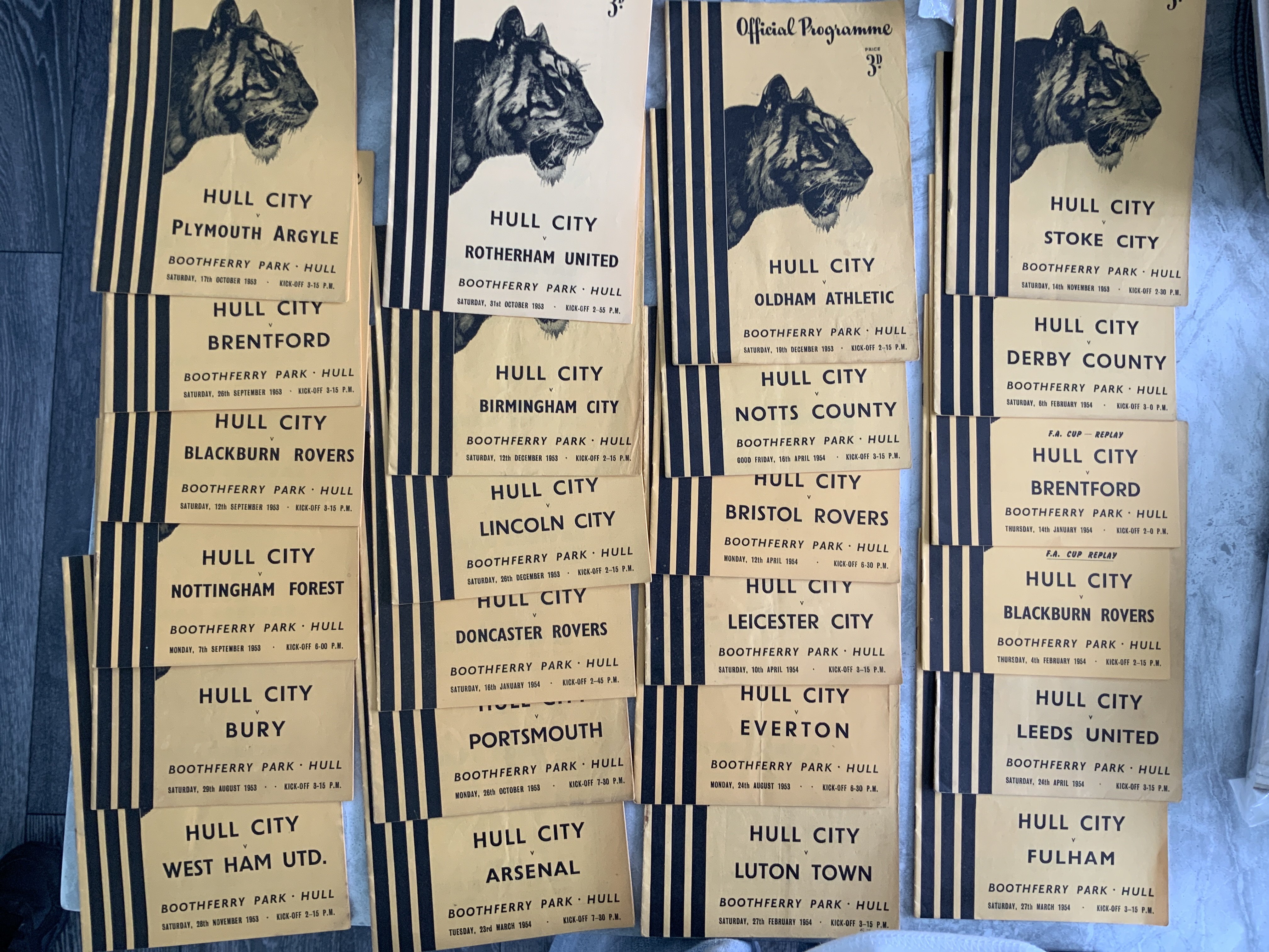 53/54 Hull City Home Football Programmes: Includes Portsmouth Arsenal friendly and cup replays v Brentford and Blackburn. Near complete set of league matches with only Swansea missing. Very good. (24)