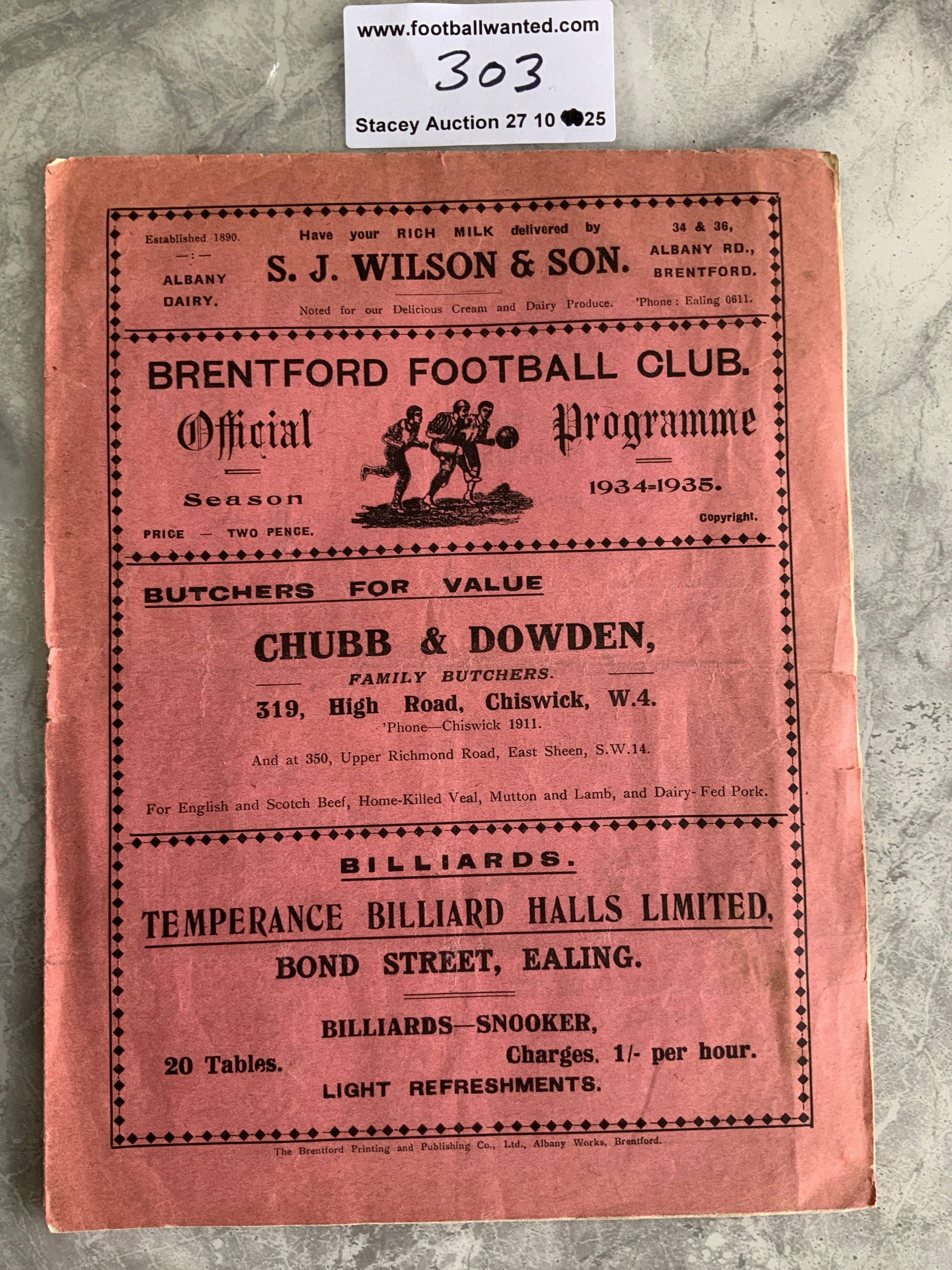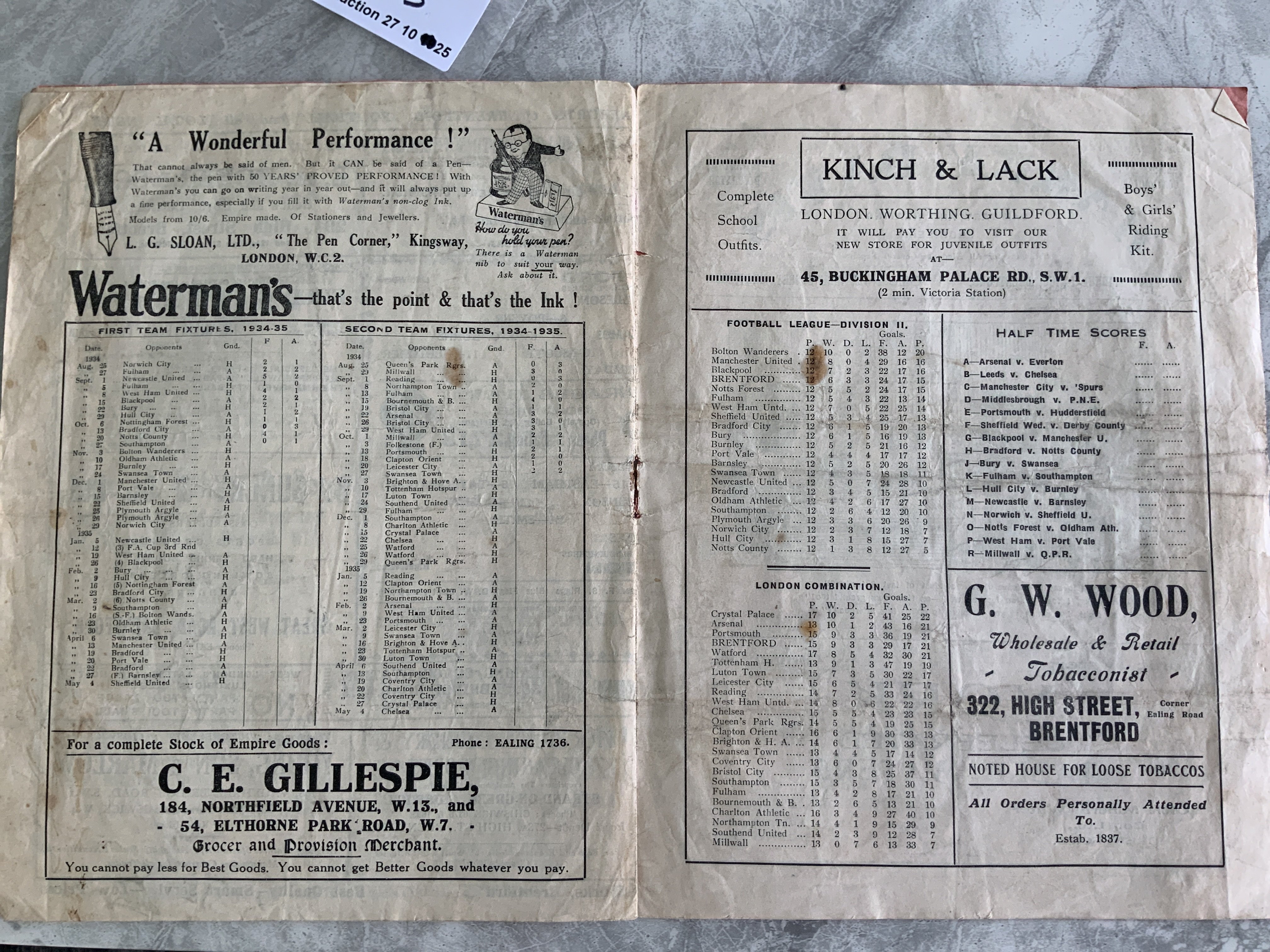 34/35 Brentford v Bolton Football Programme: Fair condition league match with no team changes. Staple removed and a few marks inside.