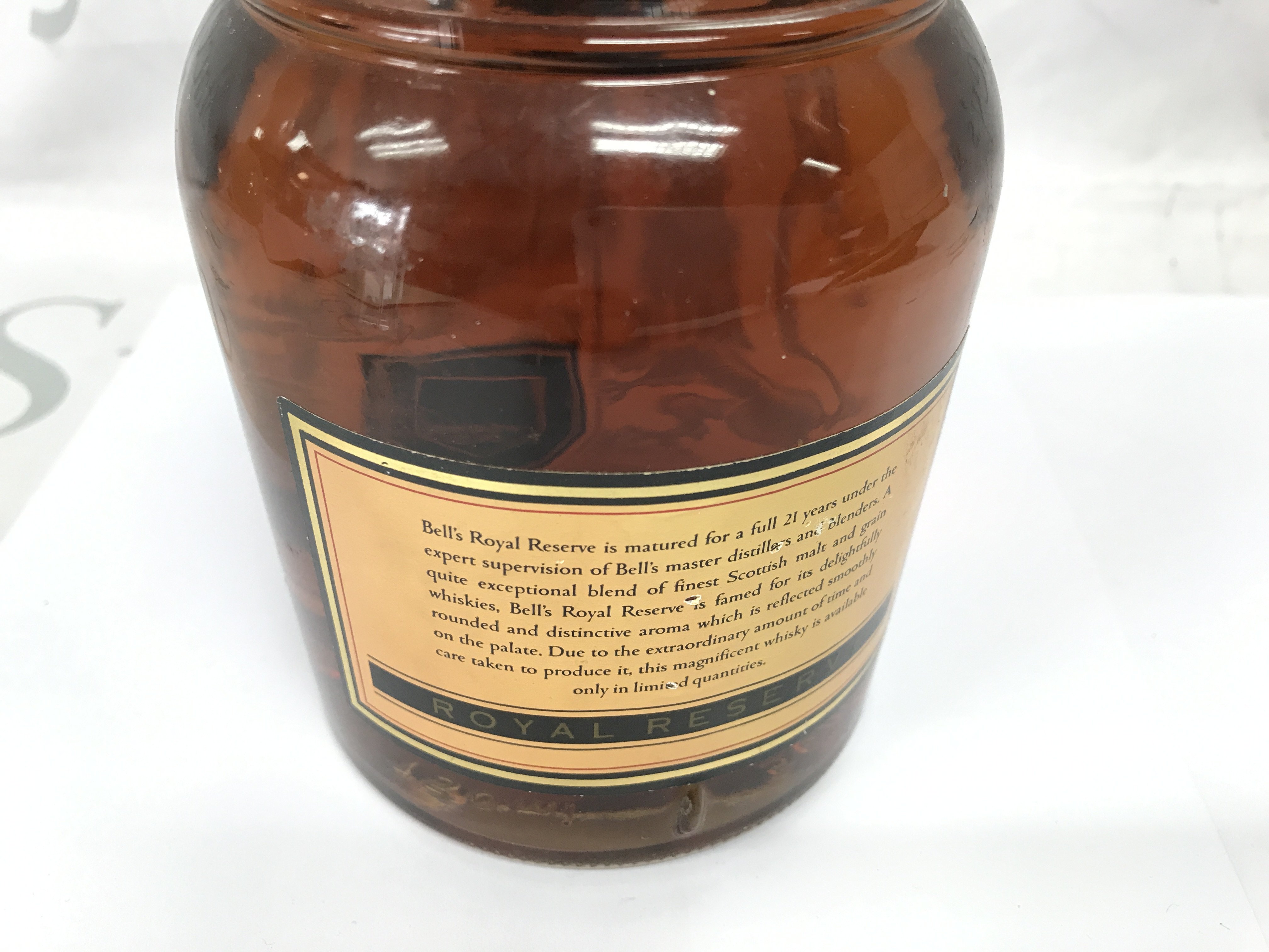 A bottle of bells 21 year old rare scotch whiskey with a silver label.