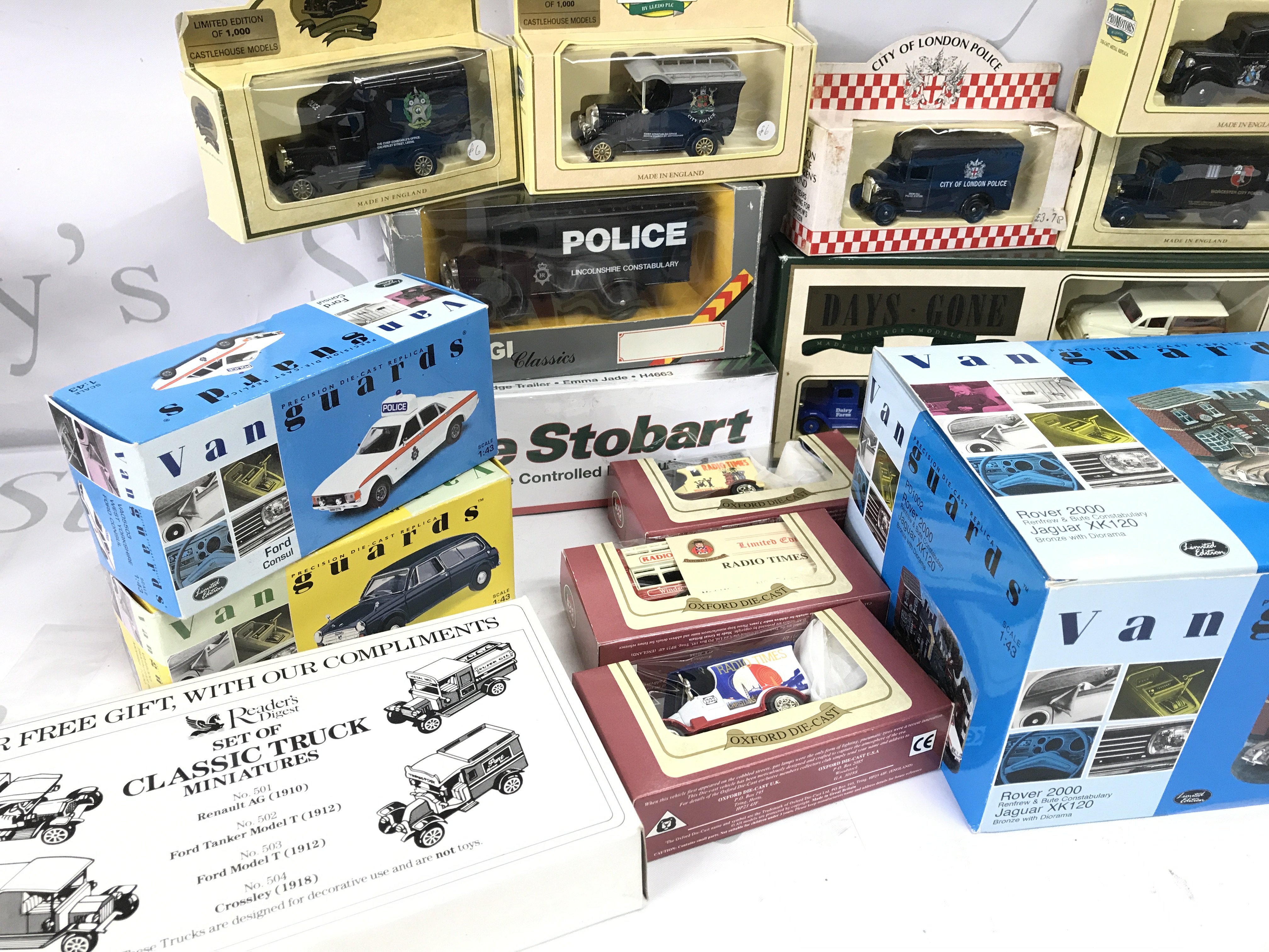 A collection of assorted die cast vehicles including Vanguards Corgi classics and matchbox etc. Postage B