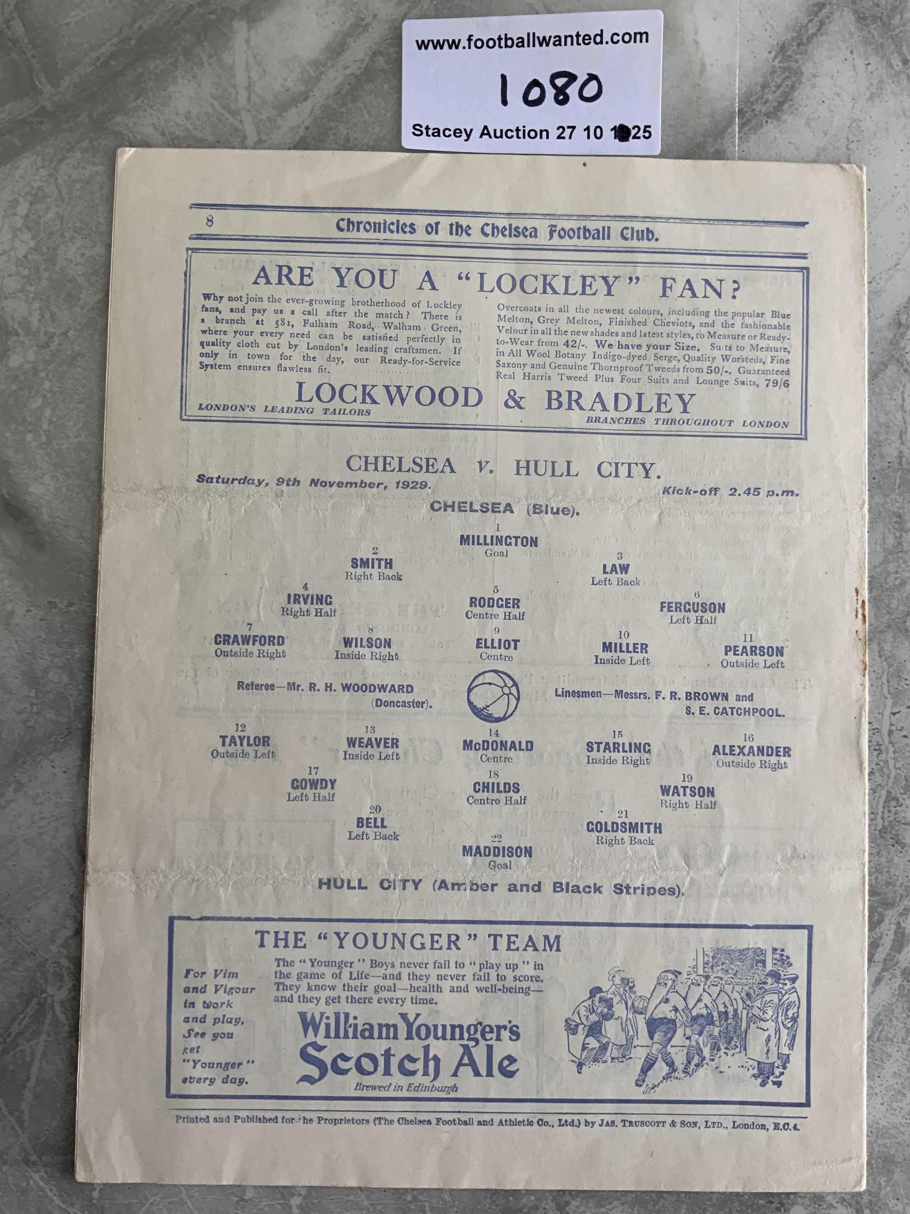 1929 - 1930 Chelsea v Hull City Football Programme: Very good condition league match with no team changes.