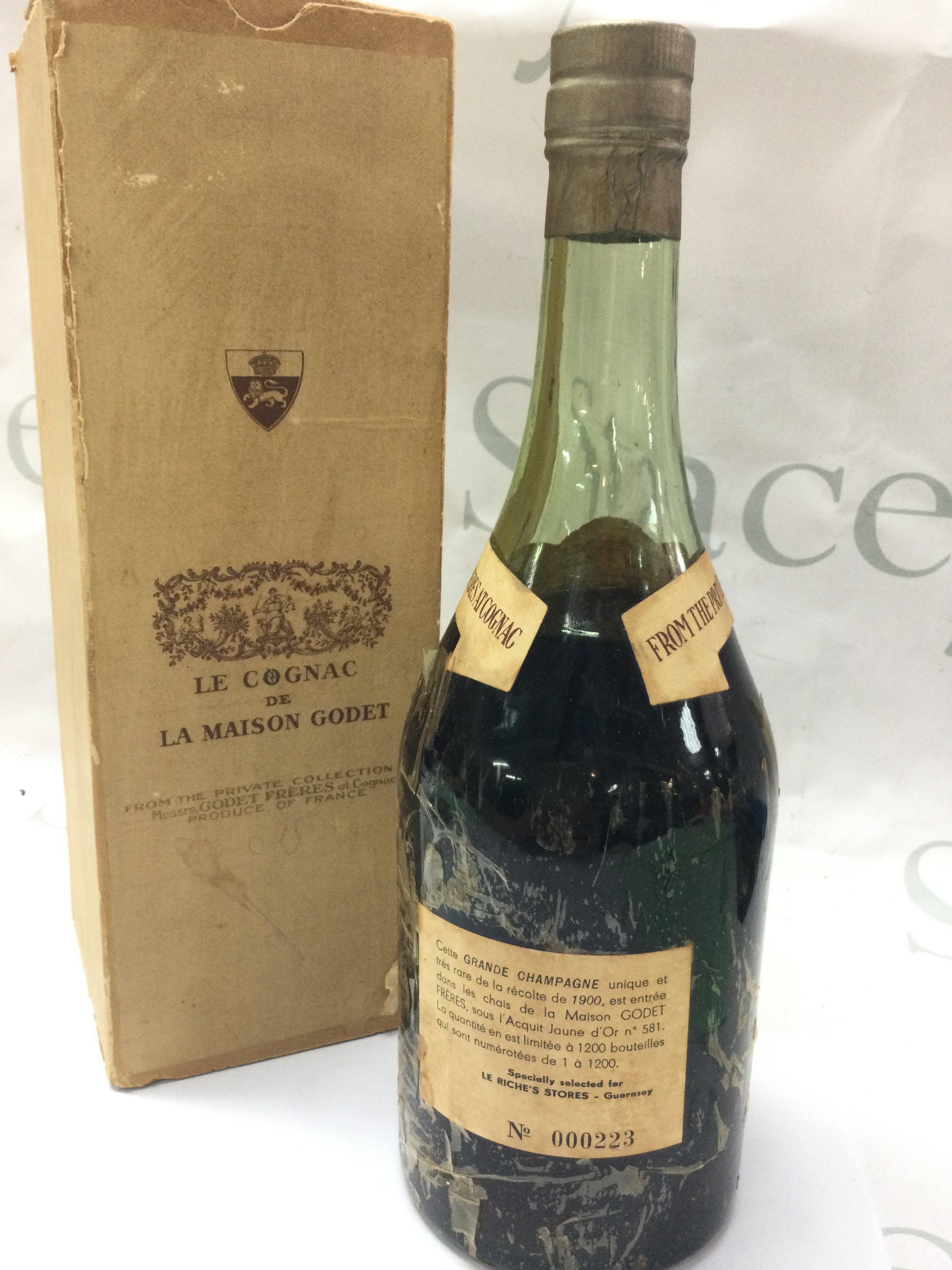 A boxed bottle of Grande Champagne 1900 Le Cognac De La Maison Godet