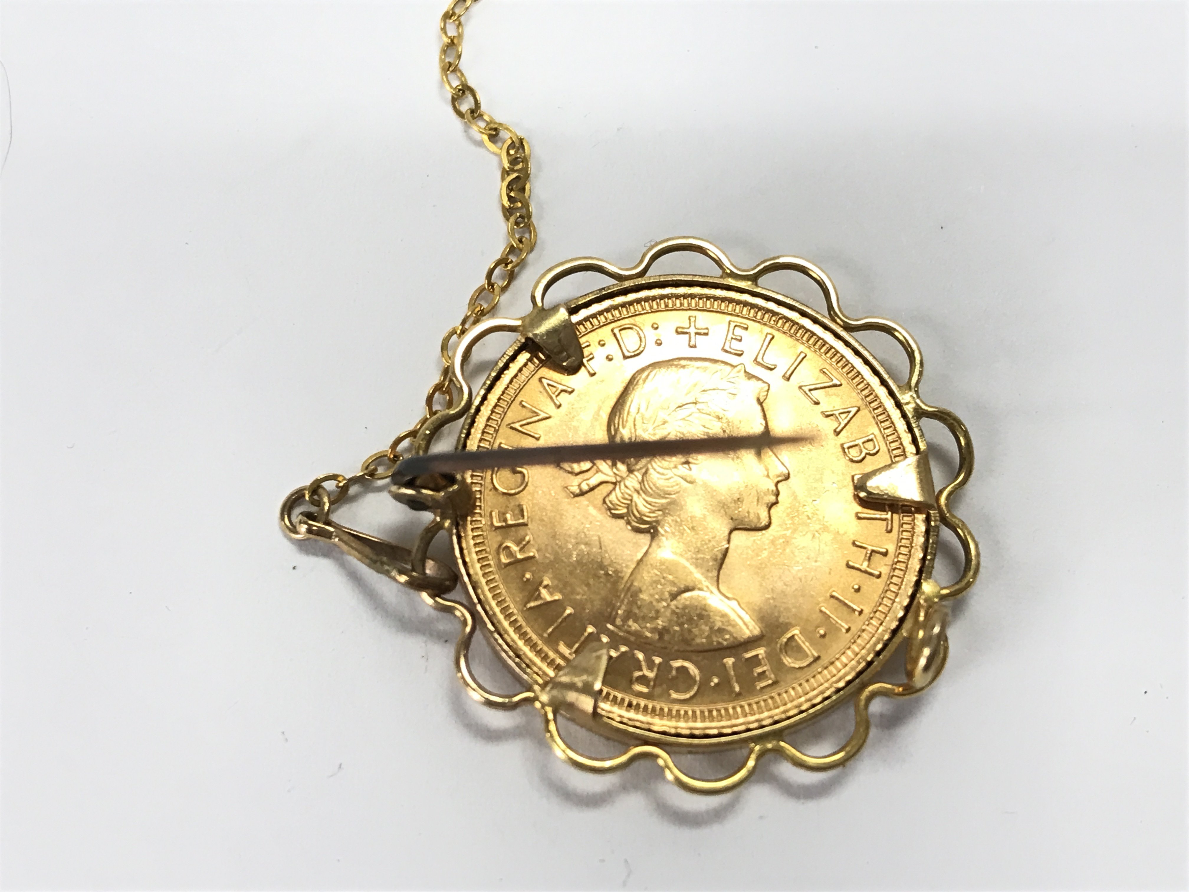 1968 full sovereign in a 9ct brooch. 10.74g