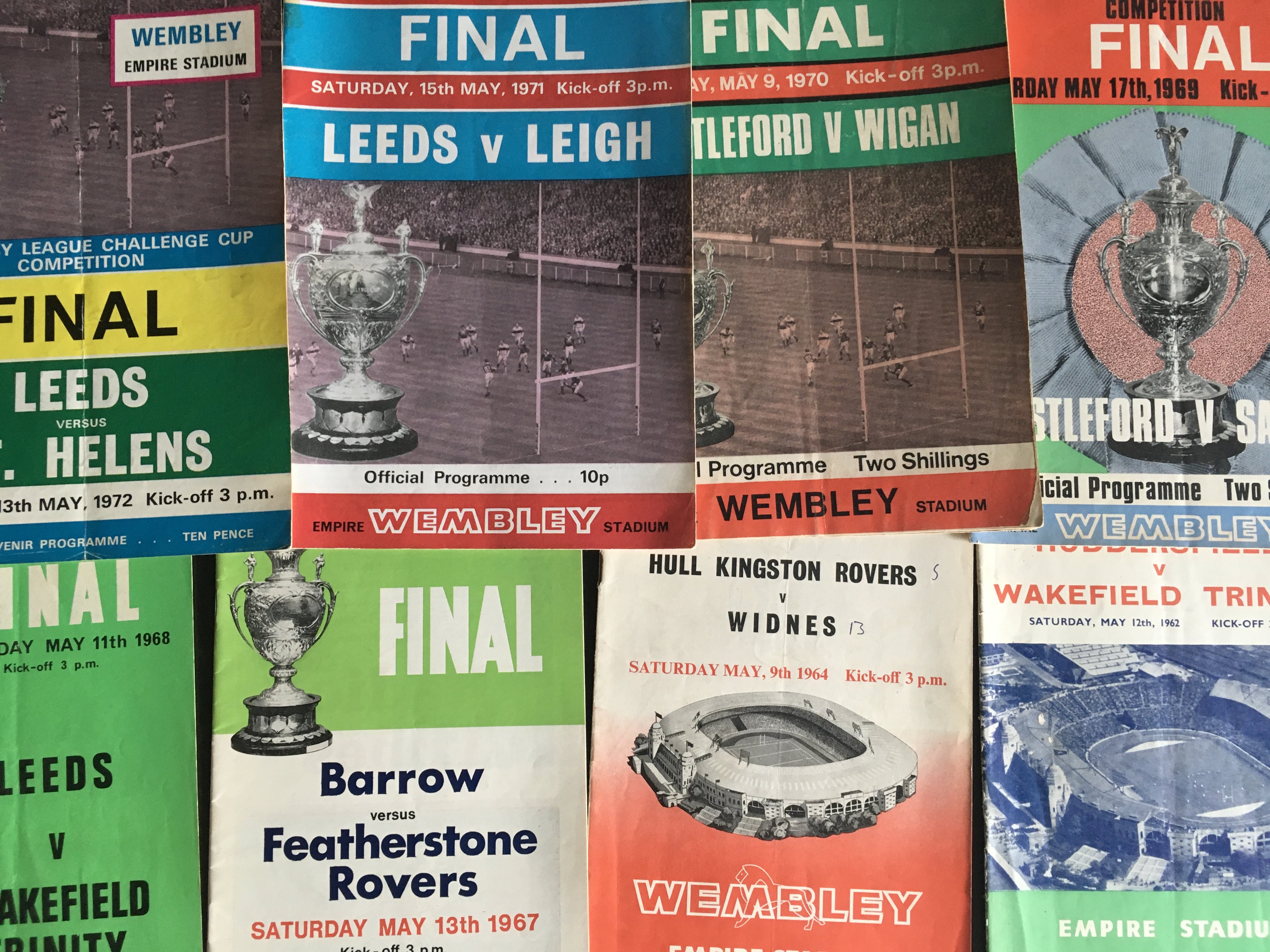 Rugby League Final Football Programmes: 1947 excellent, 1950 x 2 both with small faults, 1952 with ticket, 1955 and 1957 with writing. There are a further 12 from 1962 to 1976 in mainly good condition. (18)