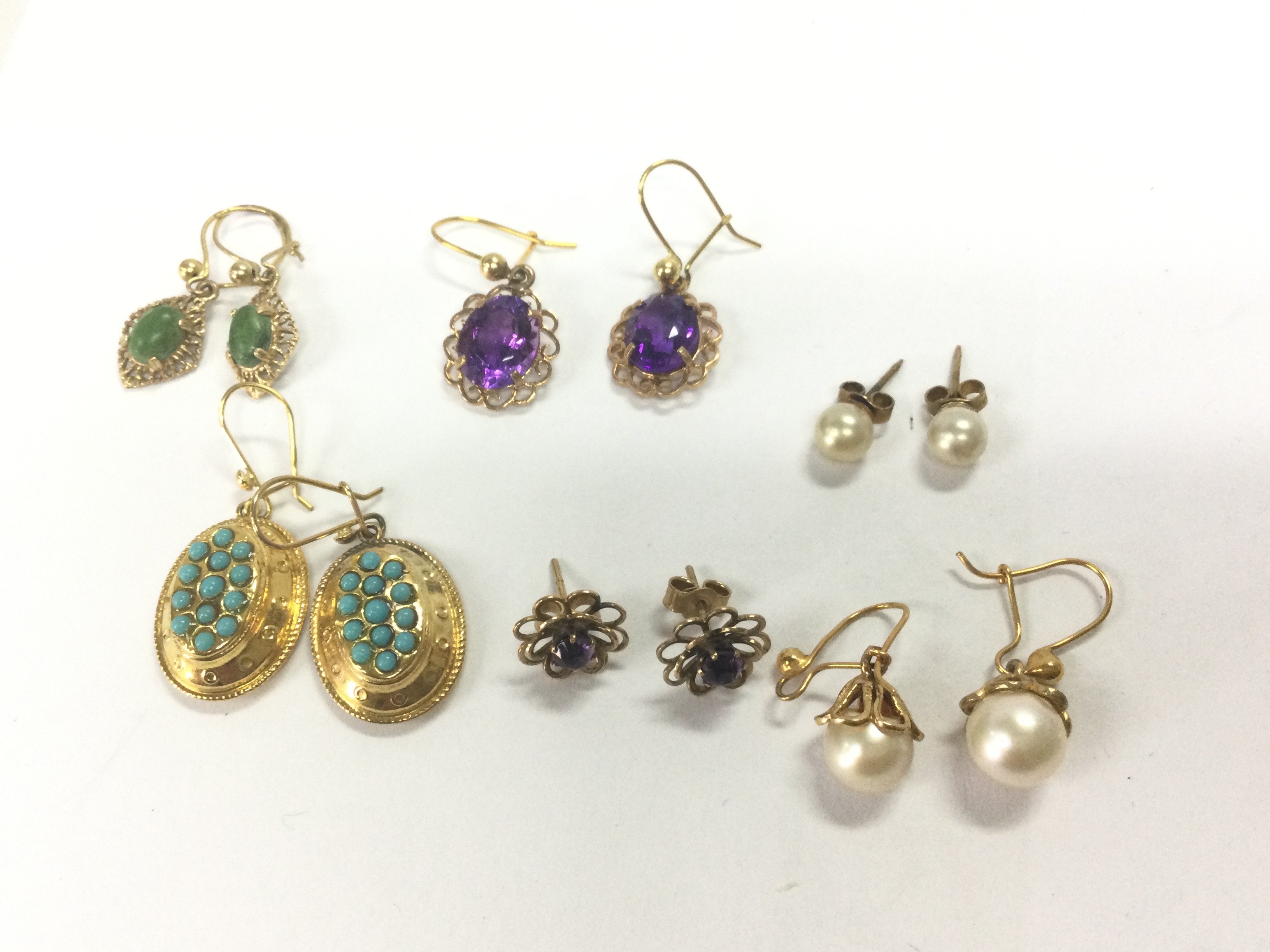 A collection of assorted earrings including 6 9ct gold hallmarked pairs weight 12.50g Postage A
