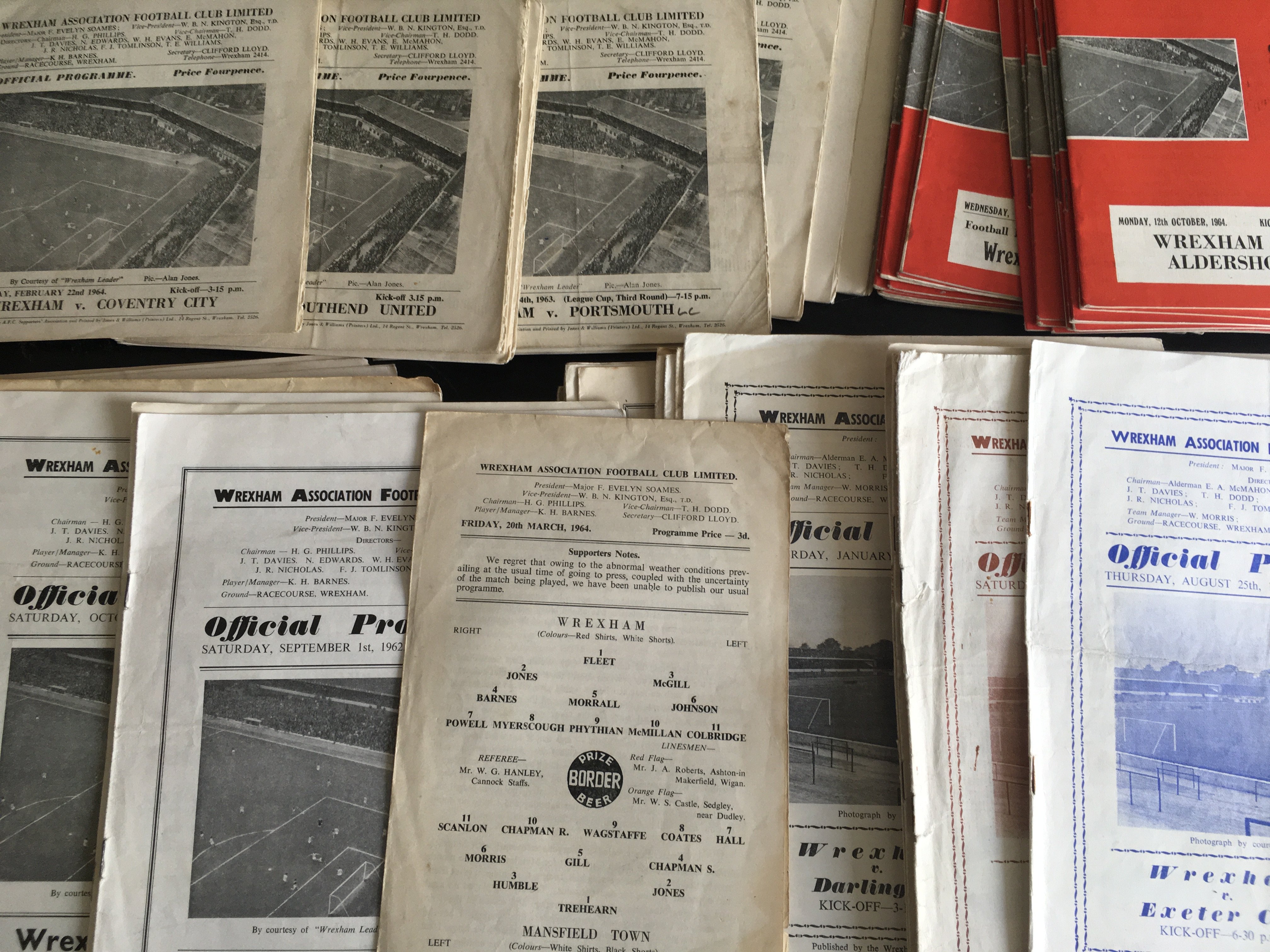 Wrexham Home Football Programmes: 11 from the late 50s and approximately 120 from the 60s and 20 from the early 70s. Instructions to sell. Very good. (est 150+)