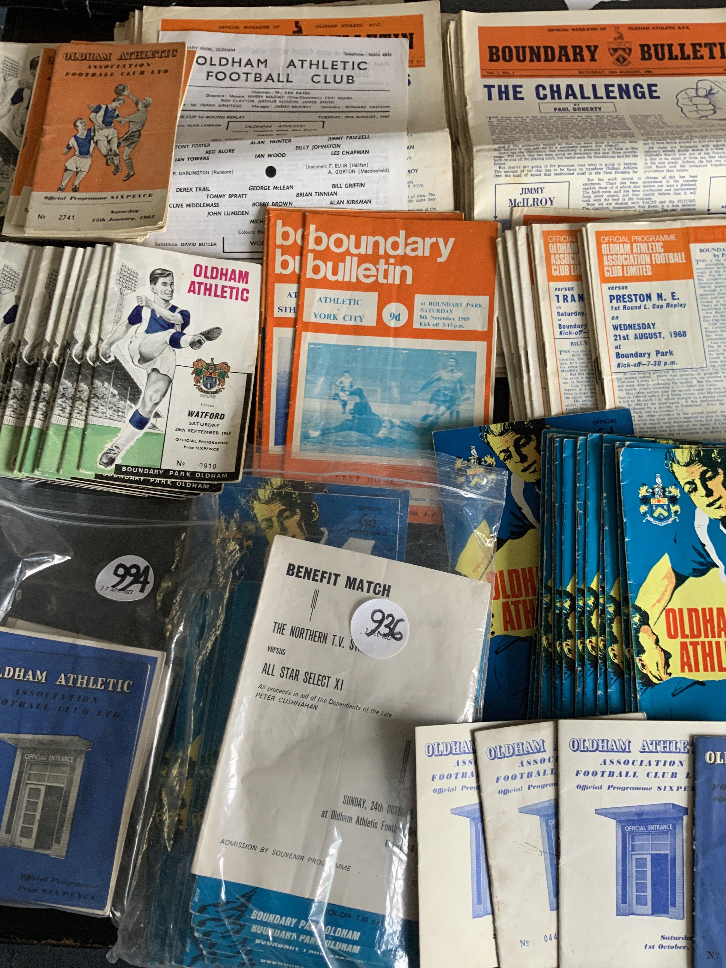 Oldham Athletic Home Football Programmes: 7 from the 50s and approximately 180 from the 60s and a few from the early 70s. 60/61 + 65/66 possibly complete of league matches. Instructions to sell. Very good. (est 200)
