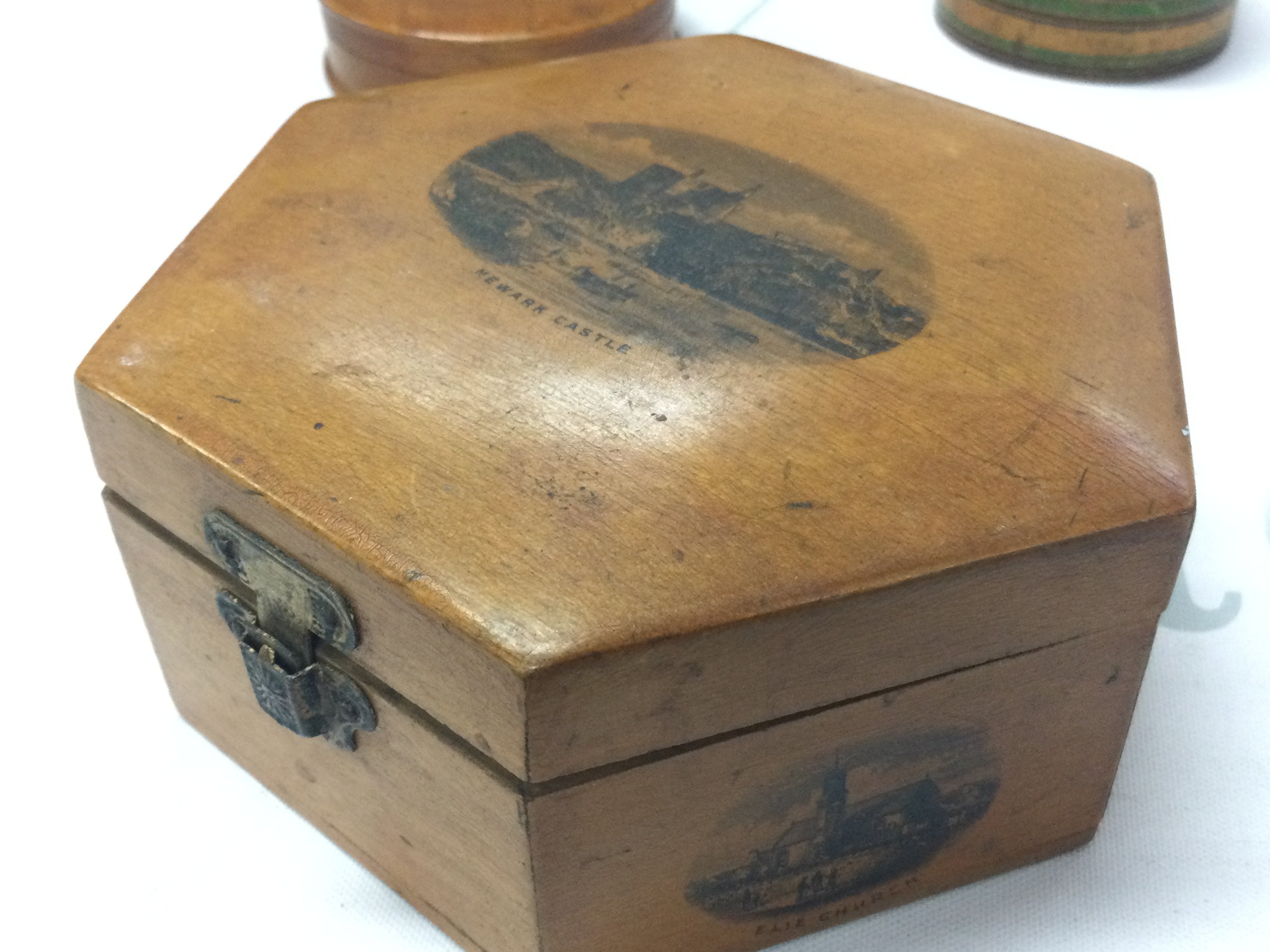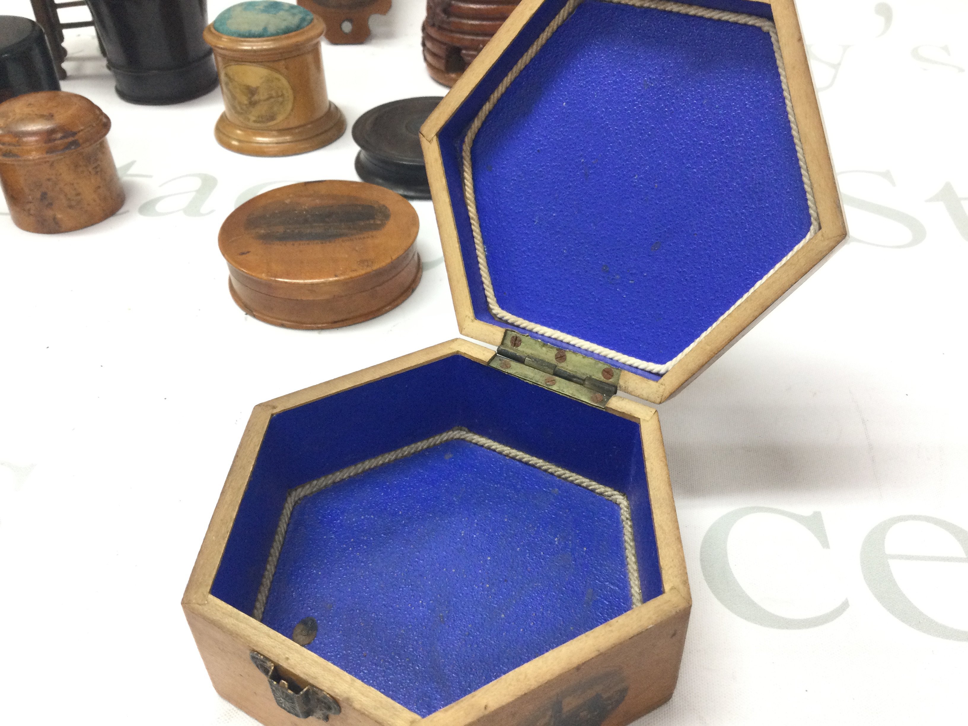 19th century treen Including trinket boxes , needle cushion, hourglass, etc . Postage category B