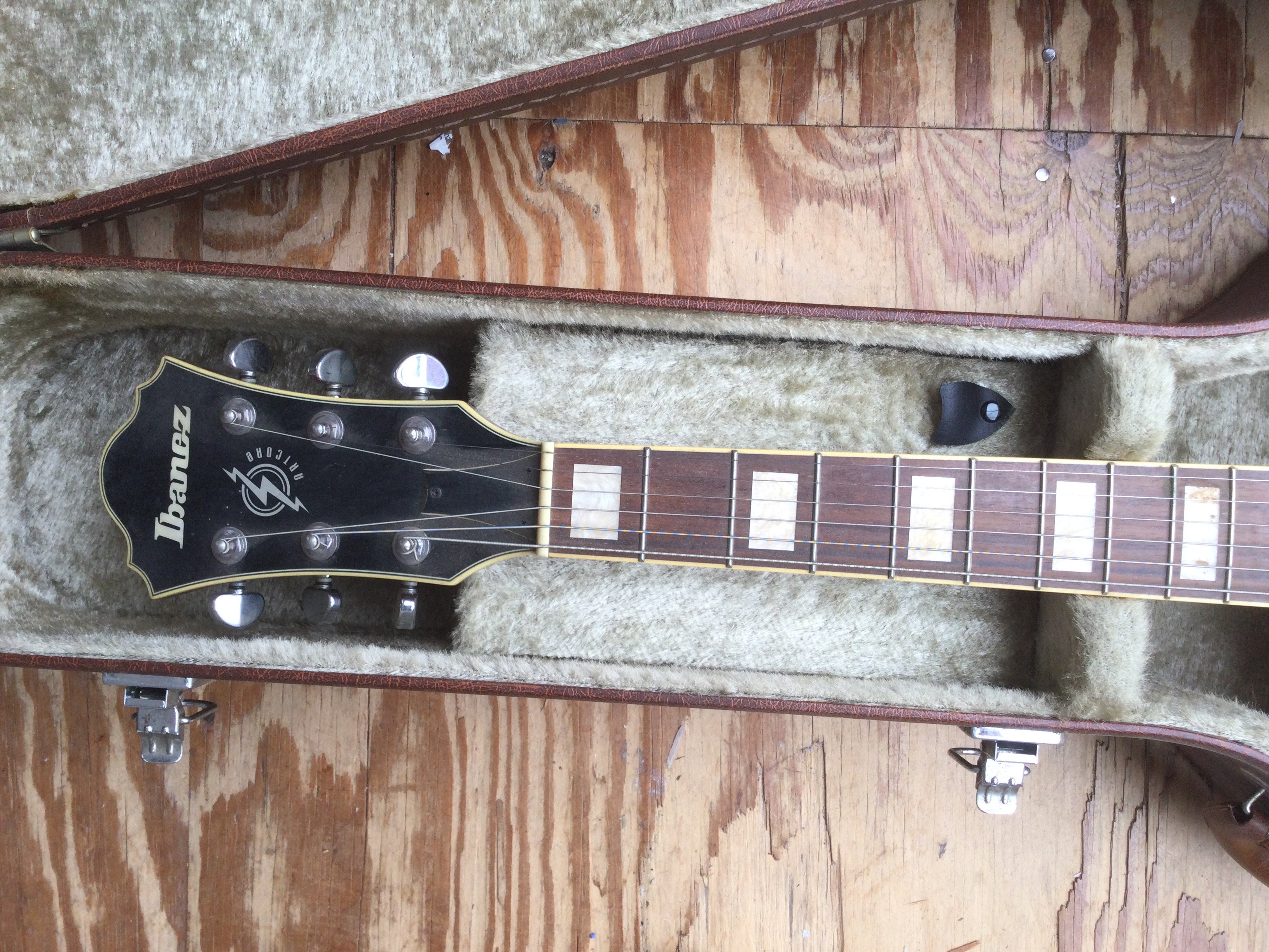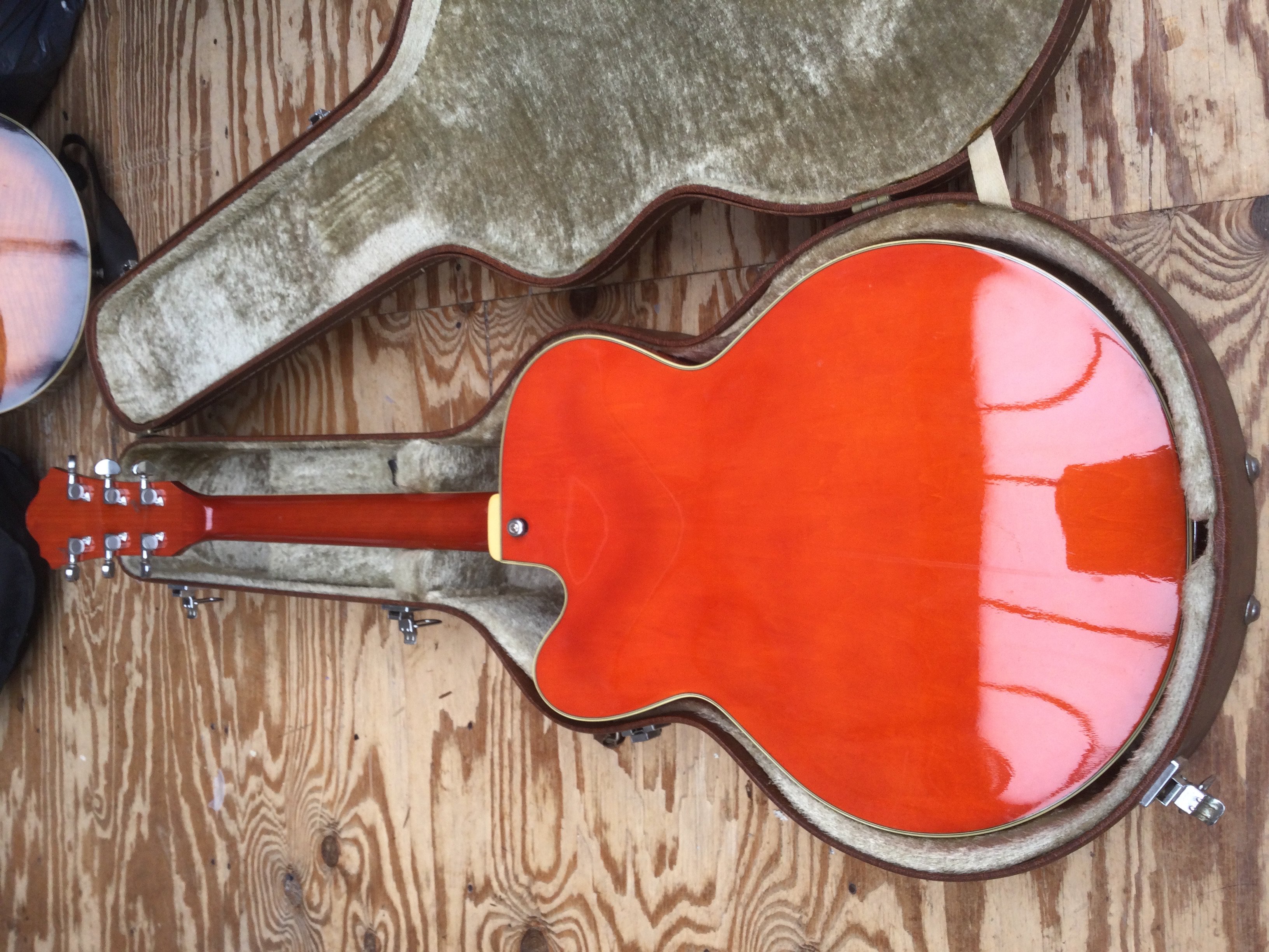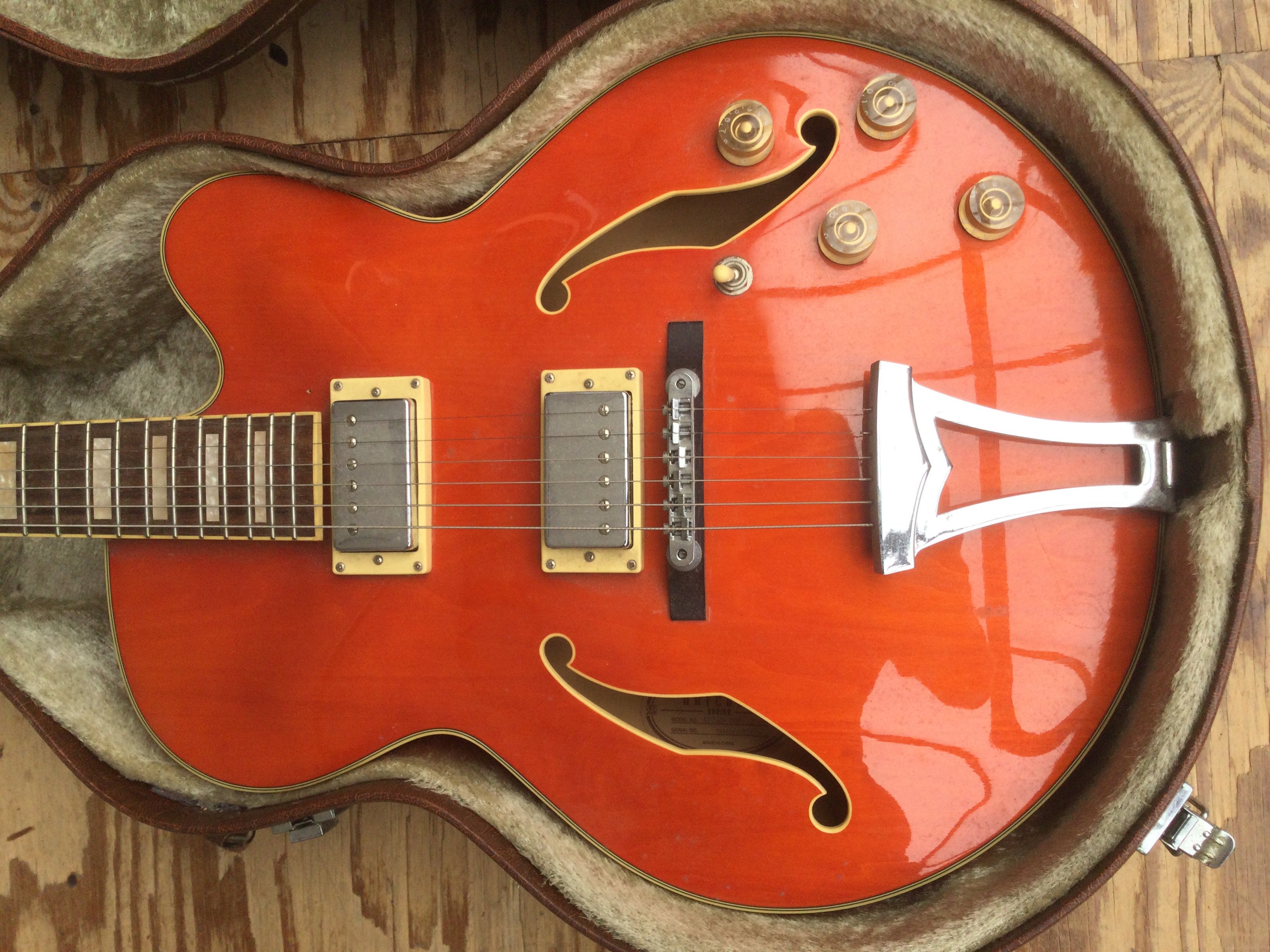 An Ibanez Artcore series AF75D electric guitar in orange. Comes with hard carry case.