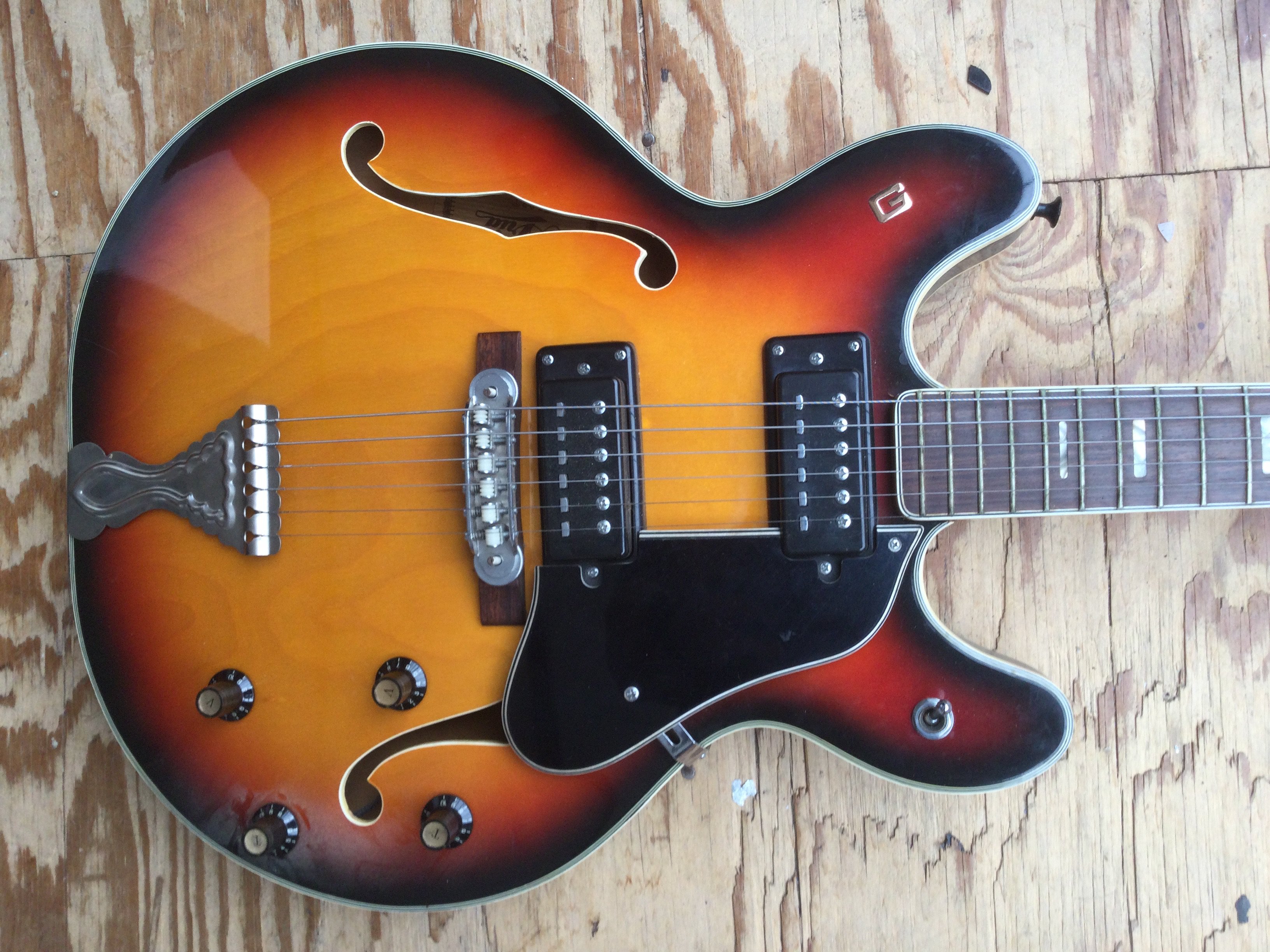 An Aria 5102T electric guitar, no case.