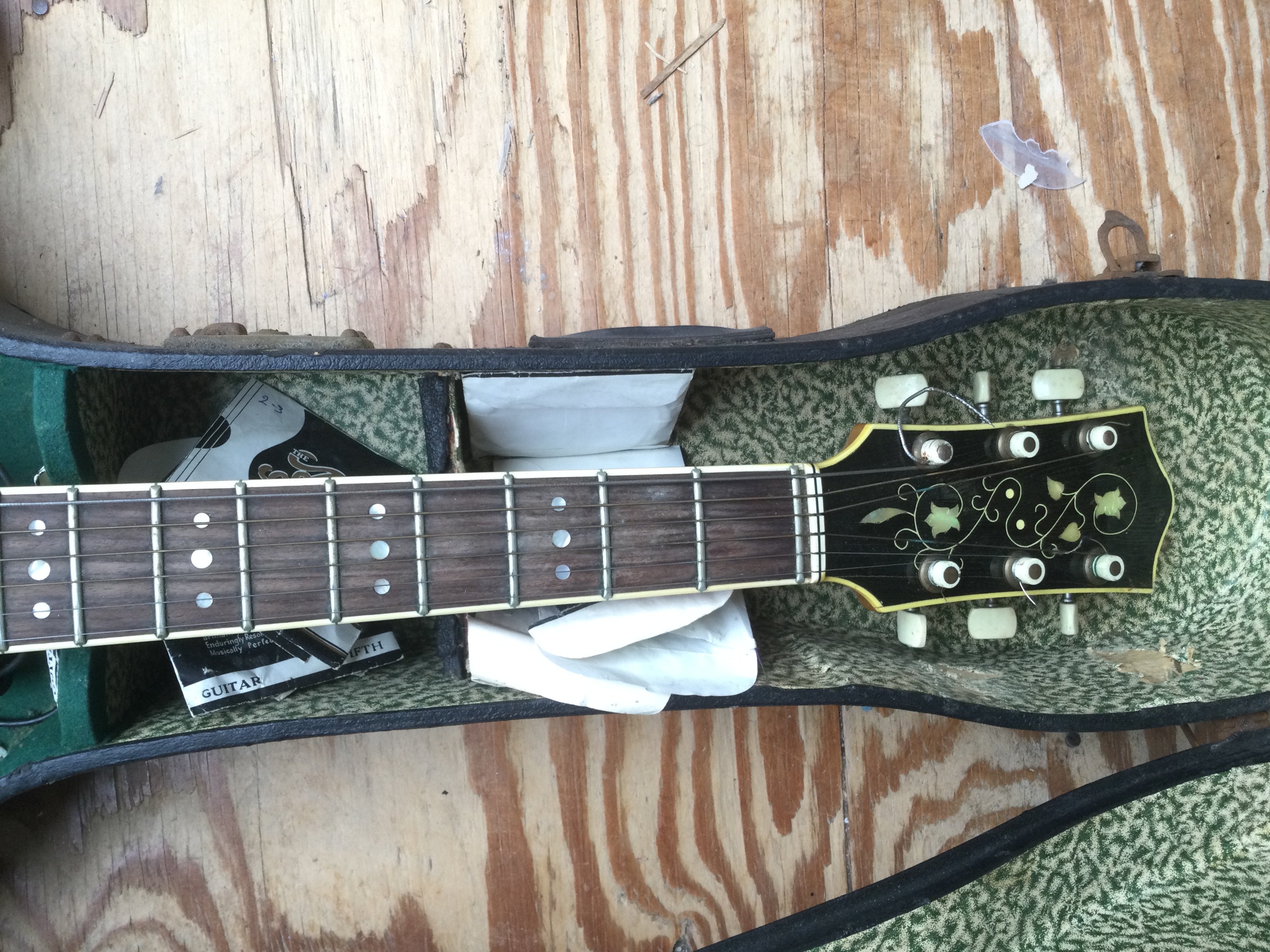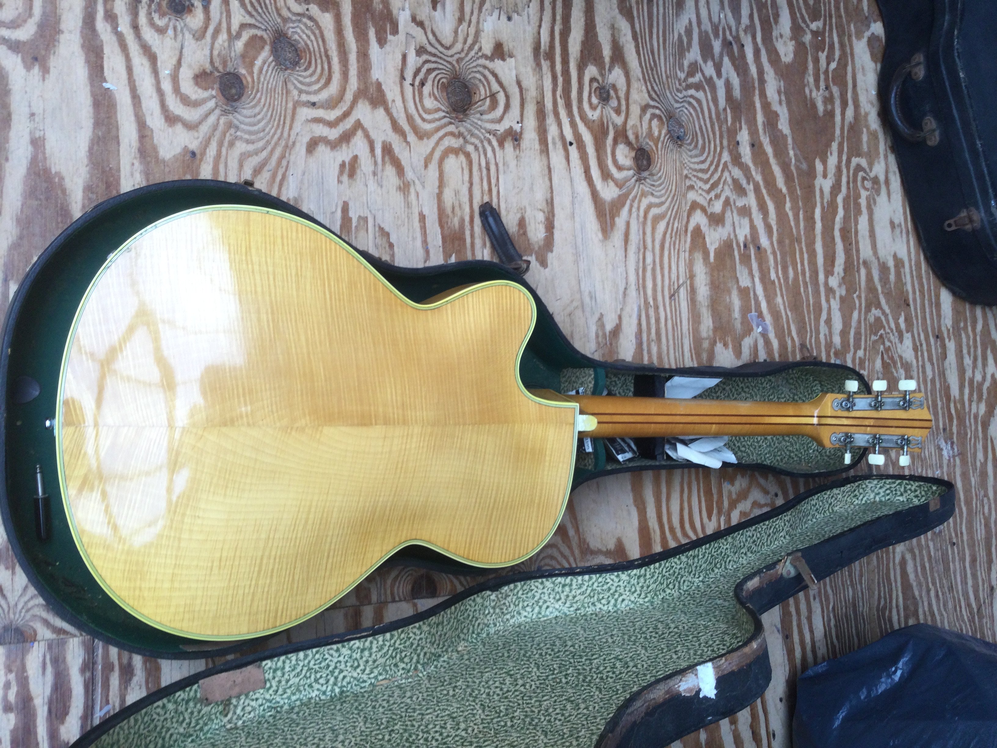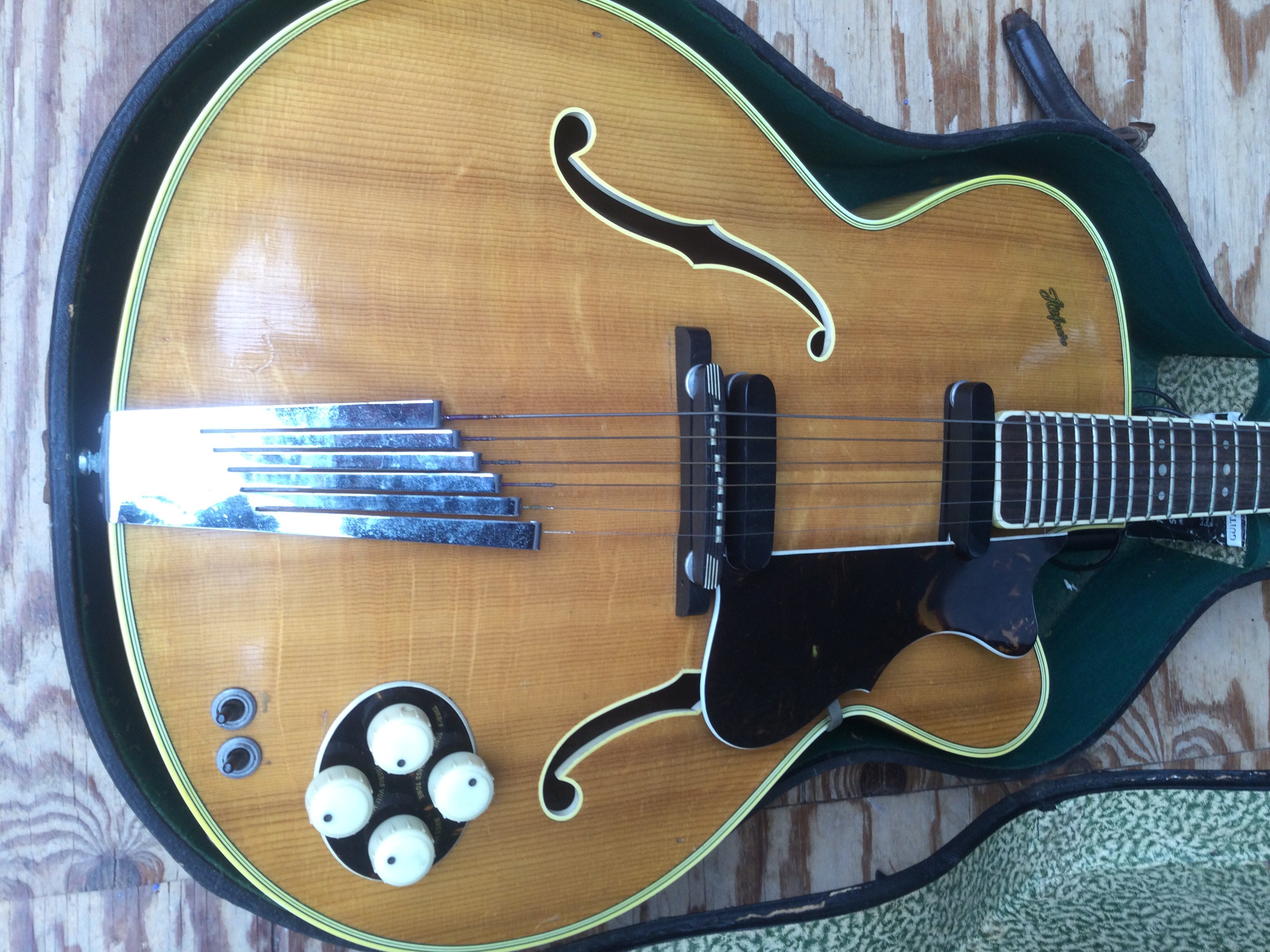A circa 1950s Hofner President 2372 archtop guitar with rare round control panel. Comes with a hard carry case.