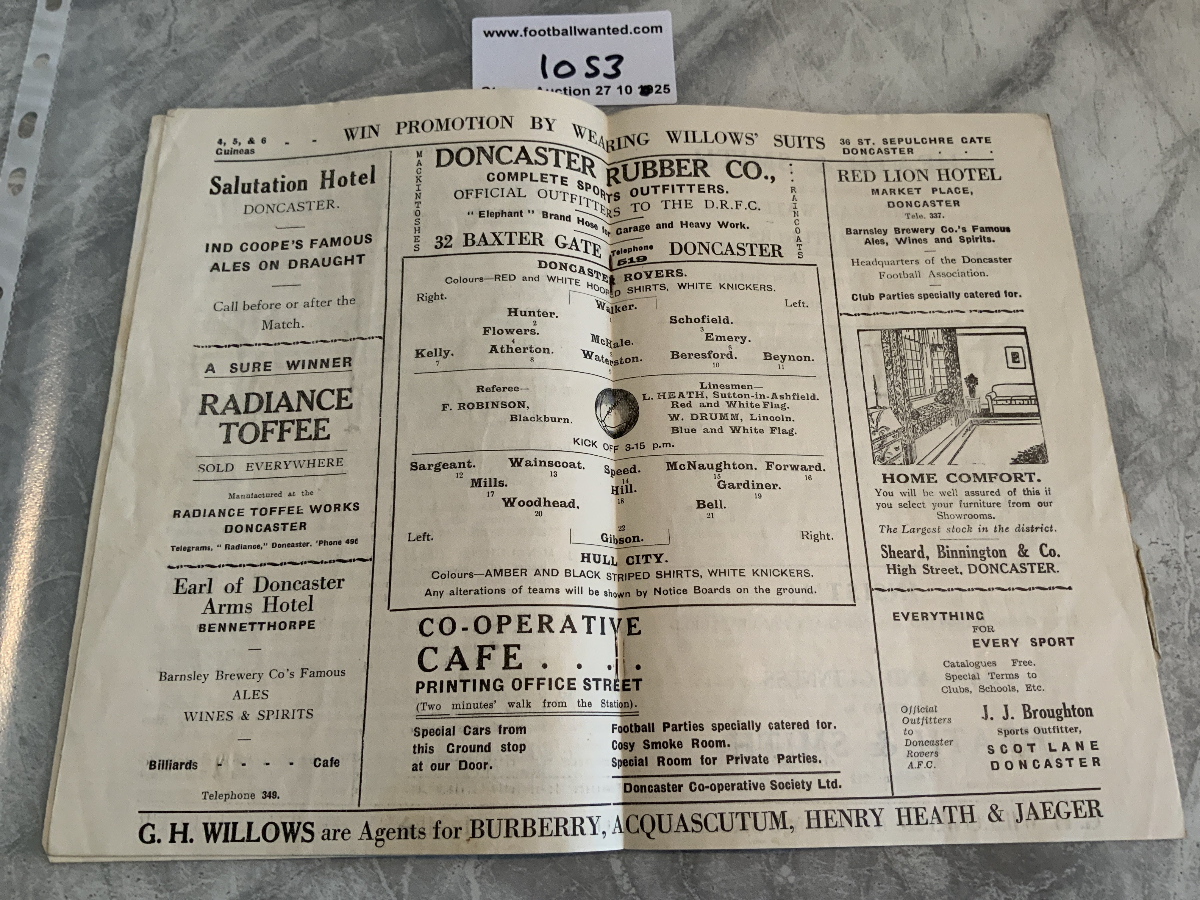 32/33 Doncaster Rovers v Hull City Football Programme: Division 3 programme in good condition with no team changes. Back page has tiny piece missing from border.
