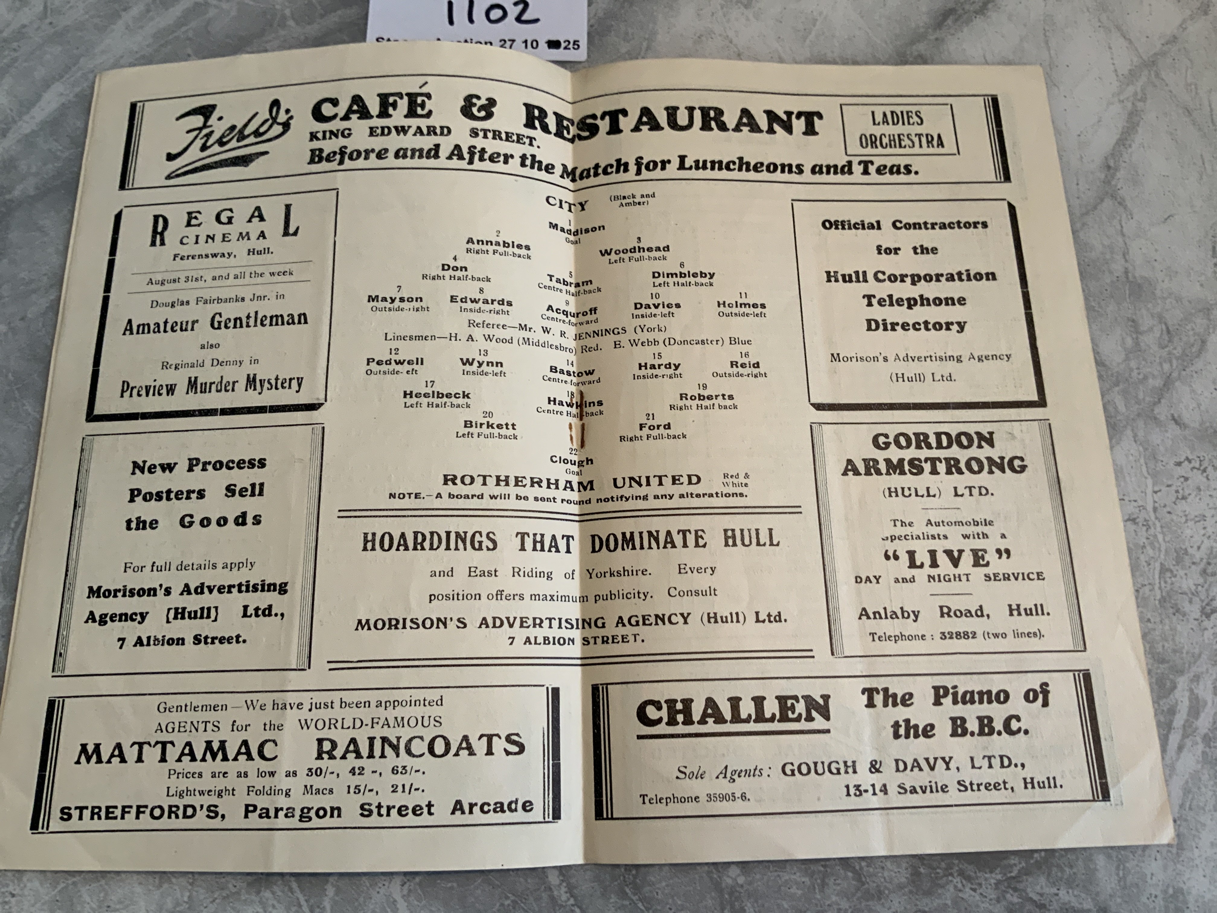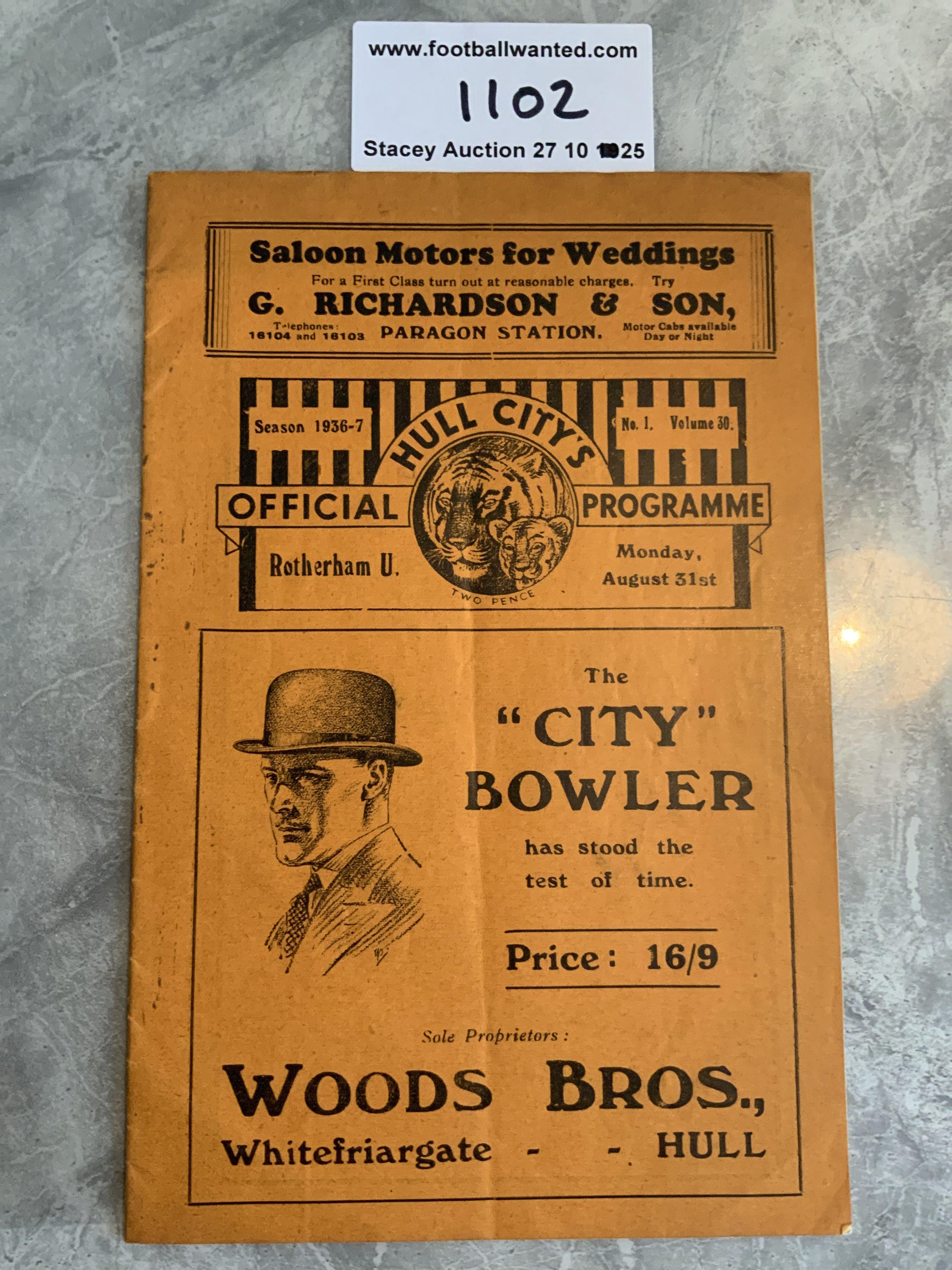 36/37 Hull City v Rotherham Football Programme: Excellent condition division 3 programme with no team changes.