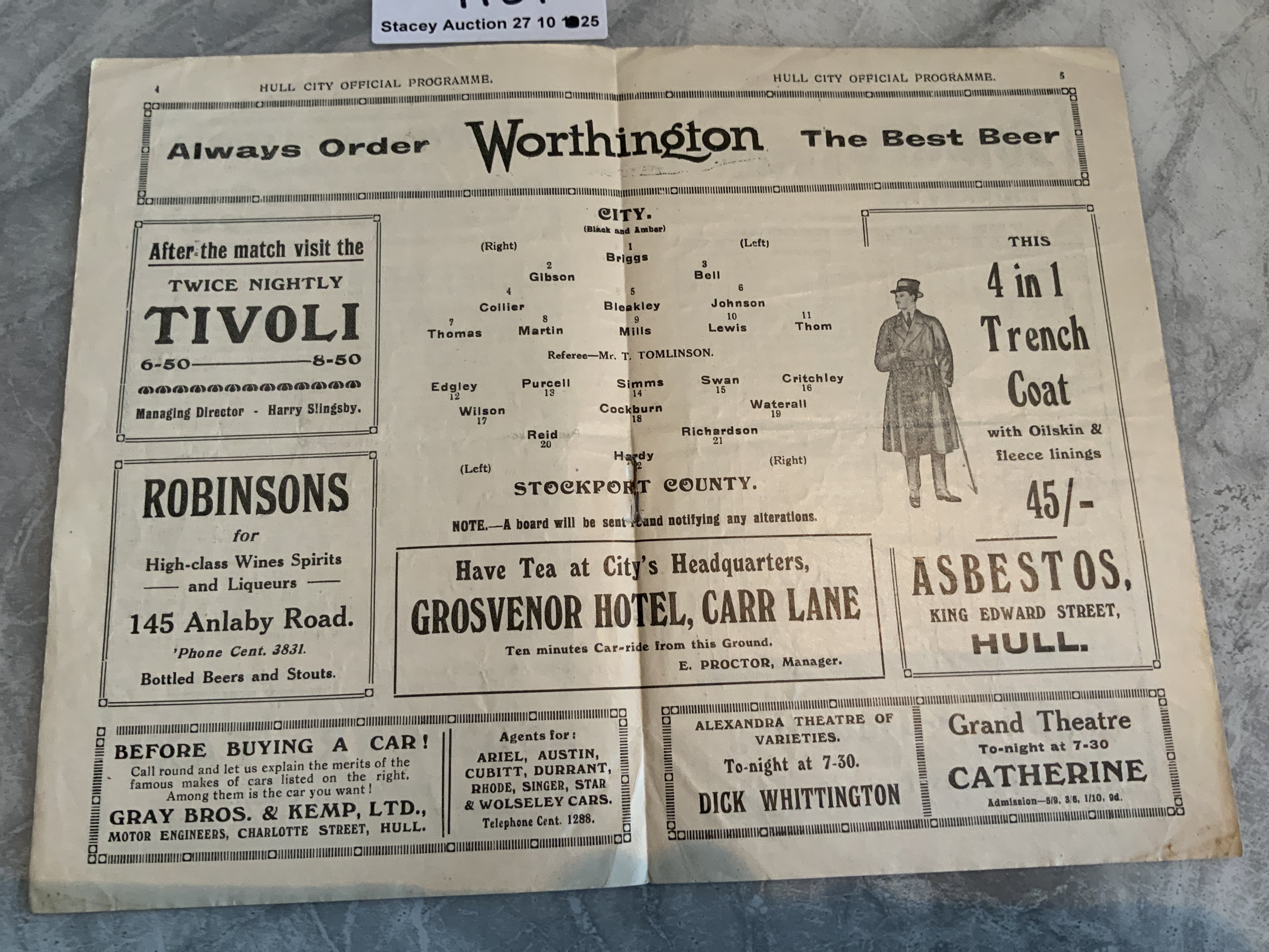 1923 - 1924 Hull City v Stockport County Football Programme: Excellent condition first team programme with no team changes.