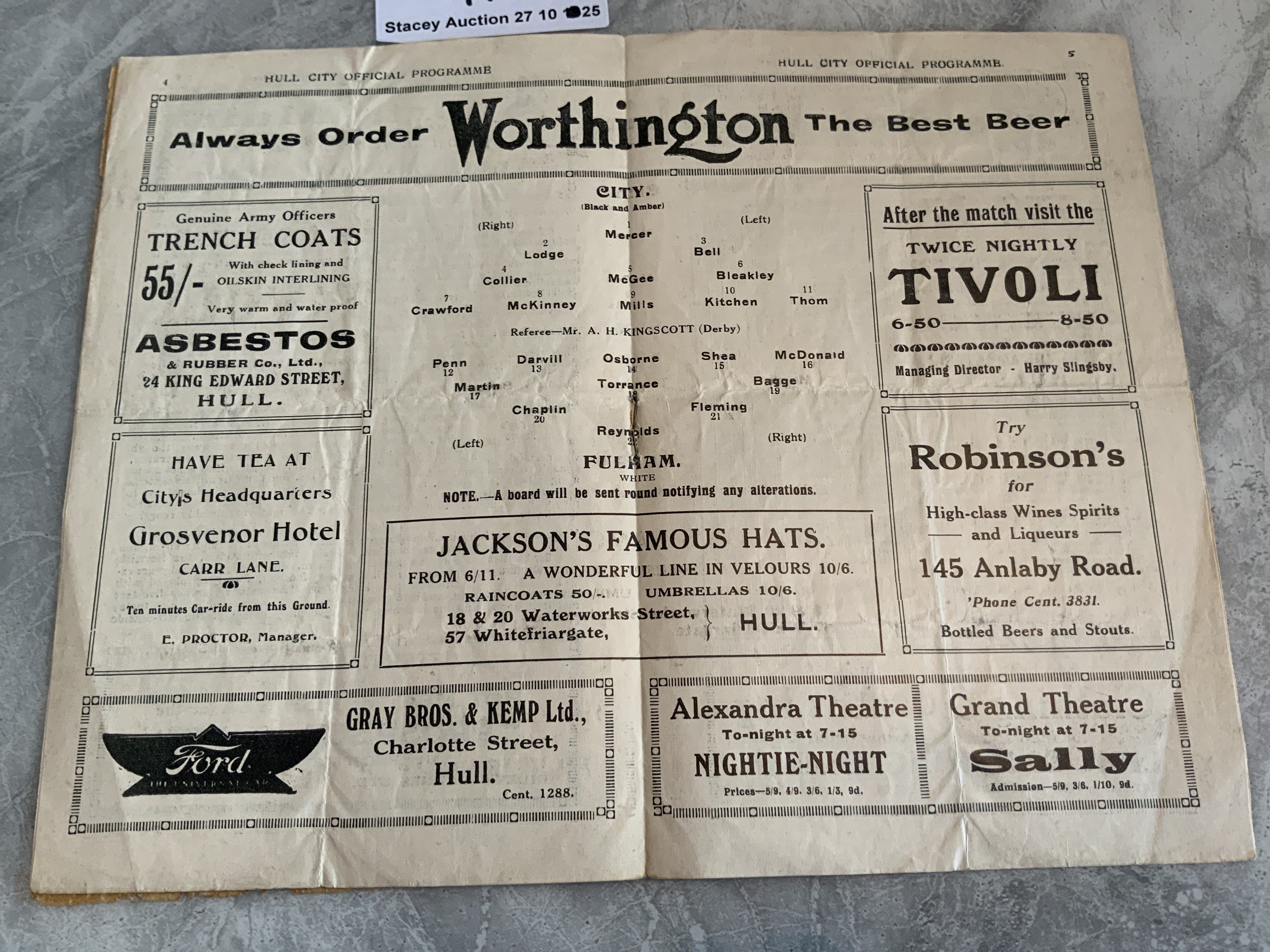 1922 - 1923 Hull City v Fulham Football Programme: Good condition first team programme with no team changes. Slight wear.
