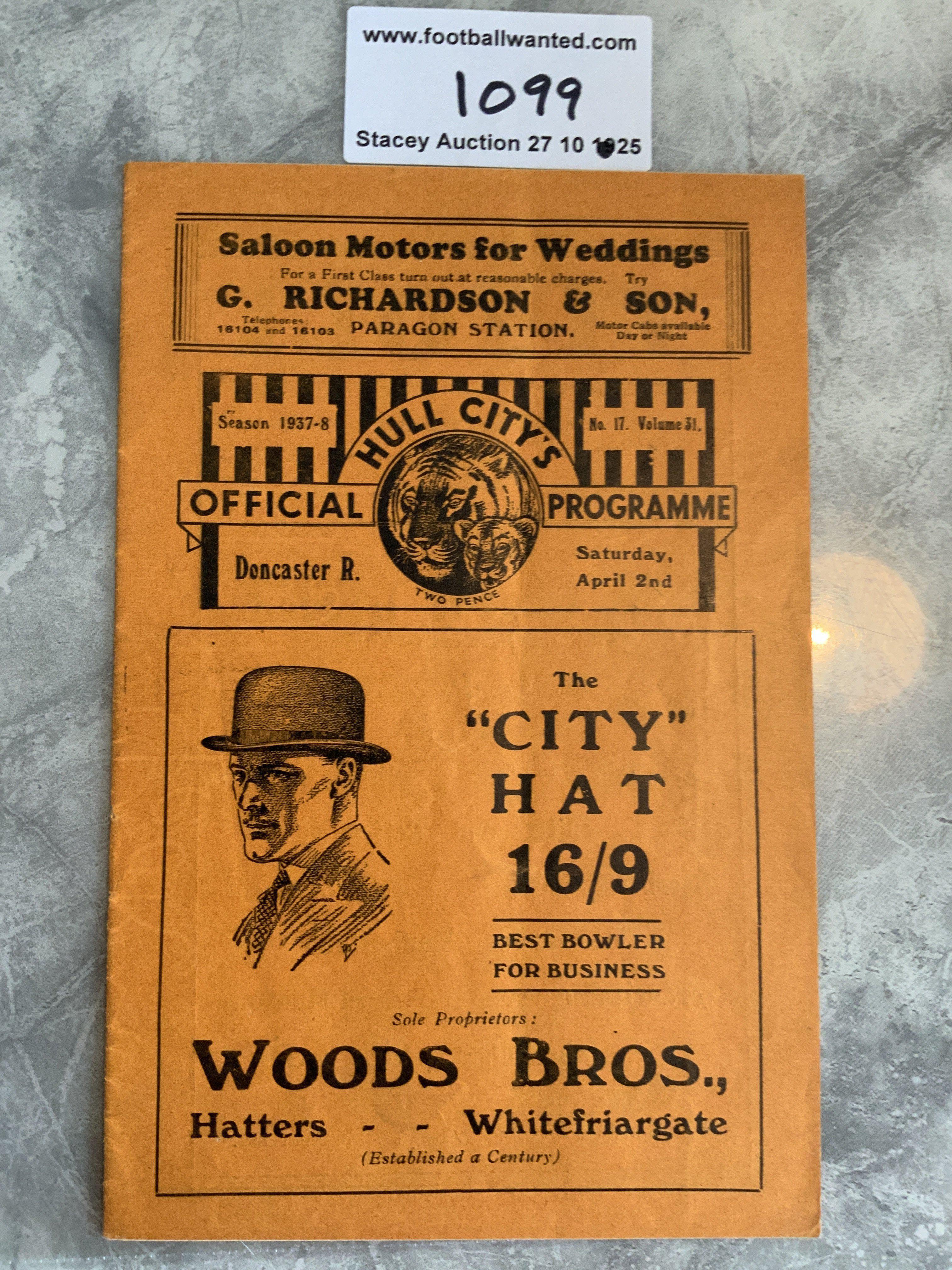 37/38 Hull City v Doncaster Rovers Football Programme: Excellent condition first team programme with no team changes.