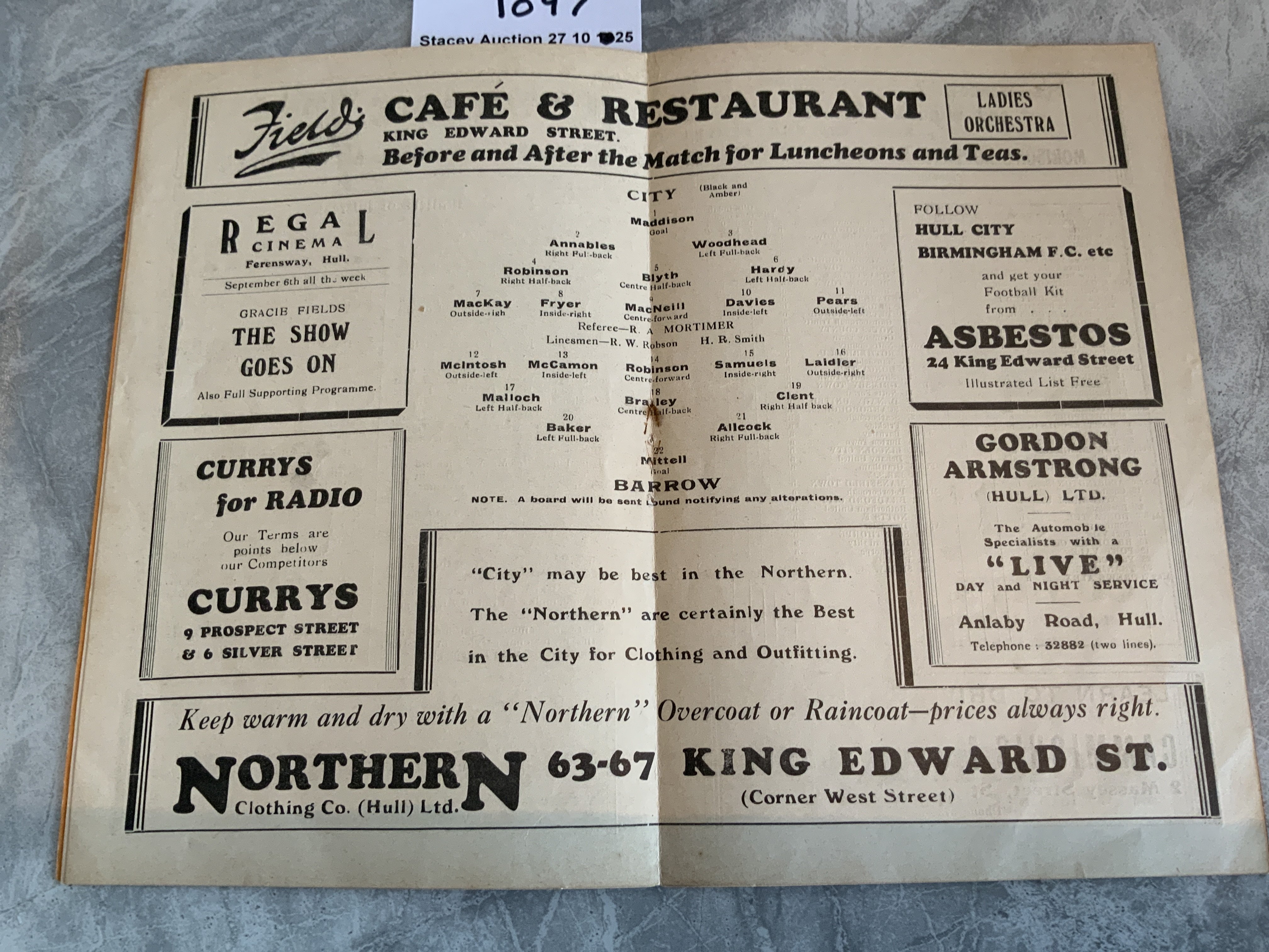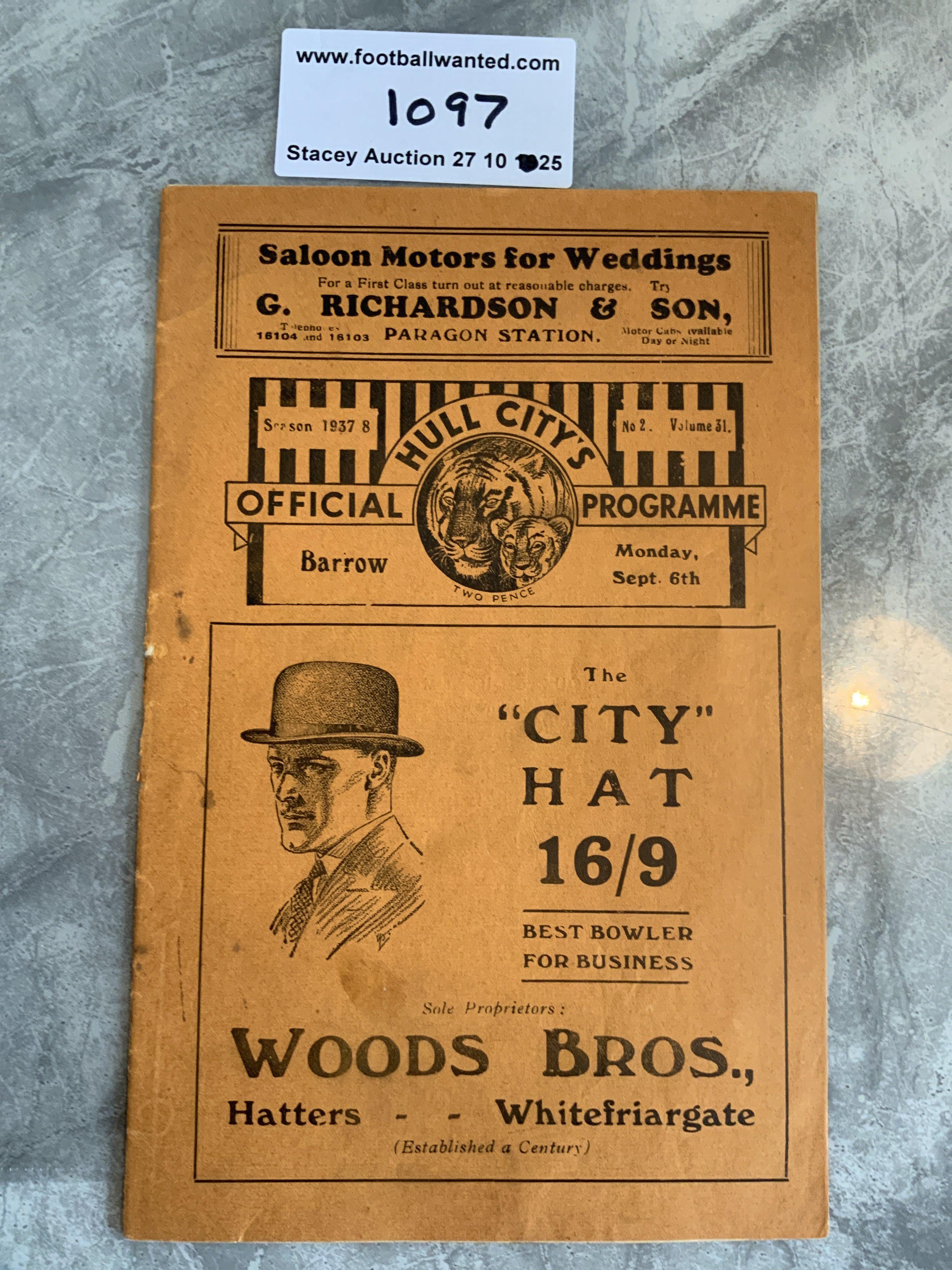 37/38 Hull City v Barrow Football Programme: Excellent condition first team programme with no team changes. Staple removed not rotted away.