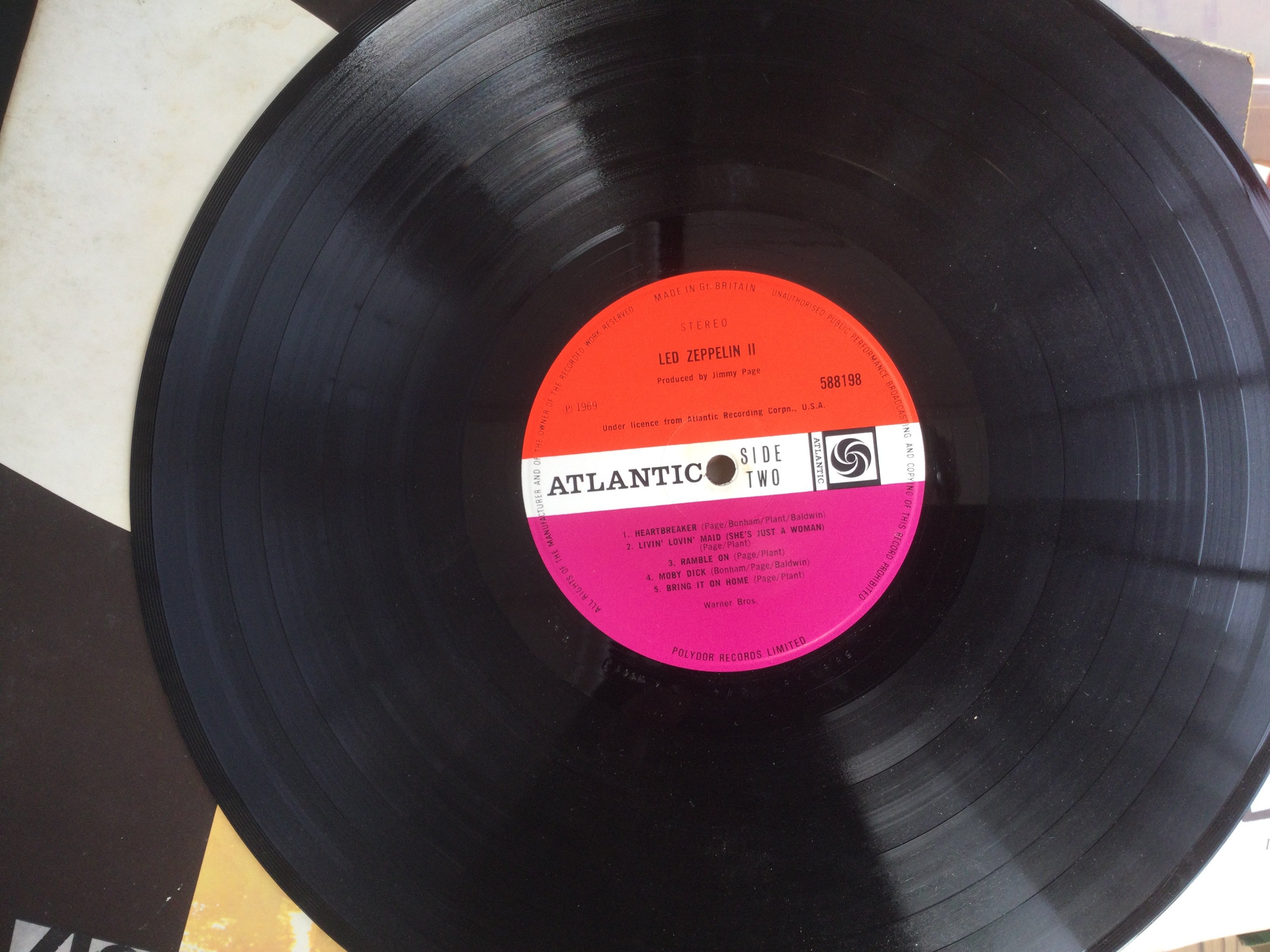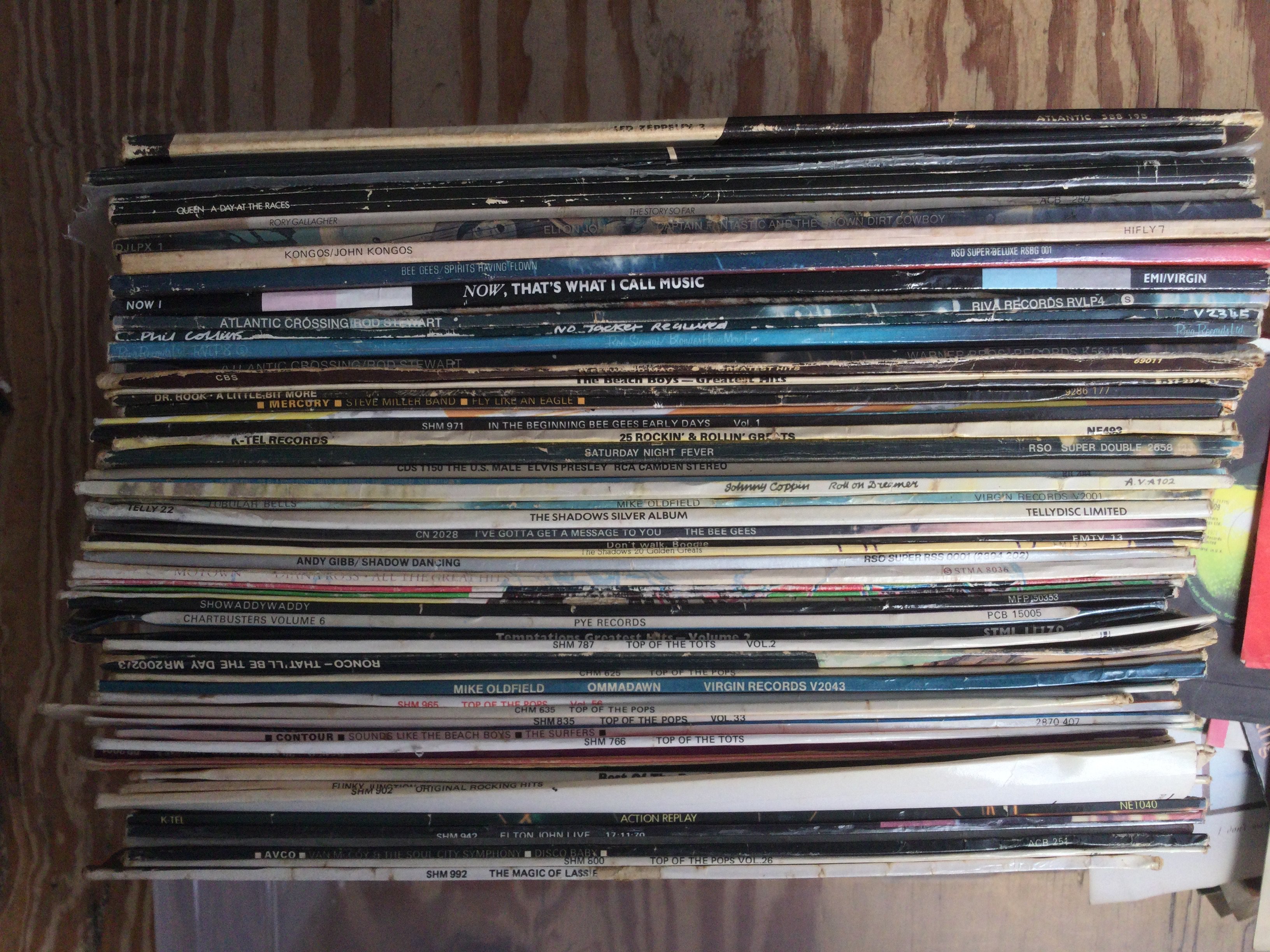 A box of LPs and 7" singles by various artists including Led Zeppelin, Pink Floyd, Queen and many more.