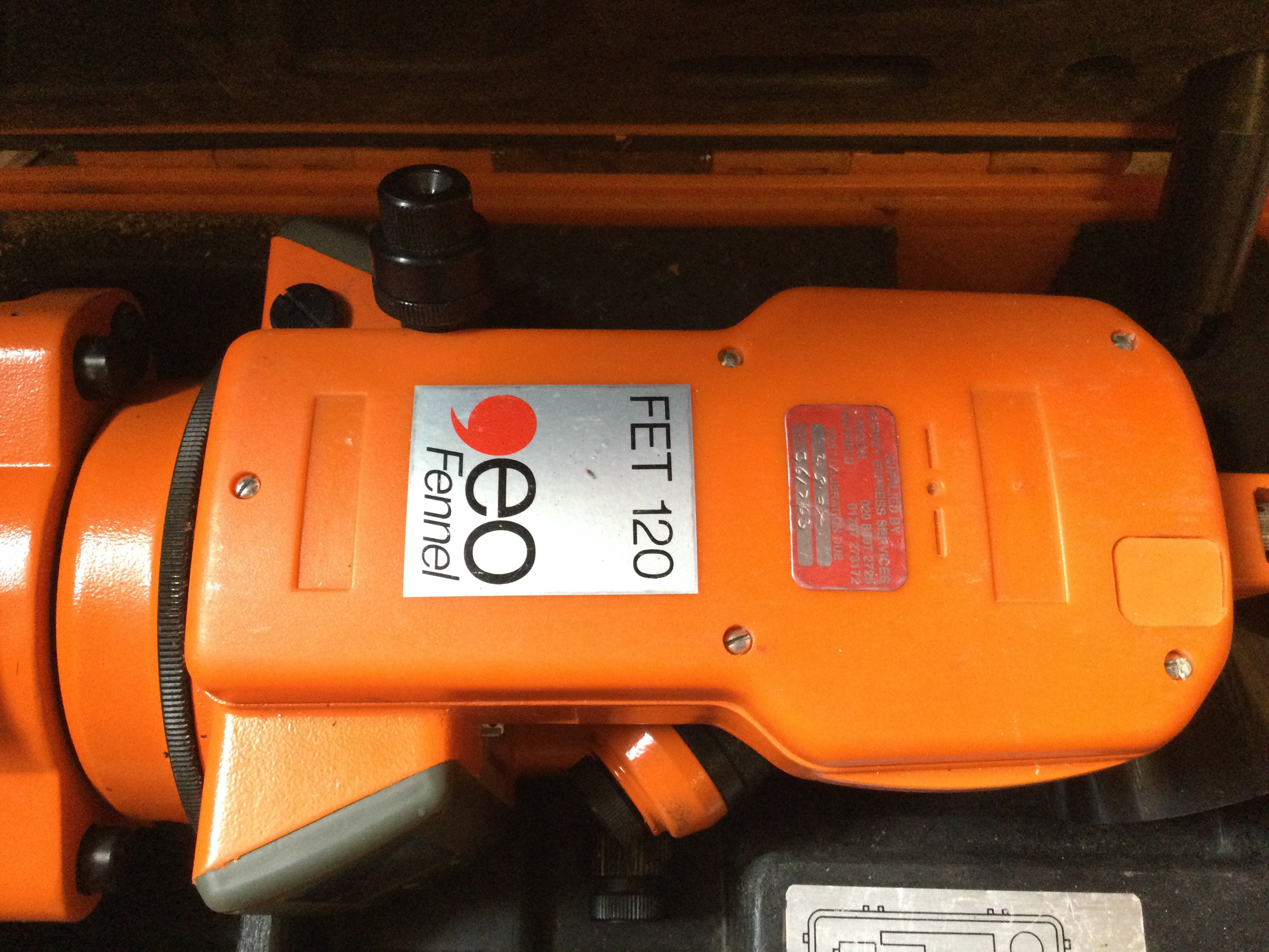 A Geo Fennel FET Theodolite with carry case and stand. Items sold in situ. Viewing on location in Woodham Mortimer by appointment contact office to arrange.