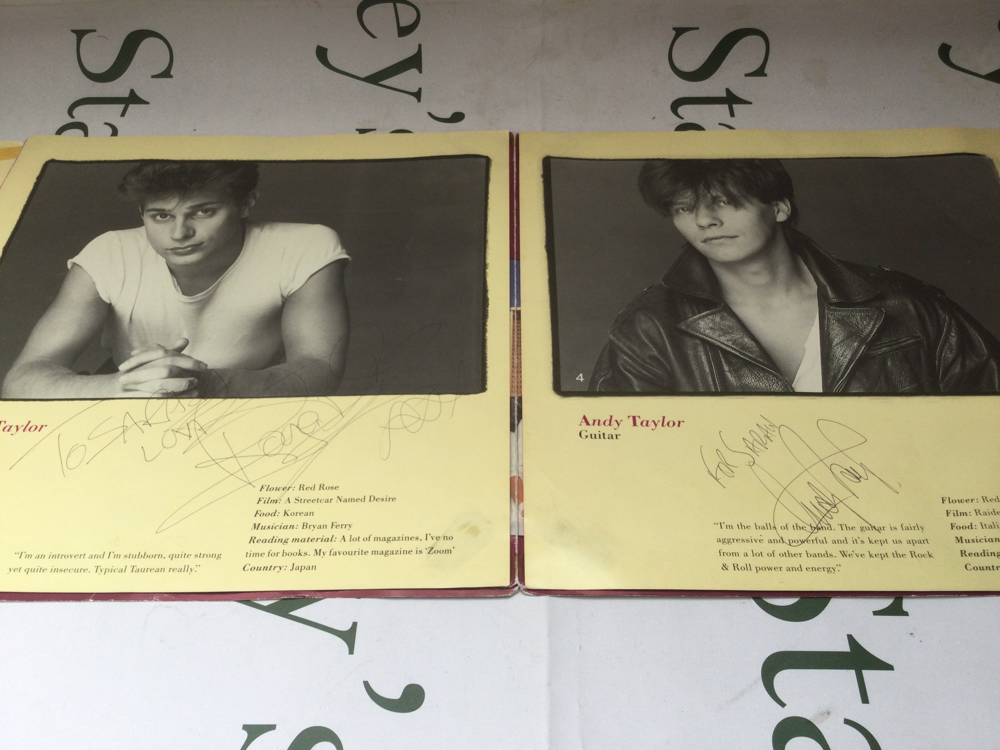 A fully signed Duran Duran 1982 world tour brochure. This was acquired by the vendor through a friend working as a roadie for Duran Duran's support act Le Mat.