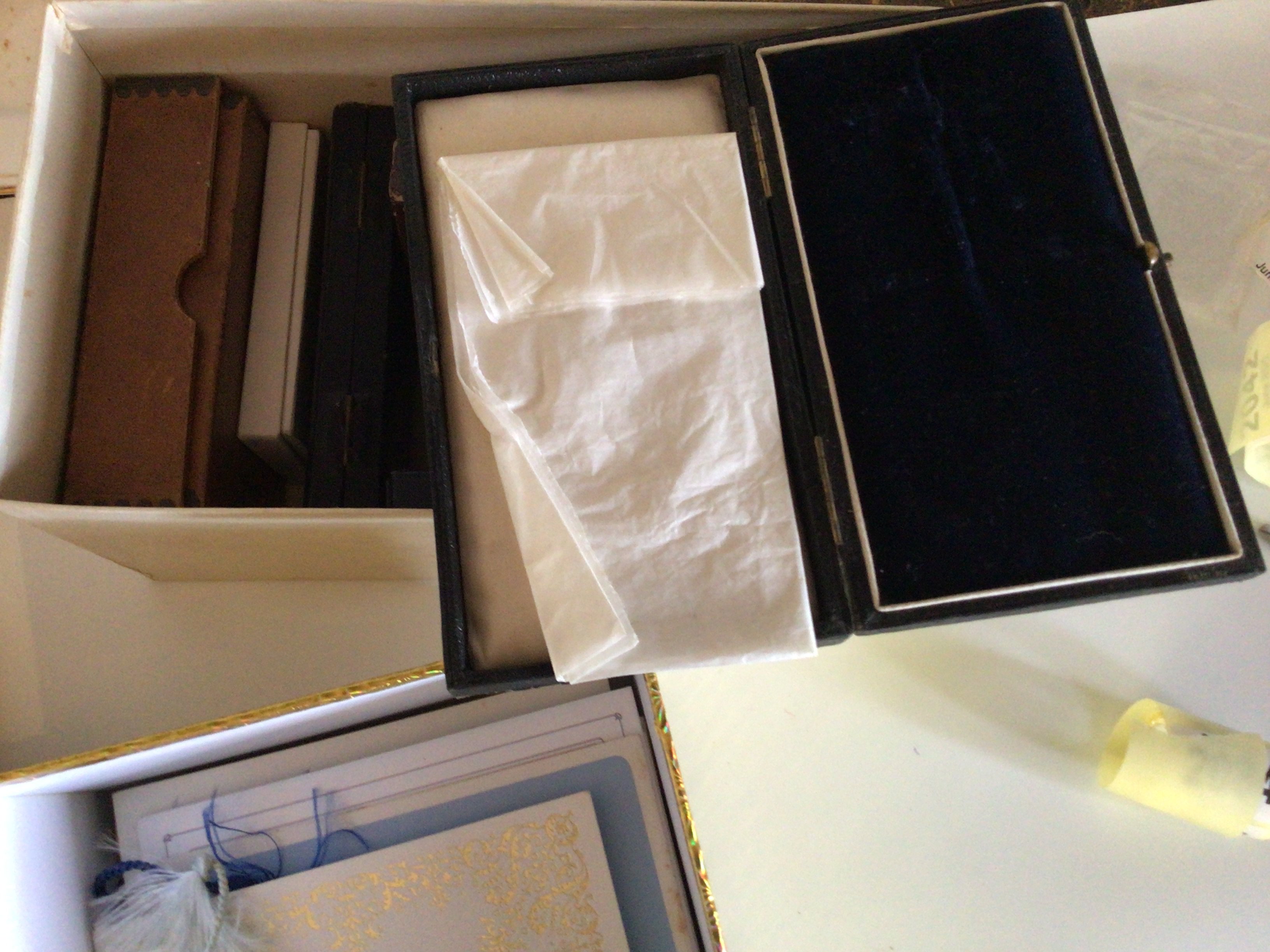 A collection of boxes for Masonic jewels empty boxes and a quantity of Masonic Ladies Festival cards.- NO RESERVE