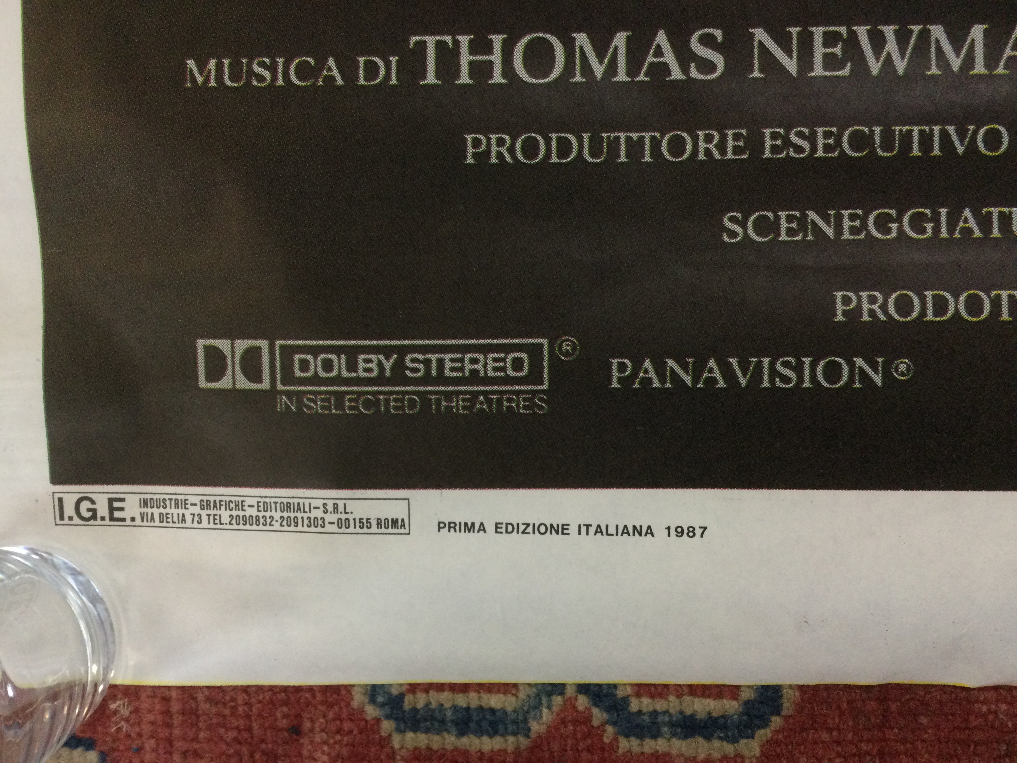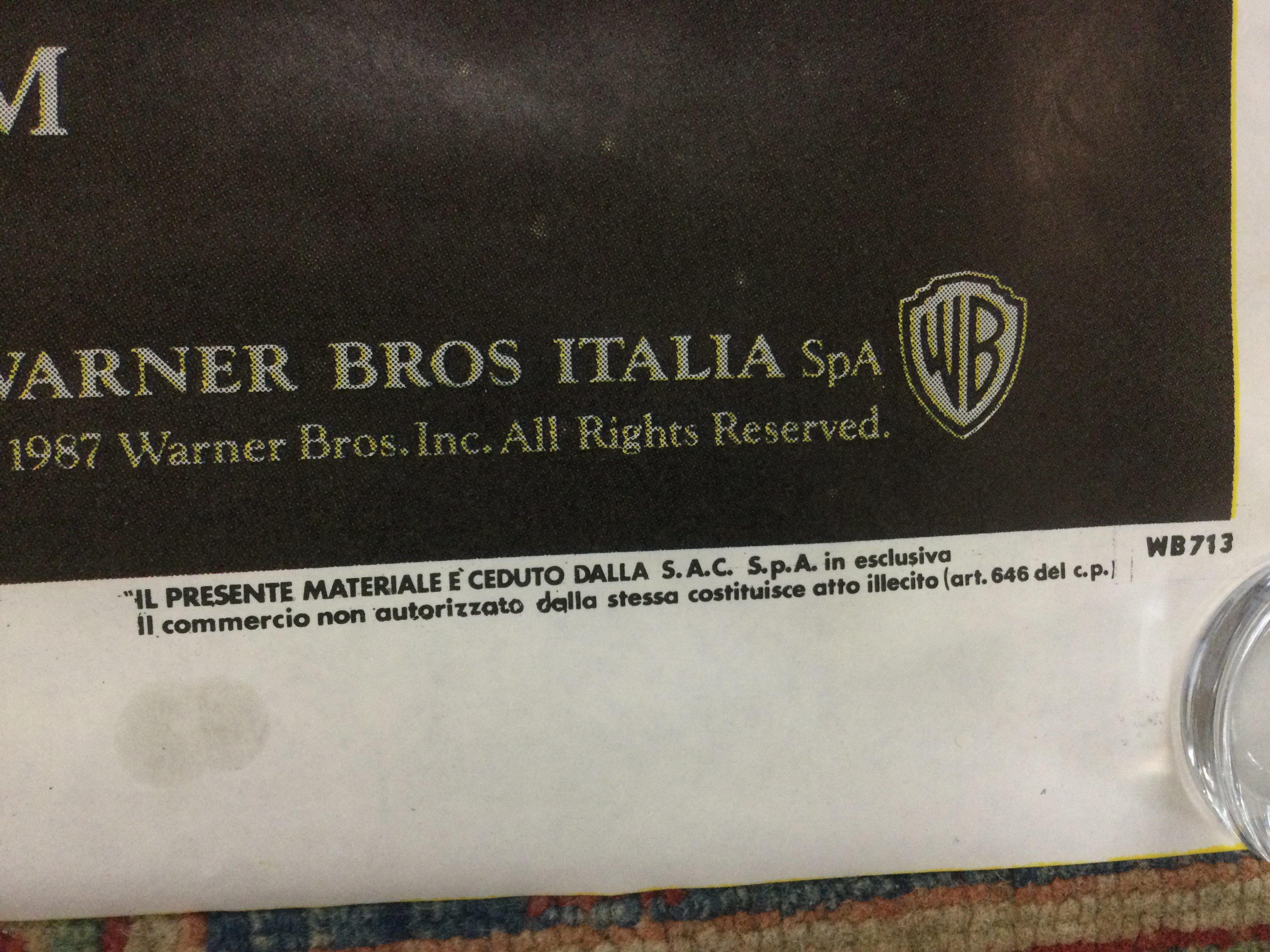 An Italian film poster for The Lost Boys, rolled. Approx 140cm x 100cm.