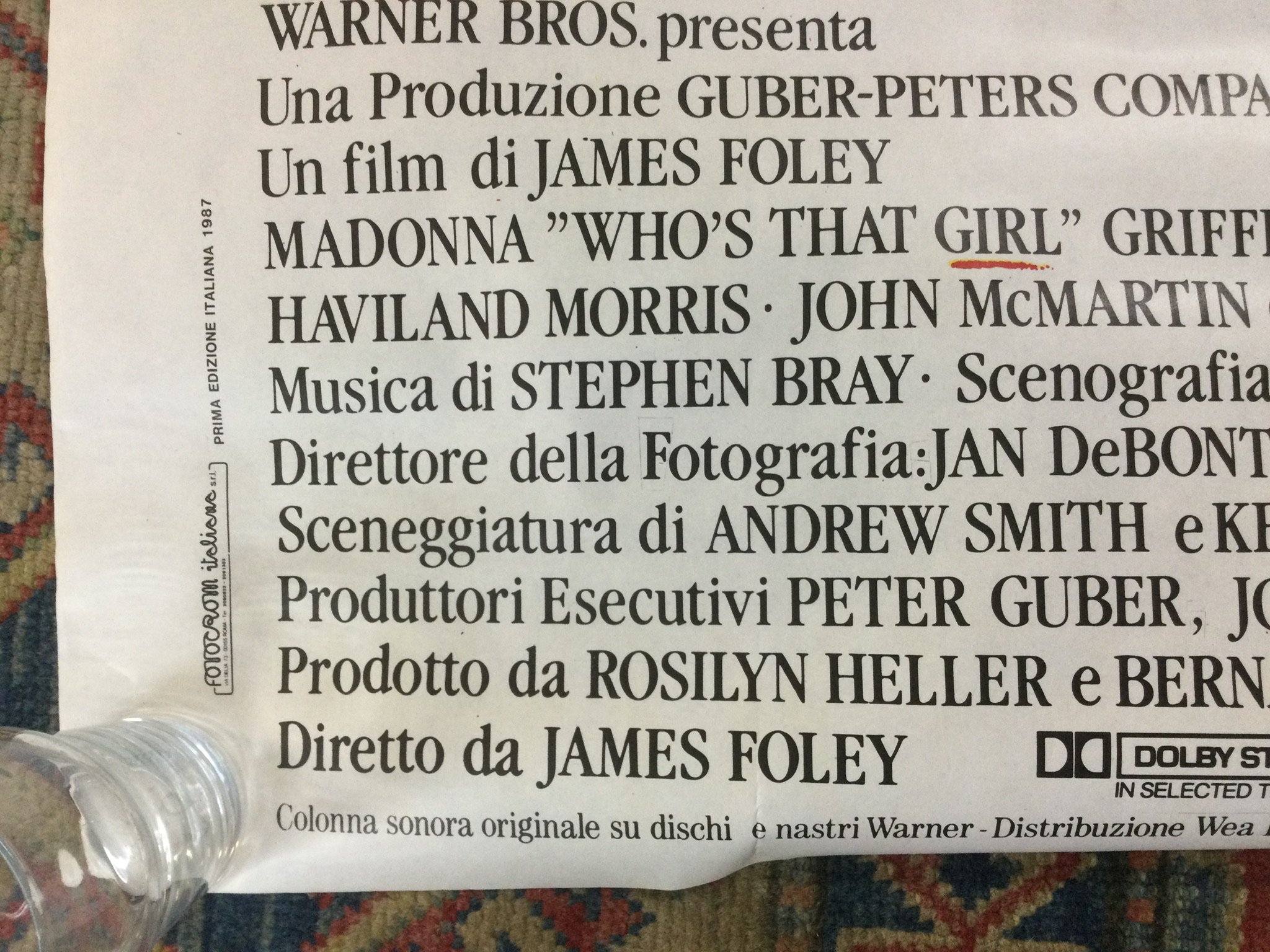 An Italian film poster for Who's That Girl?, rolled. Approx 140cm x 100cm.