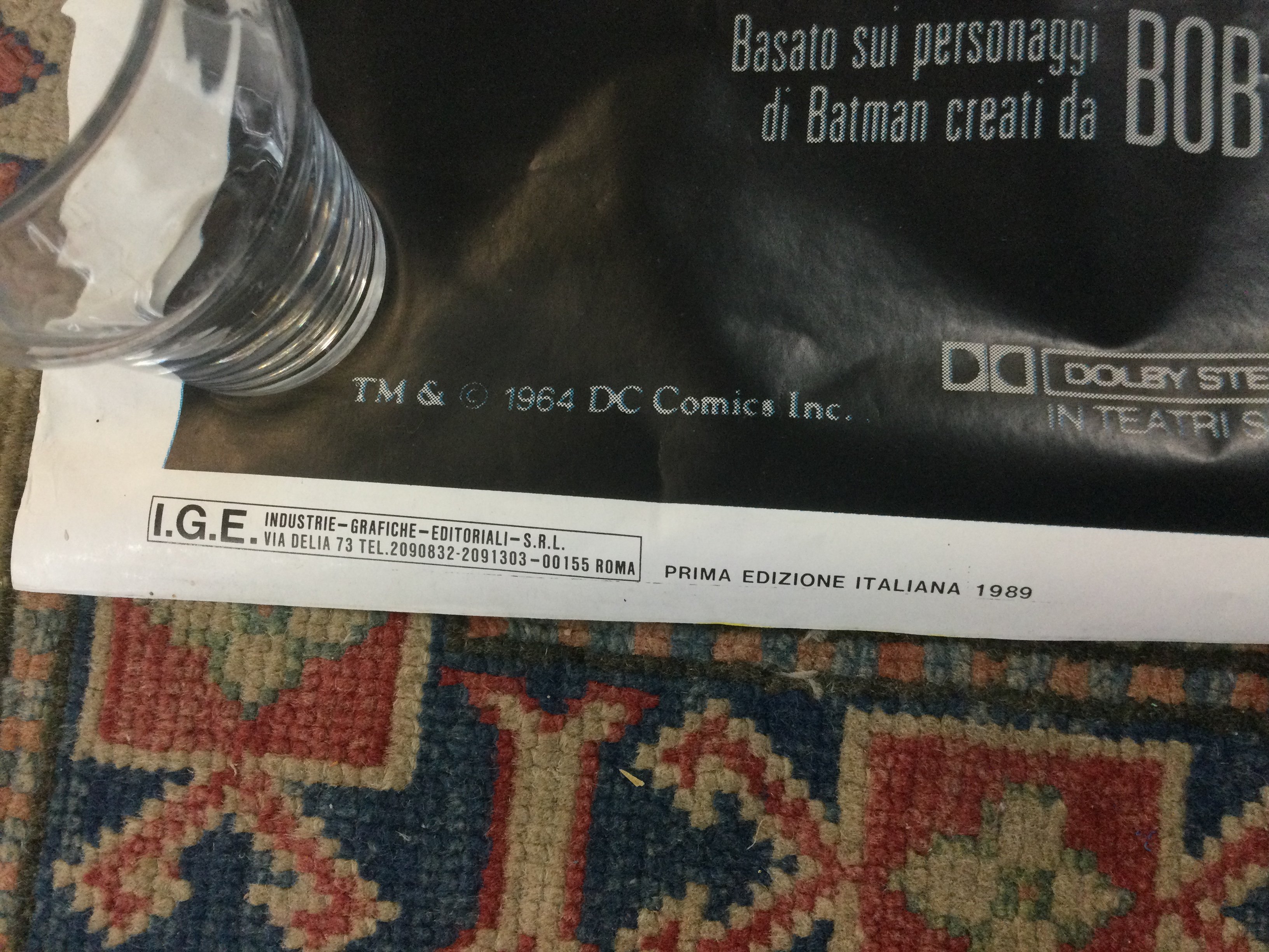 An Italian film poster for the 1989 Batman movie, rolled. Approx 140cm x 100cm.