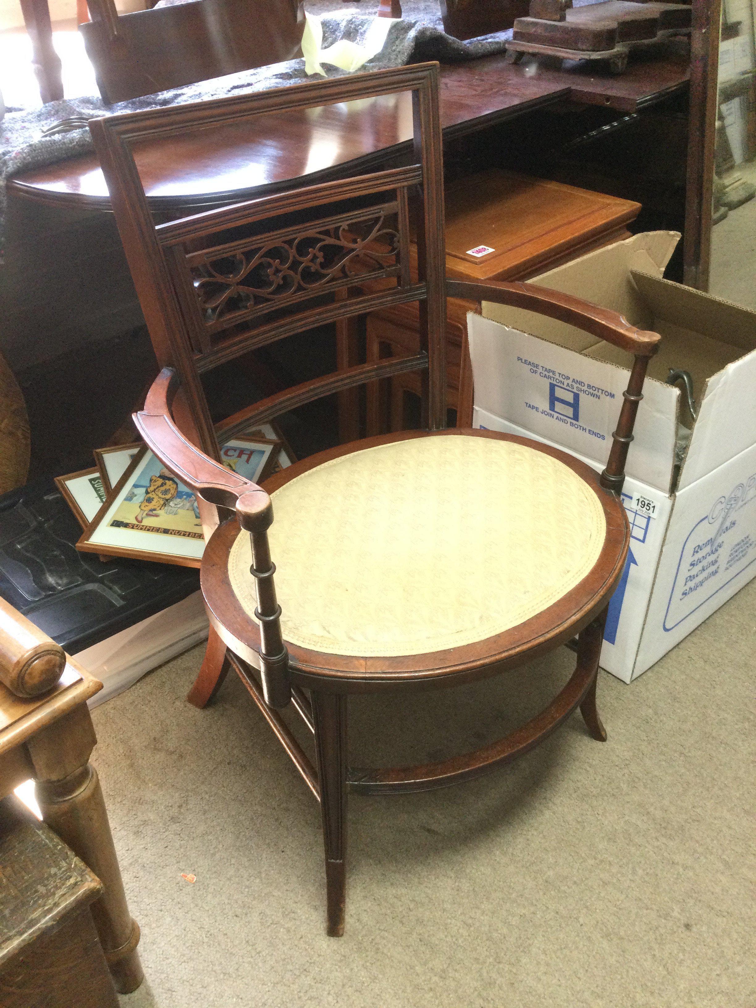A ladies chair with carved back and upholstered seat. This chair was part of a collection from Cheltenham ladies college. Shipping category D.- NO RESERVE