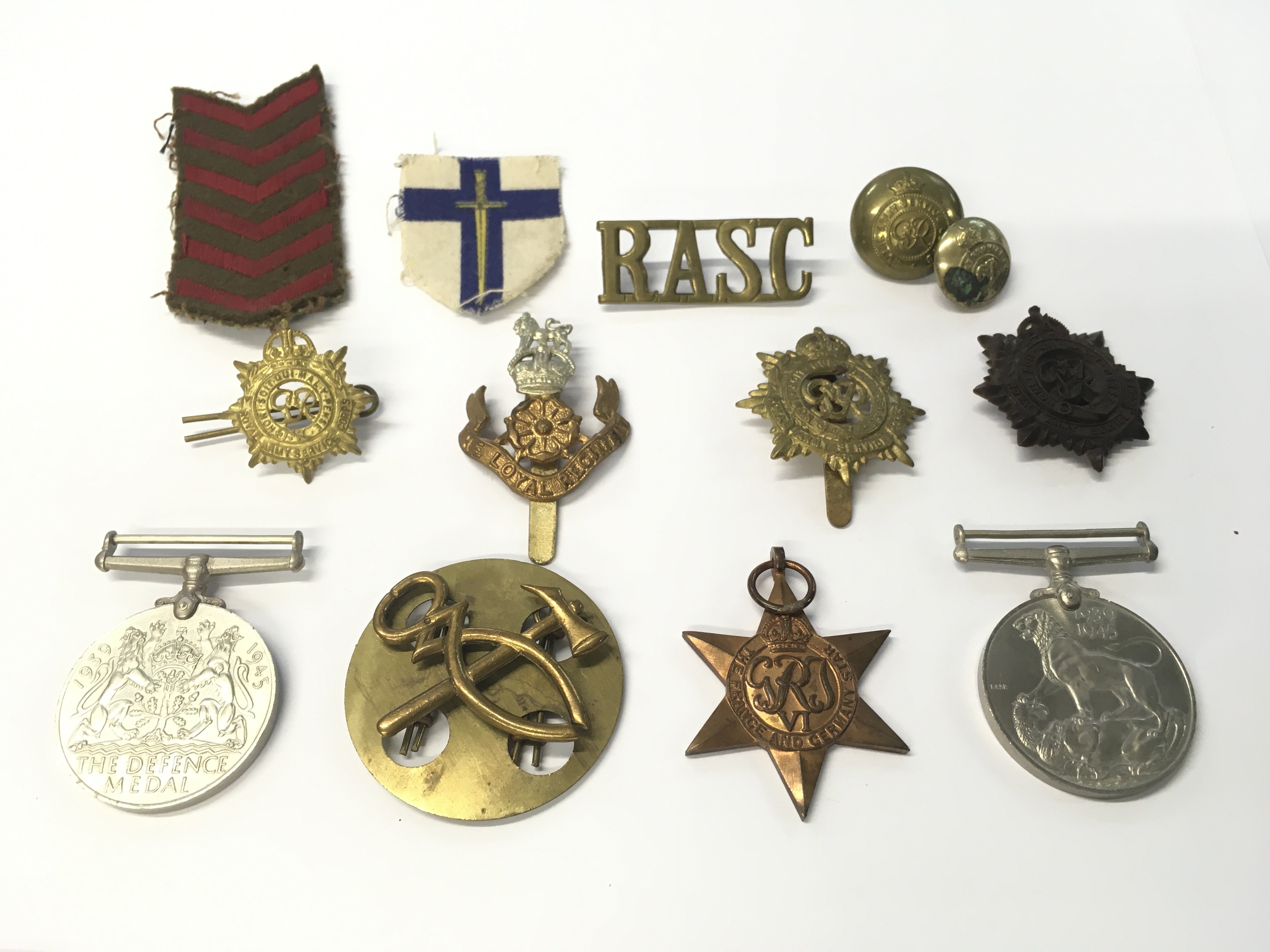 A boxed collection of a variety of World War Two badges, medals and buttons.- NO RESERVE