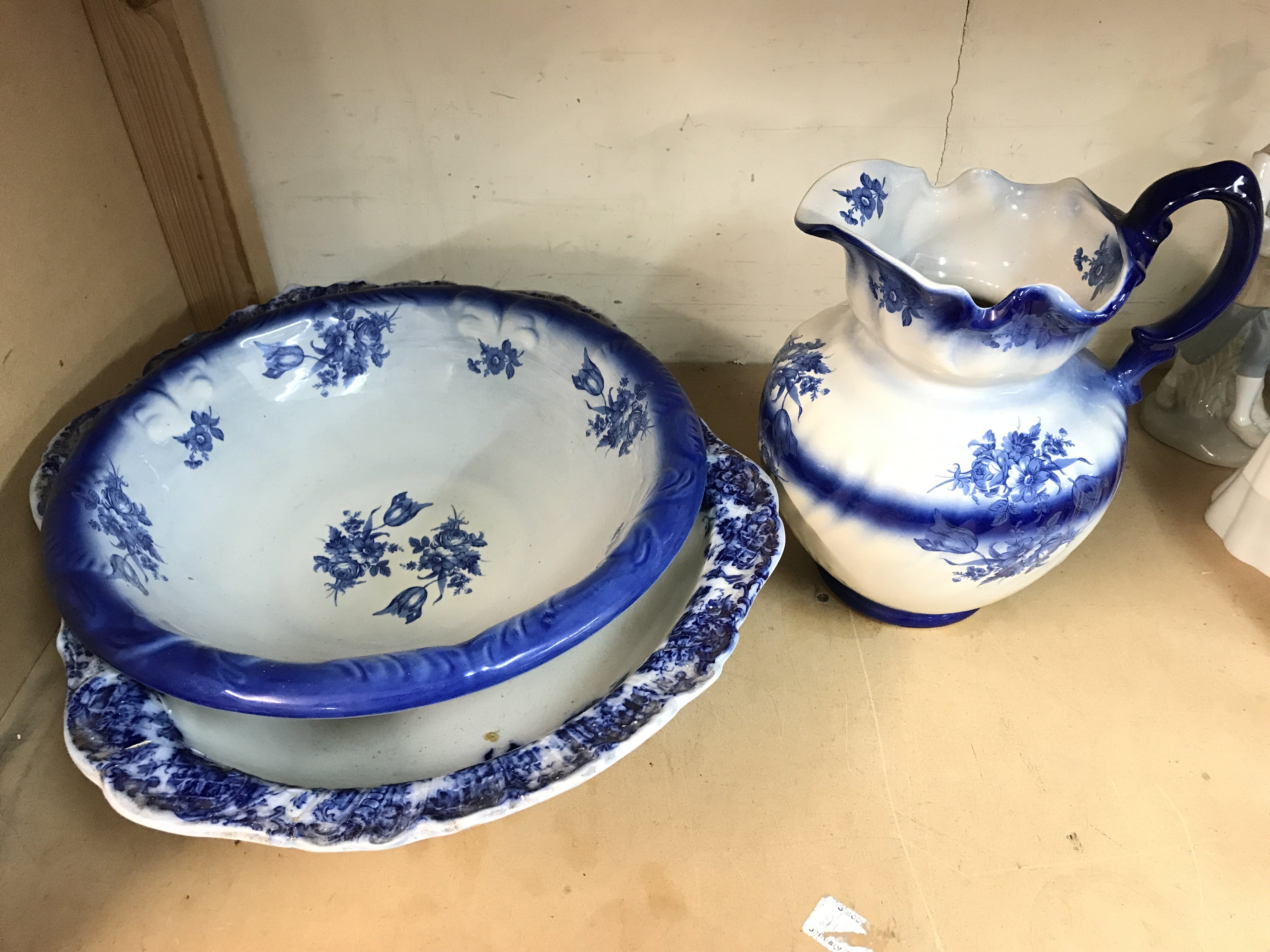 Early 20th century blue and white dishes and jug. No reserve. This lot cannot be posted