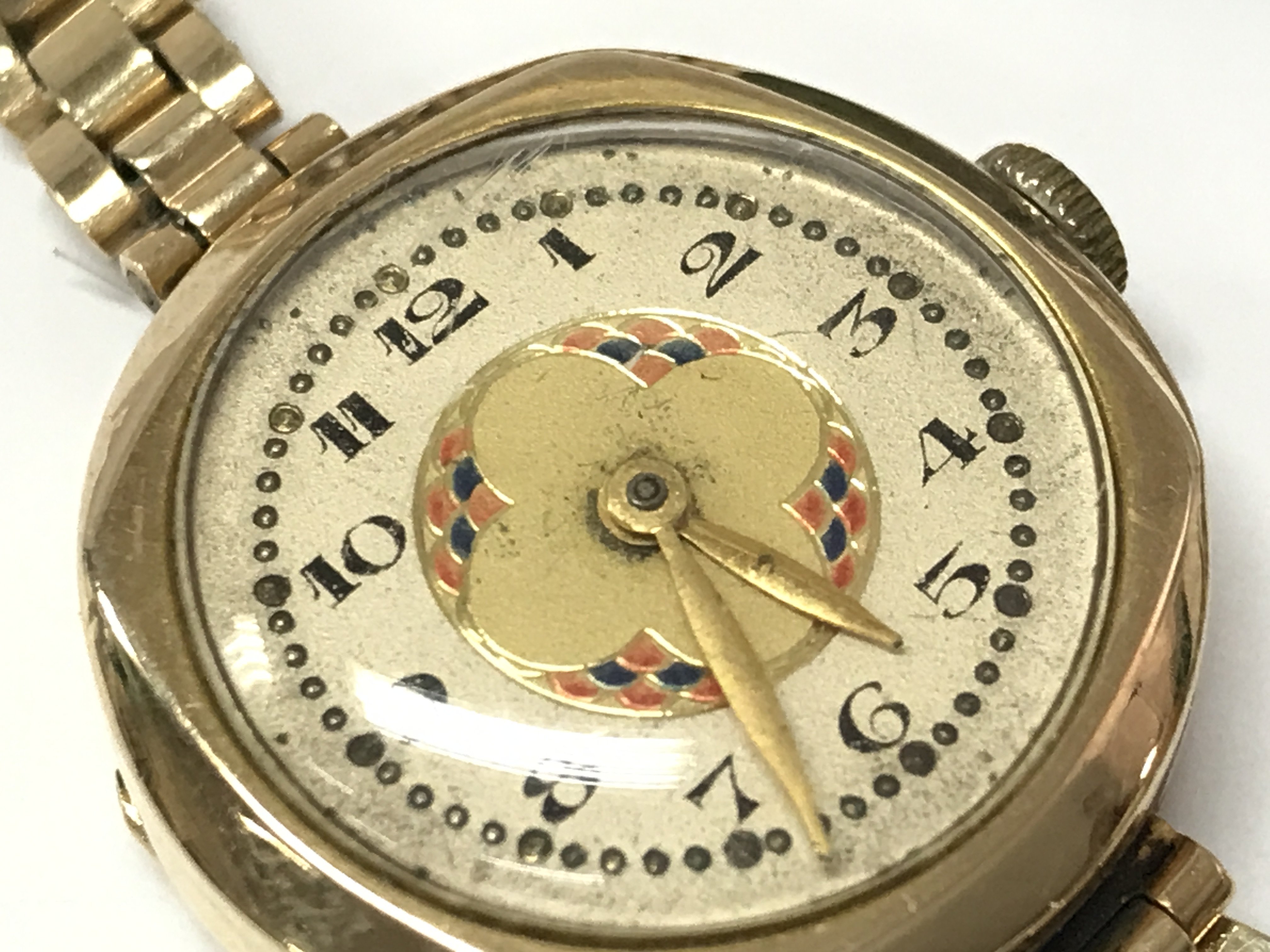 A 9ct gold cased watch and rolled gold strap , 21.2g total weight. Postage category A