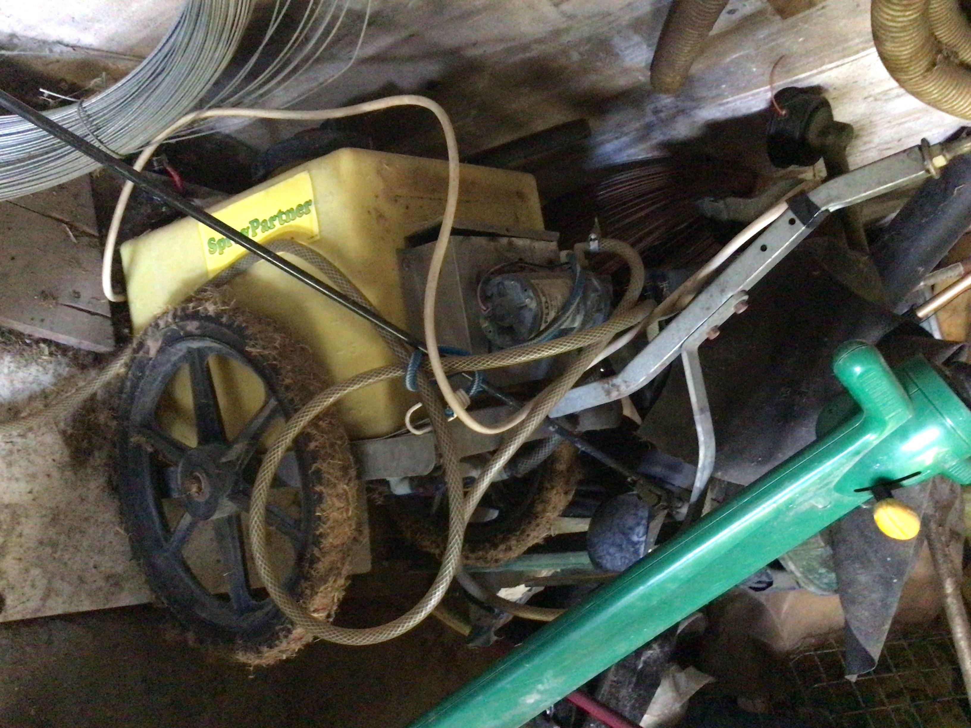 A large garden leisurebattery operated electric garden sprayer 50L capacity tank with attached hose and one other conforming sprayer (2)