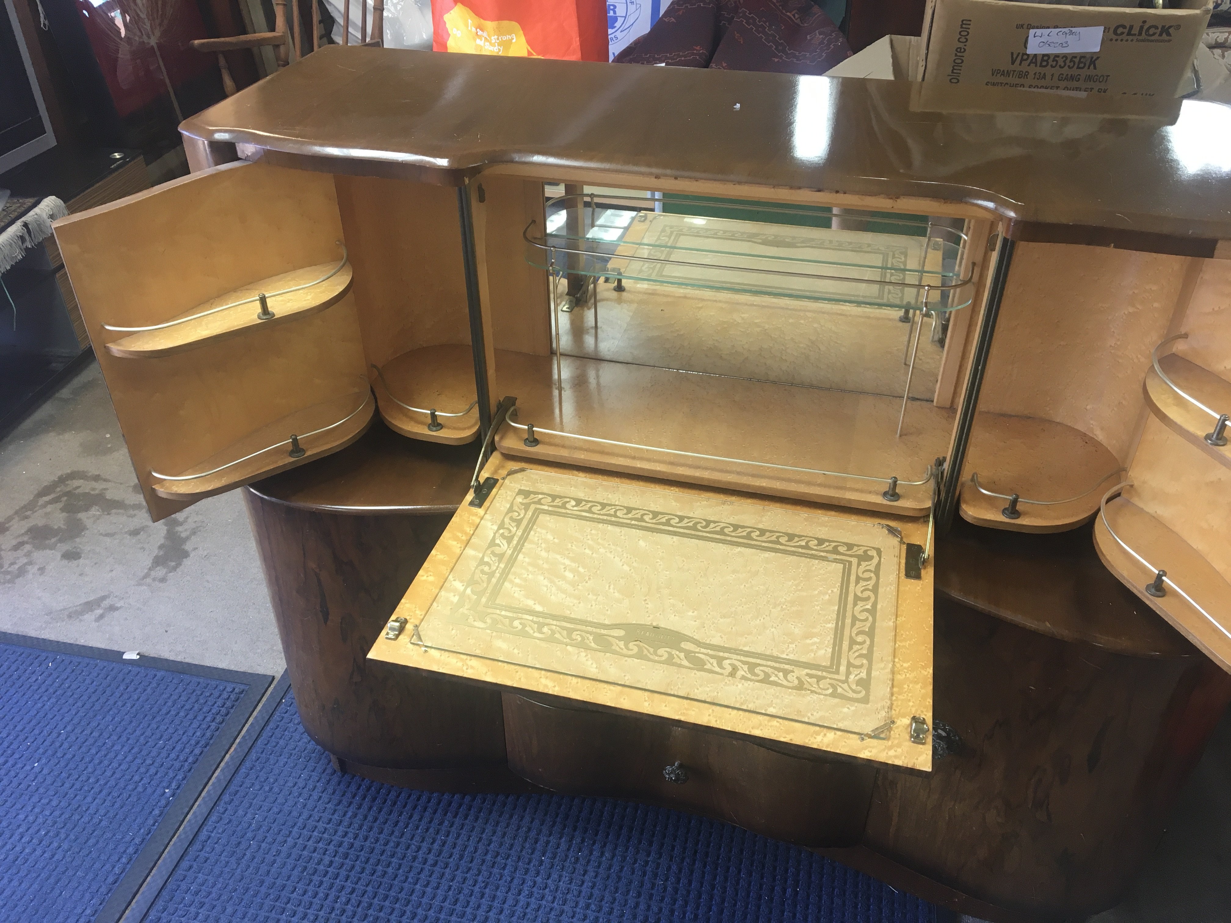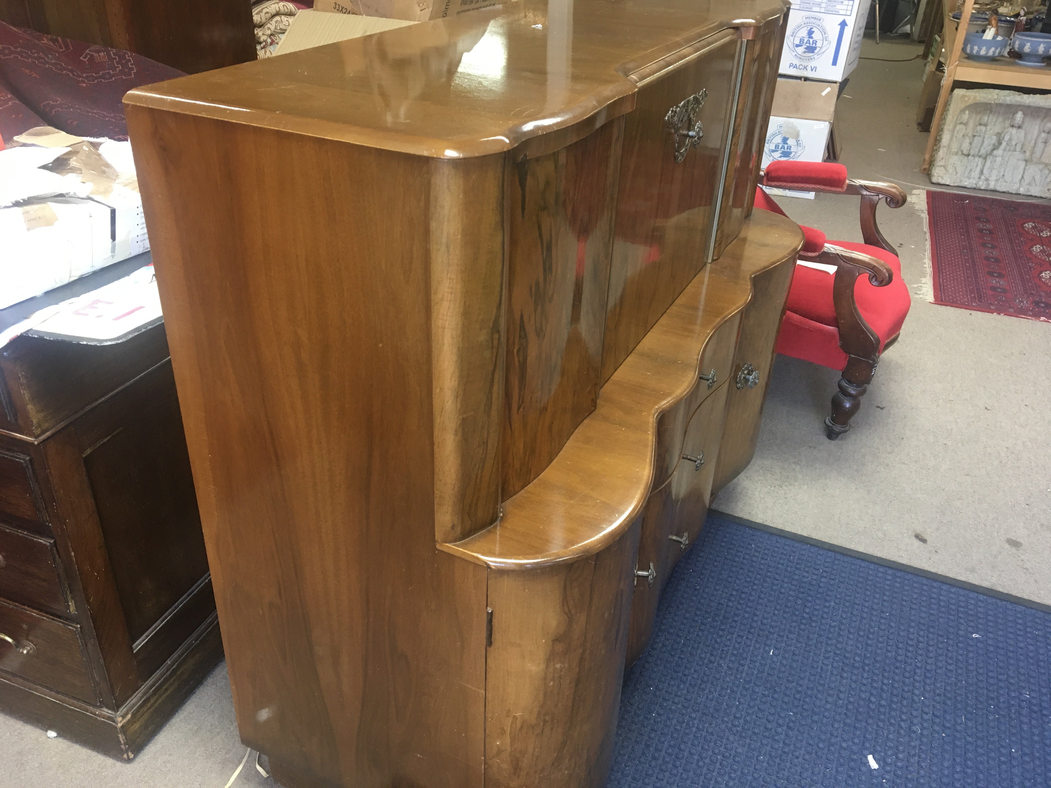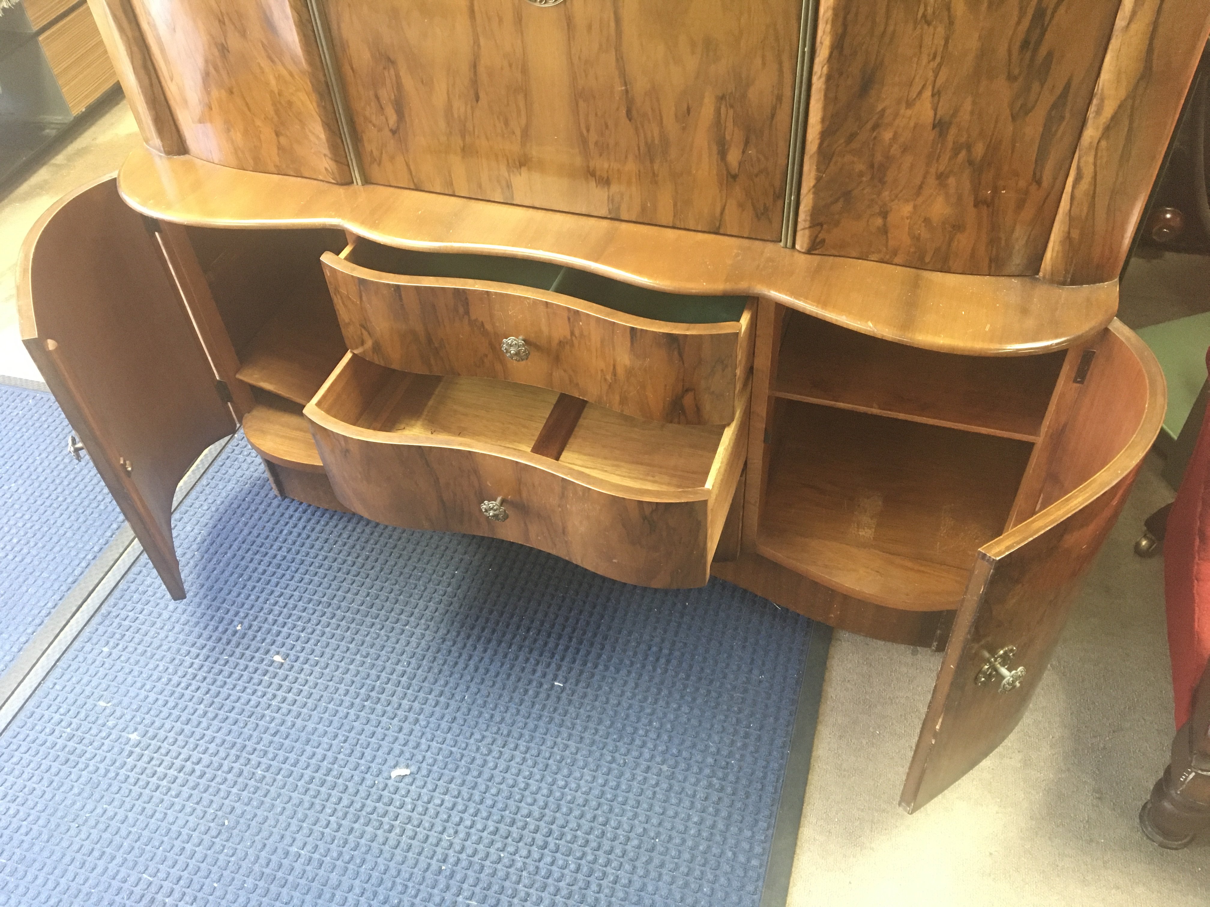 A walnut cocktail cabinet. 130cm wide 50cm deep and 108cm tall.