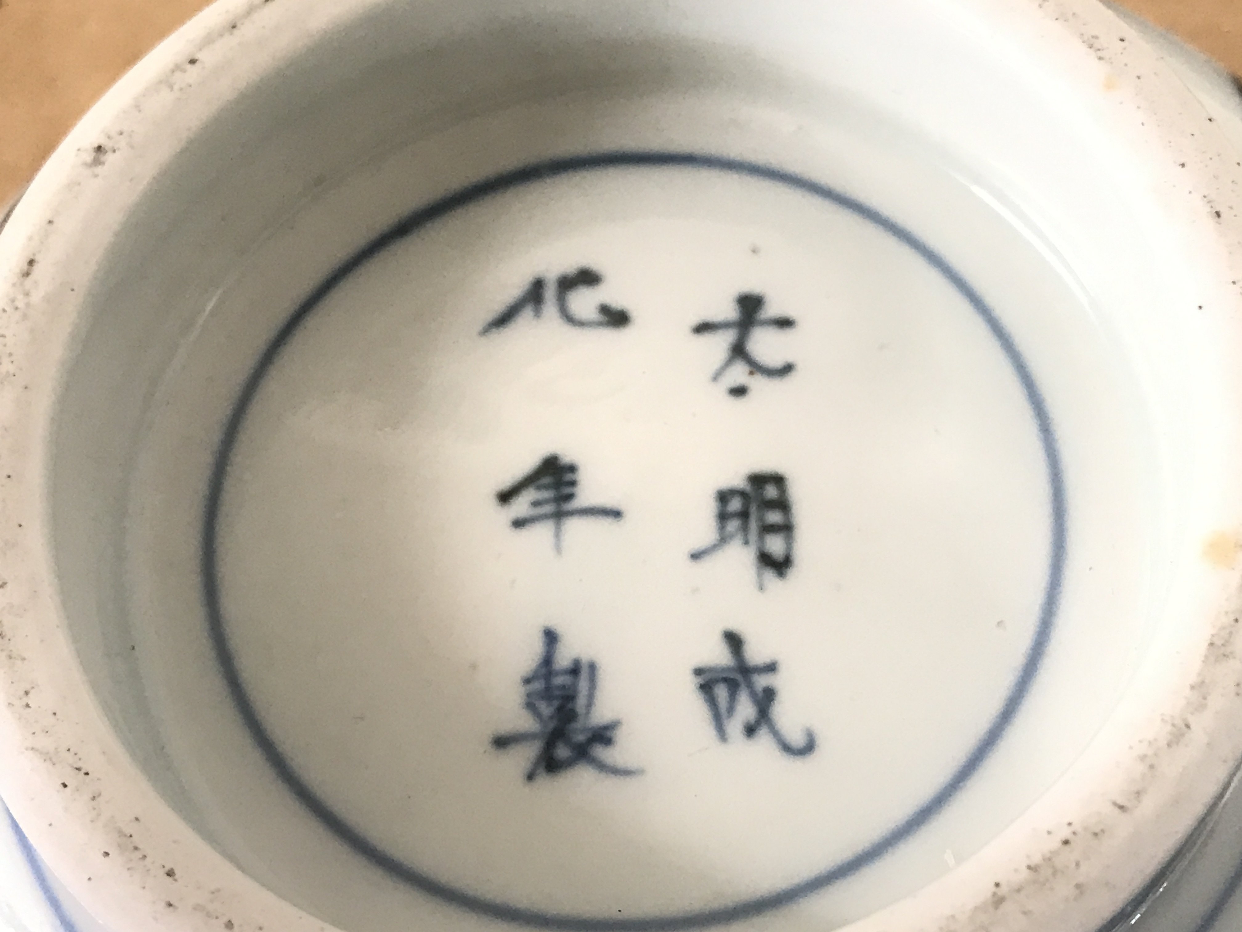 A Japanese Imari ware bowl with stand , 6 character mark at base. 8.5cm tall 18cm wide . This lot cannot be posted- NO RESERVE