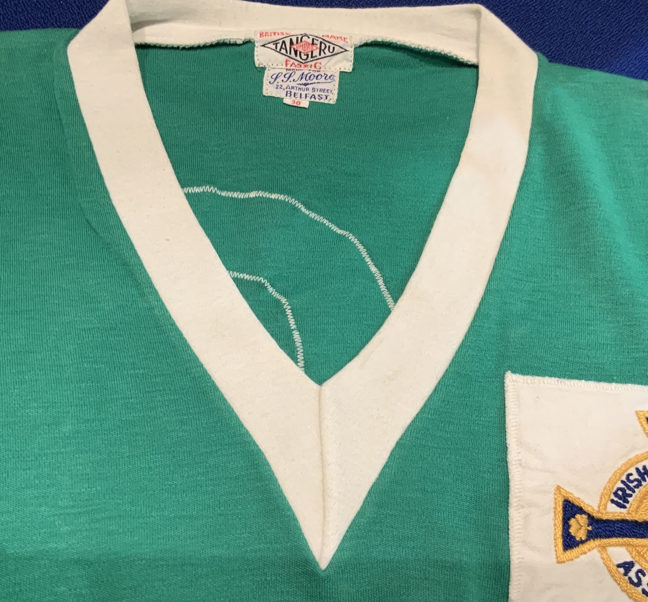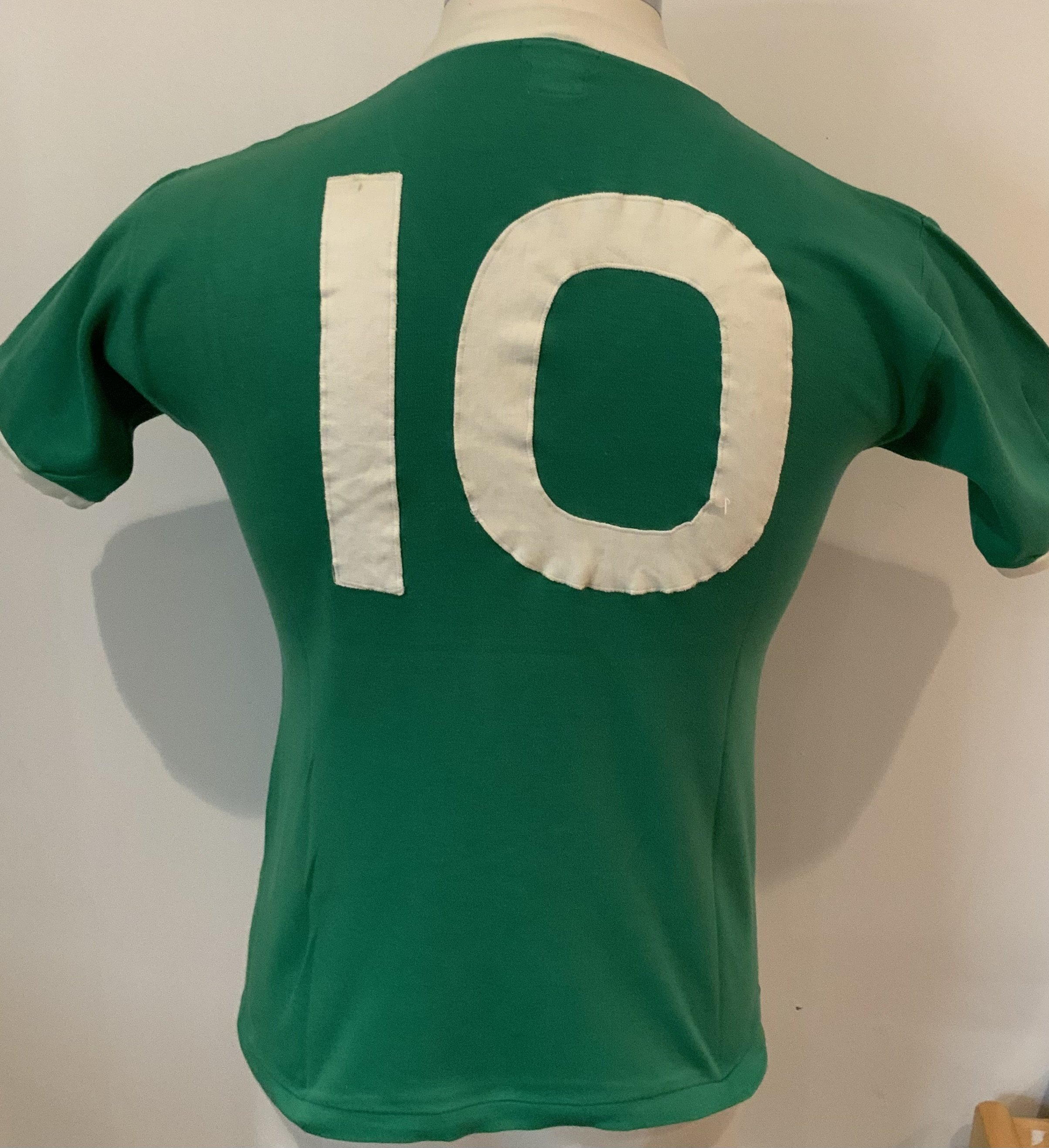 Northern Ireland Schools Match Worn Football Shirt: Green number 10 Umbro shirt was worn by K Wilson of Larne after the Victory Shield match at Vicarage Road on 5 April 1957 which England won 3-0. Excellent condition shirt swapped with Ron Boyce of West Ham.